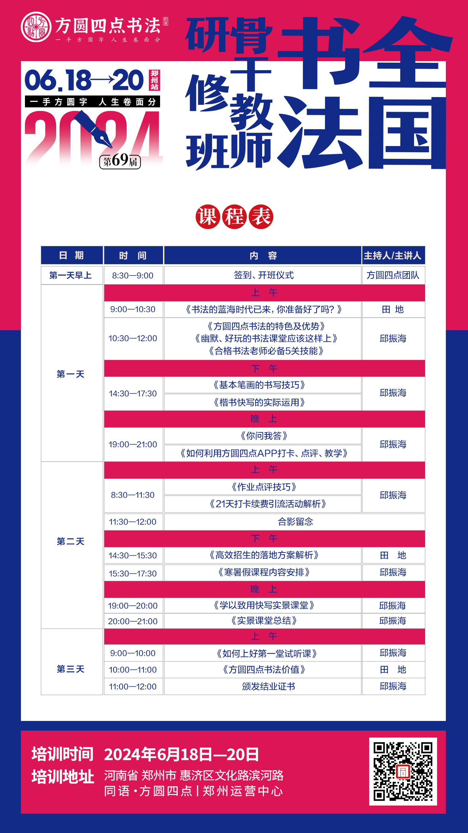 第69届全国书法骨干教师研修班(2024.6.18-6.20郑州站)
