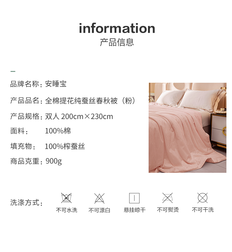 10楼 安睡宝 全棉提花纯蚕丝双人春秋被 吊牌价3299元 活动价799元