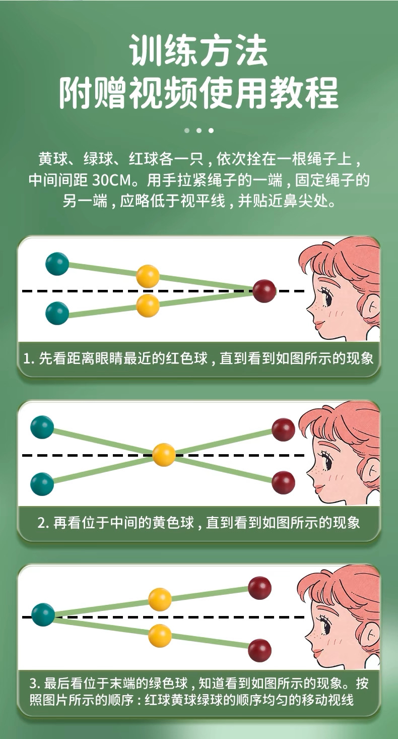 保视佳聚散球视力训练三色复视斜视近视训练器双眼融合视功能训练