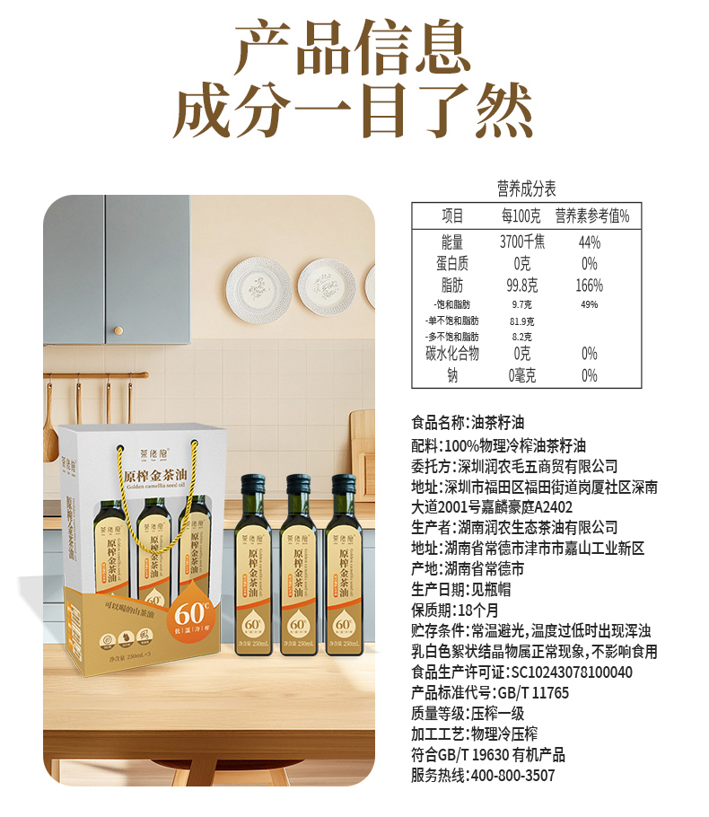灵犀茶油 600mL礼盒装 真冷榨/纯茶油