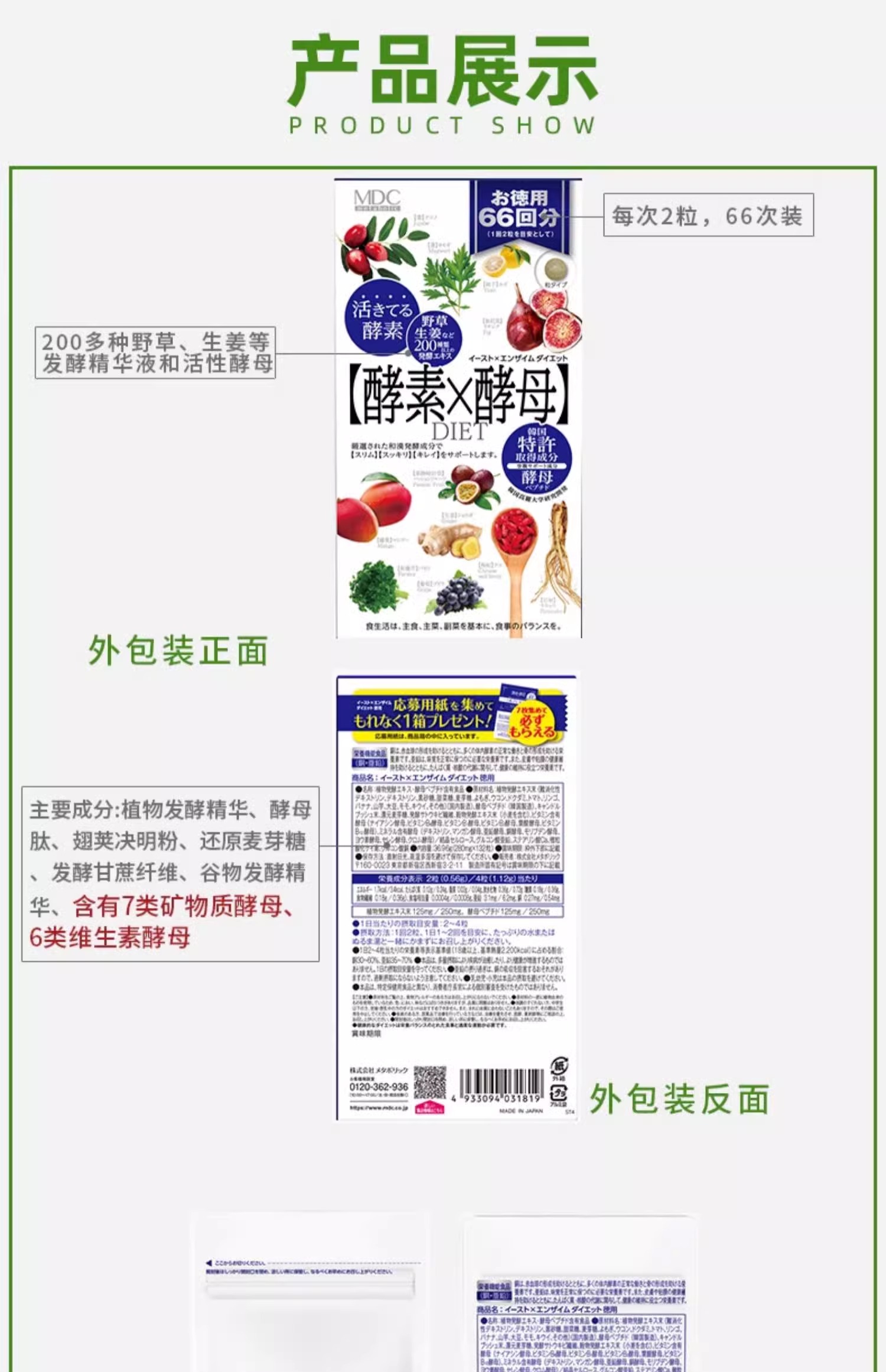 【品牌方】MDC酵素酵母66回分132粒 专利酵母肽非夜间酵素