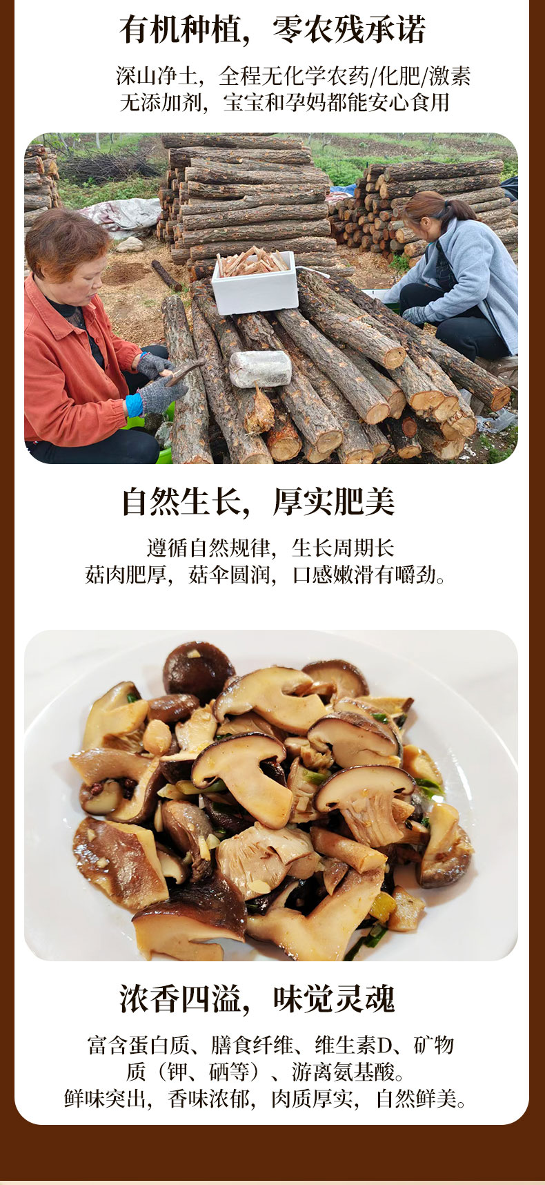 【厂商直发】有机鲜香菇段木香菇1斤/2斤香味浓郁肉质厚实自然鲜美包邮