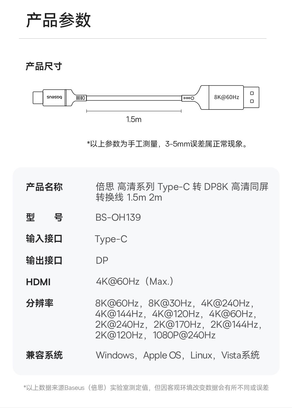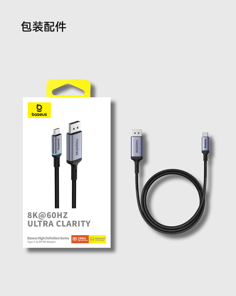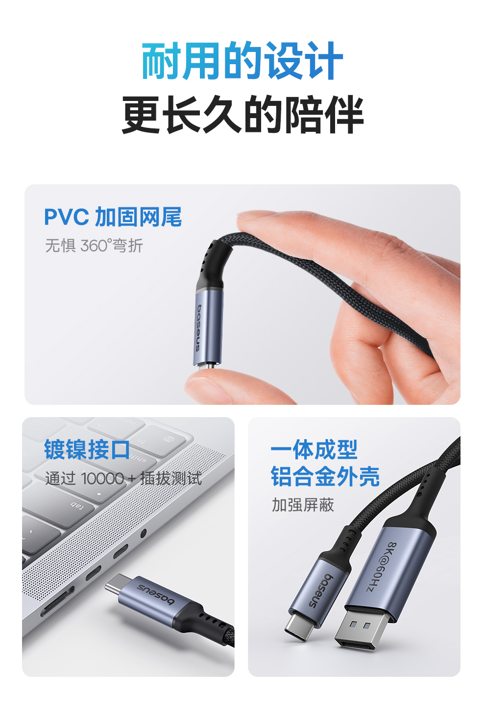 倍思 高清系列 Type-C 转 DP8K 高清同屏转换线