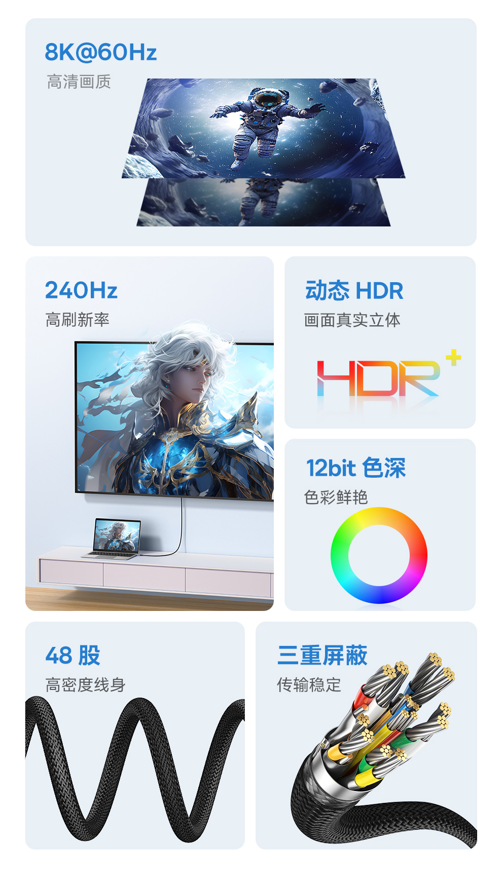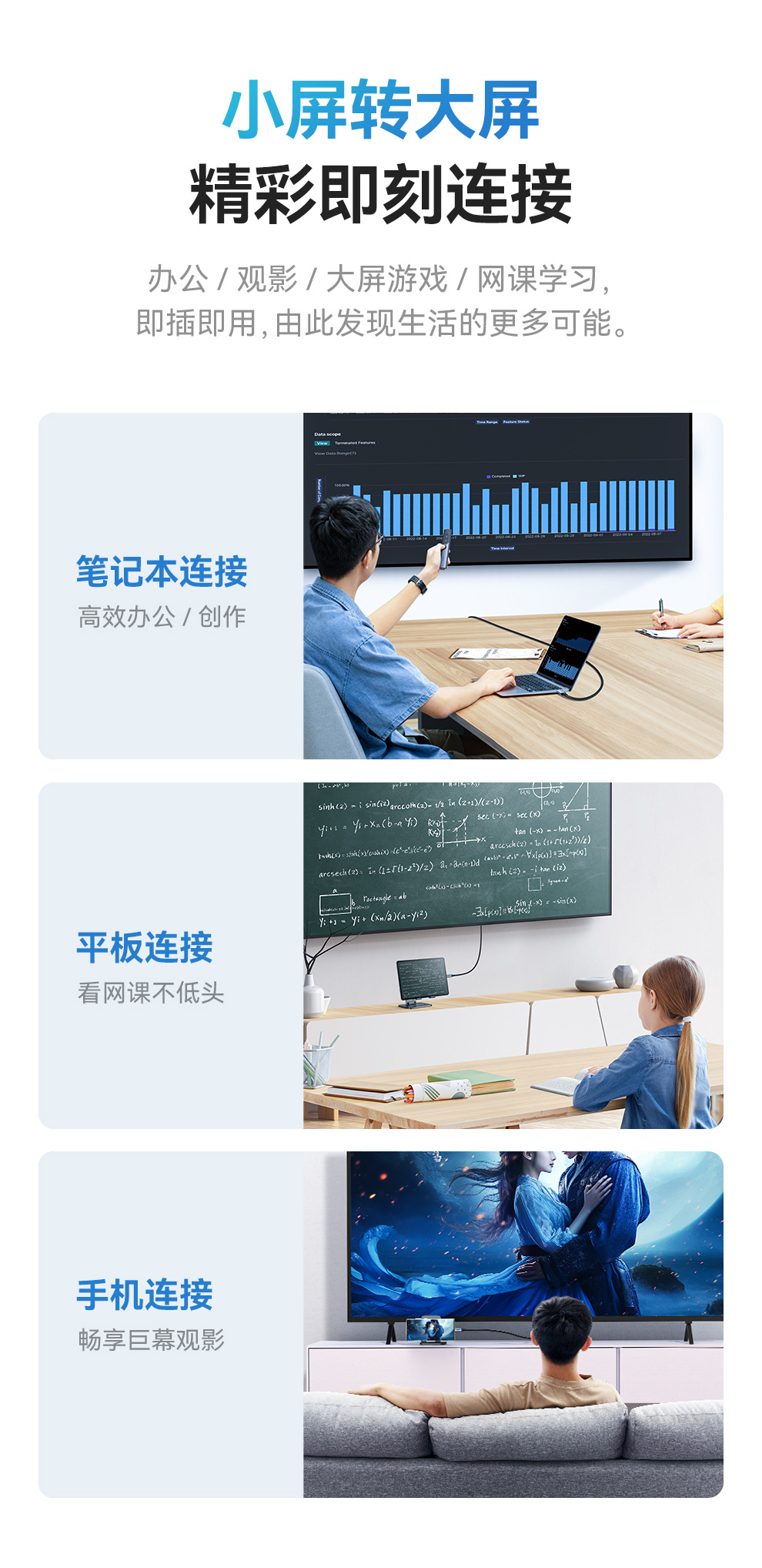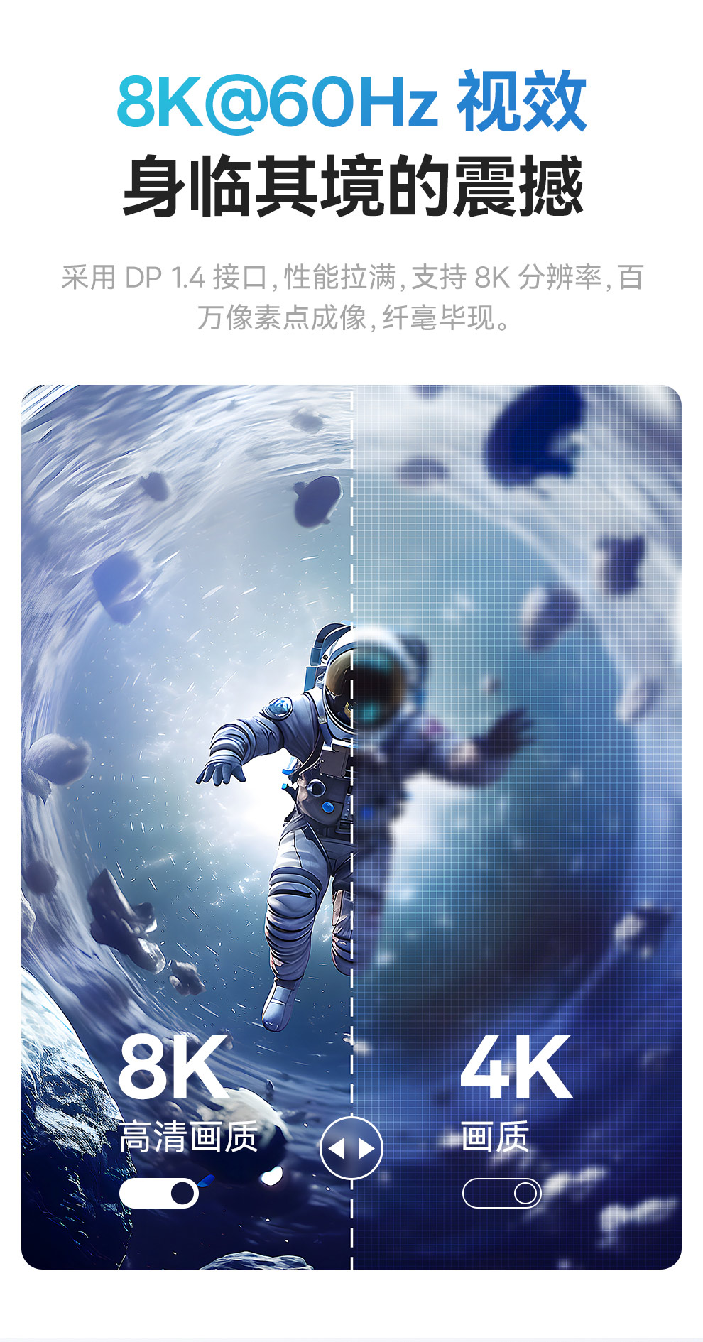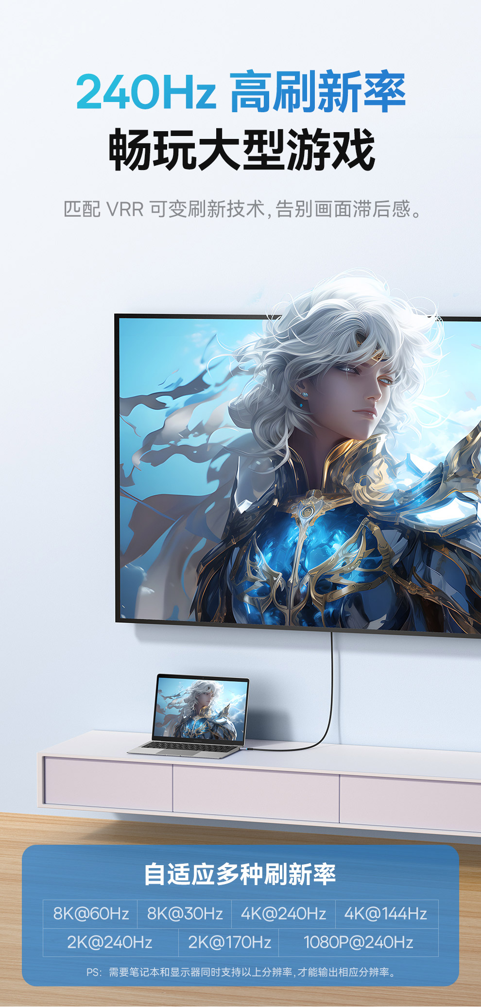 倍思 高清系列 Type-C 转 DP8K 高清同屏转换线