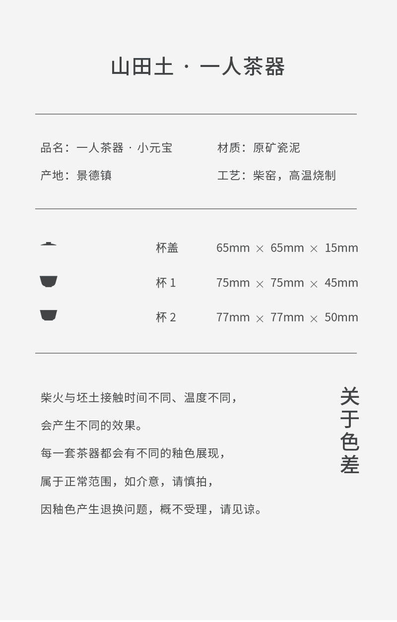 山田土 一人茶器·小元宝 柴烧盖碗套组