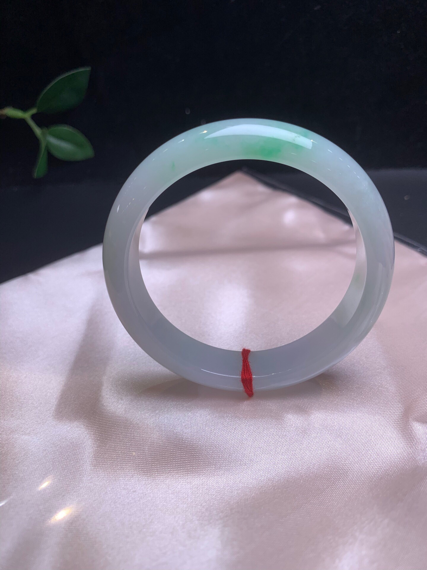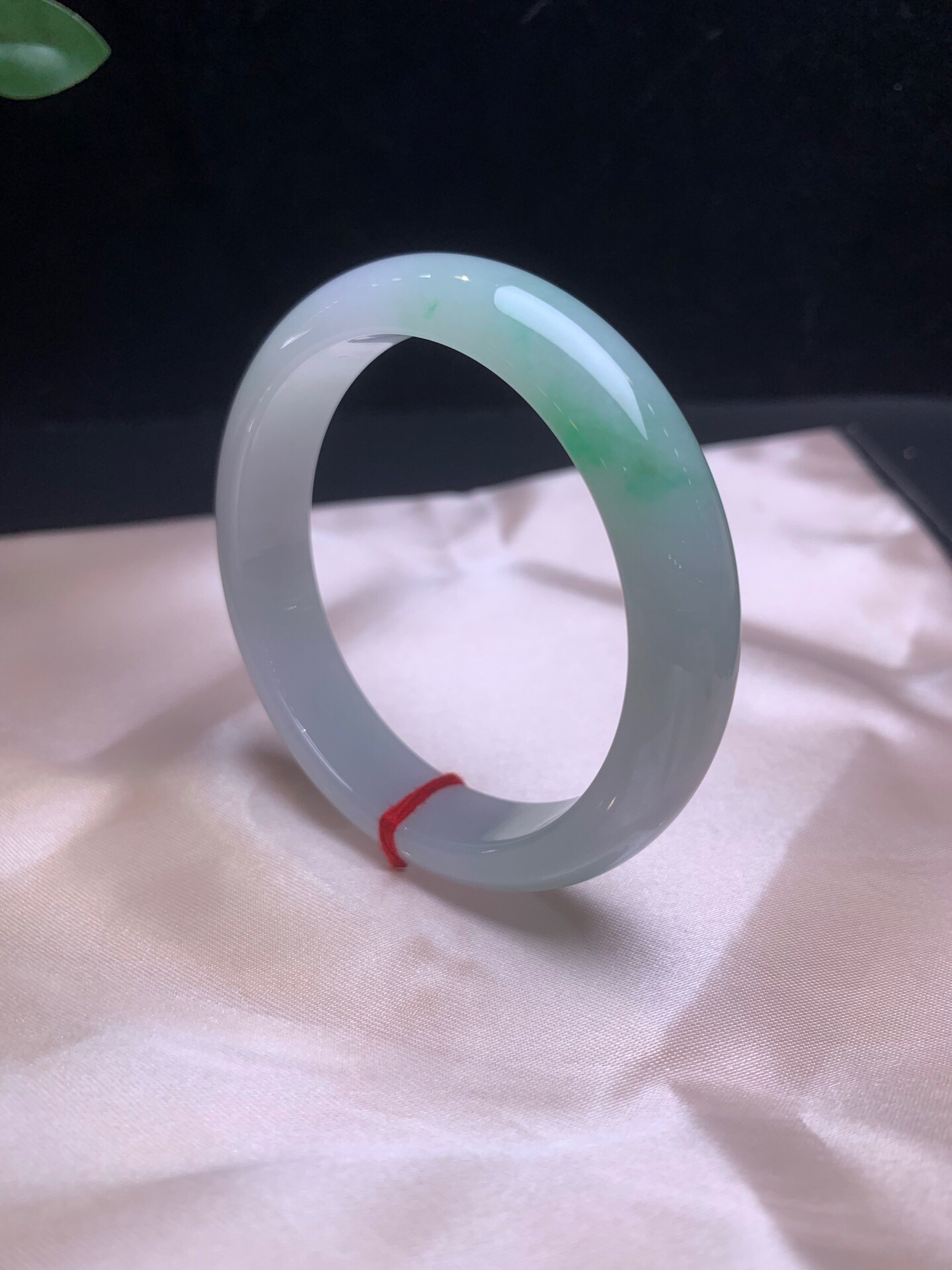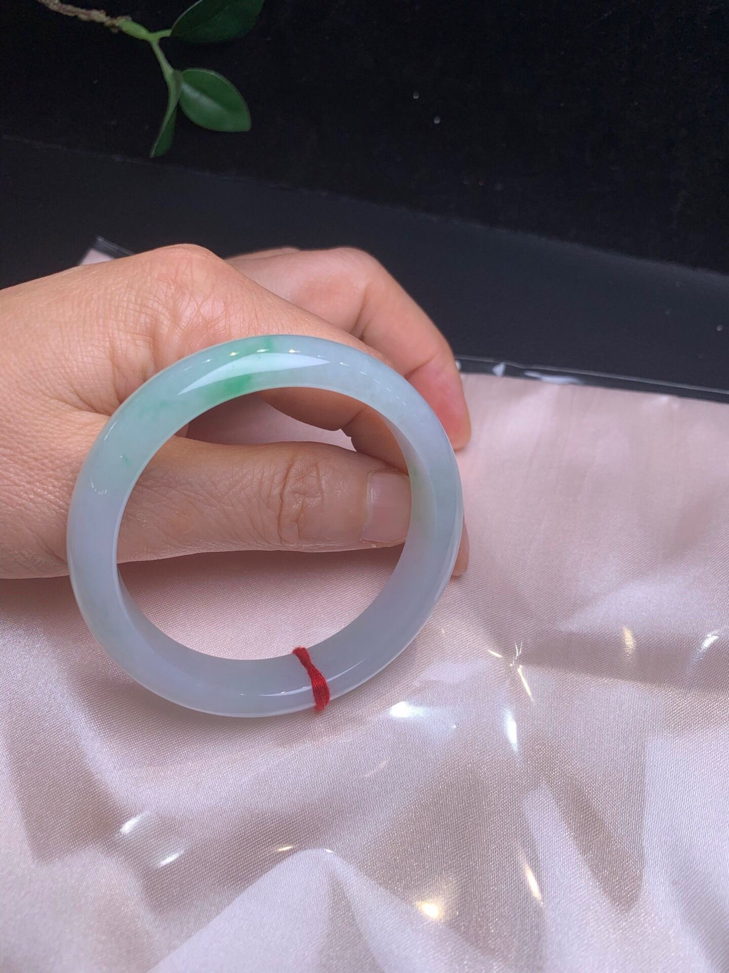 620017,52.5飘绿手镯,12.4-7.5mm,小清新,底子特别细腻,飘清新绿花,秀气完美。超值价💰25000 #优石客珠宝#香玉荟萃