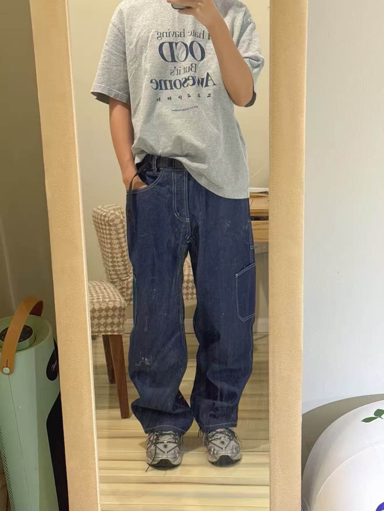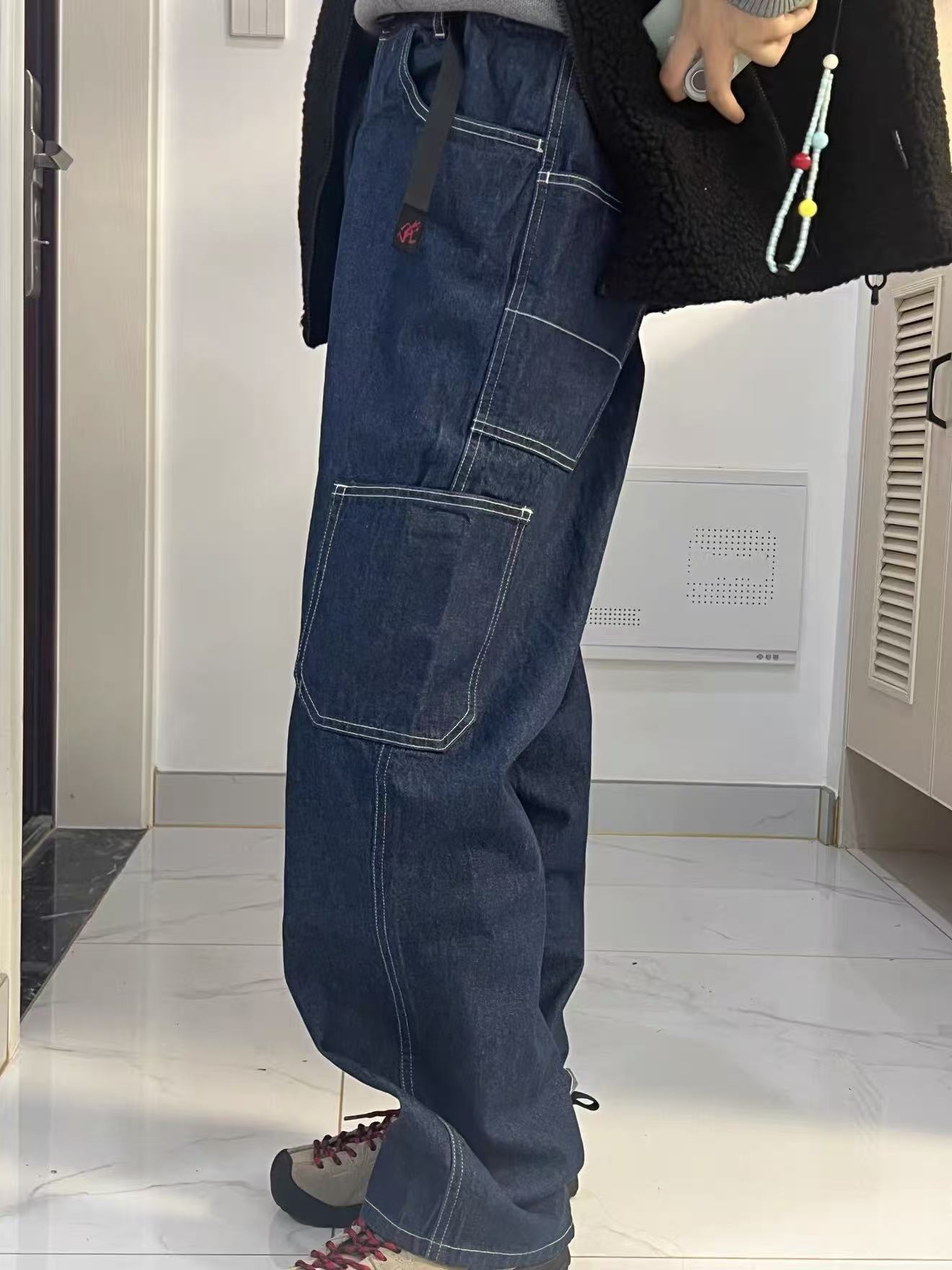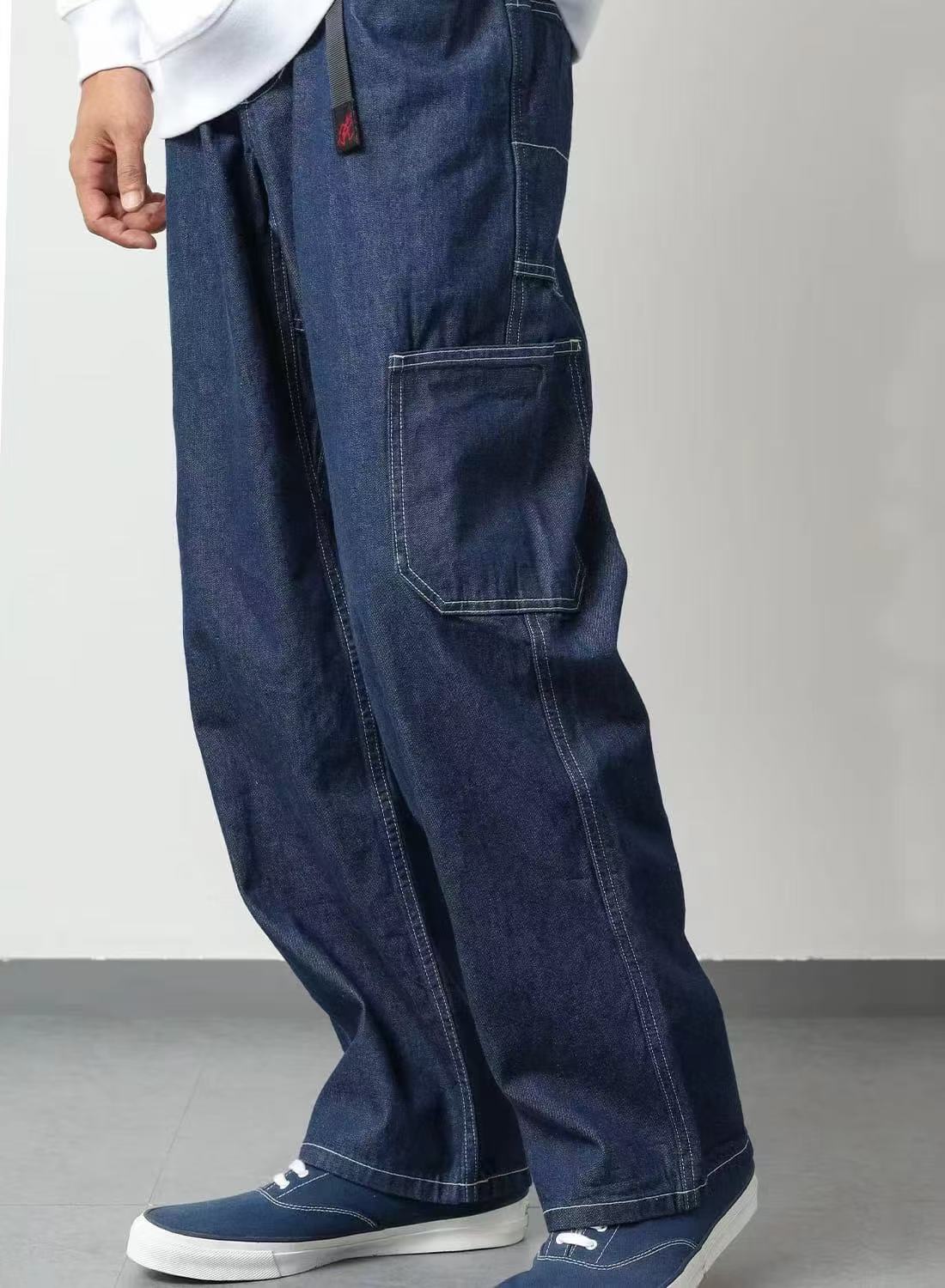 【lb1】男子休闲侧袋大口袋攀岩牛仔长裤!!
