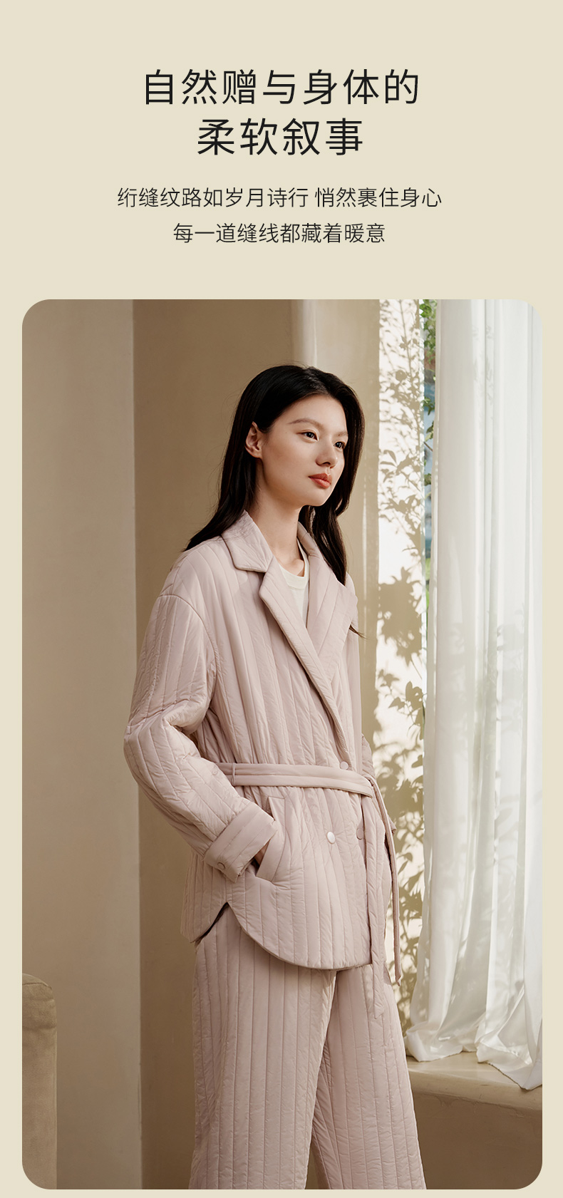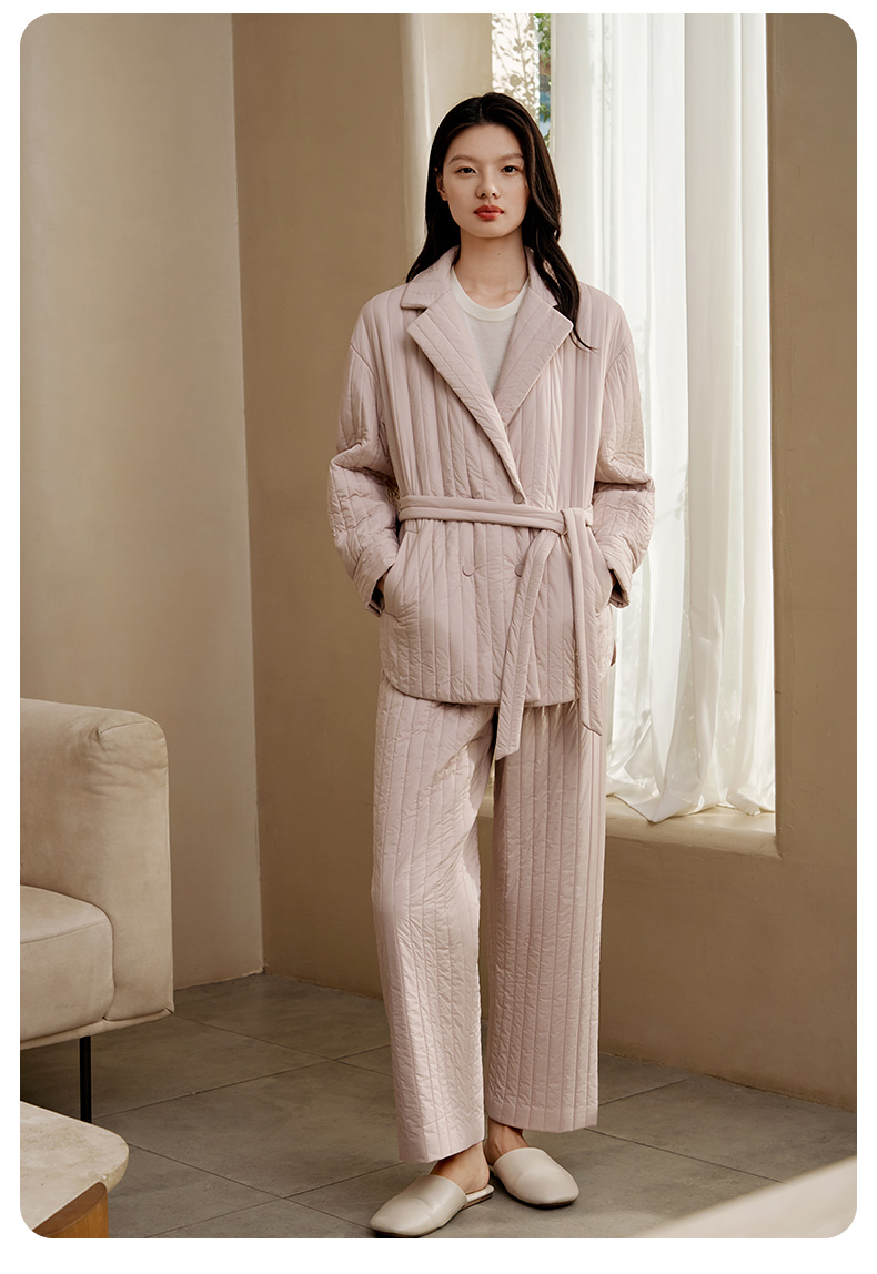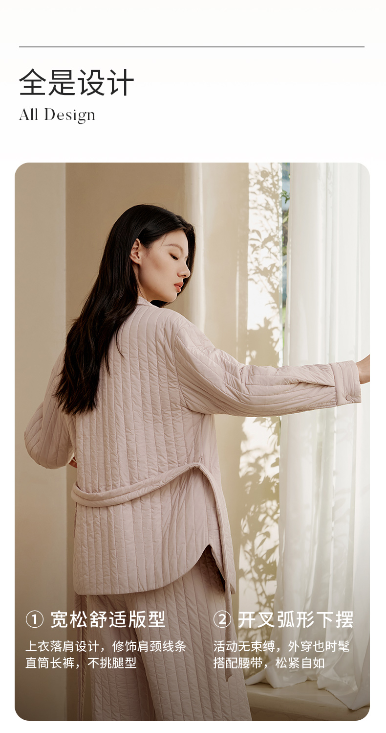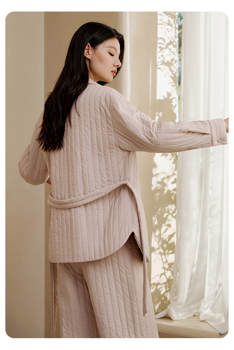 金三塔桑蚕丝简约条纹丝绵衣裤套女宽松舒适秋冬保暖家居服套装 YSFFD202