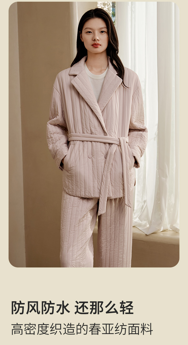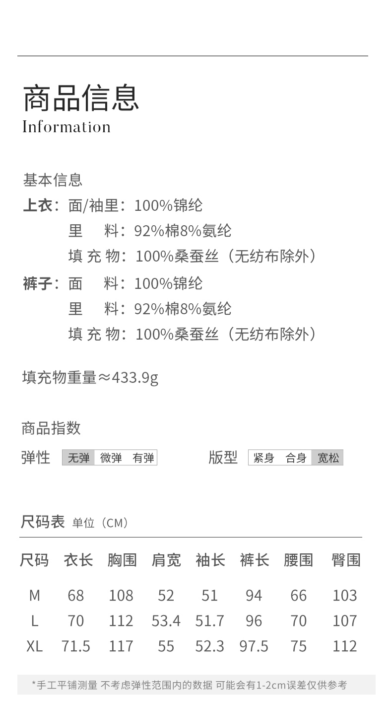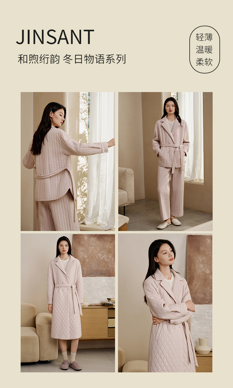 金三塔桑蚕丝简约条纹丝绵衣裤套女宽松舒适秋冬保暖家居服套装 YSFFD202