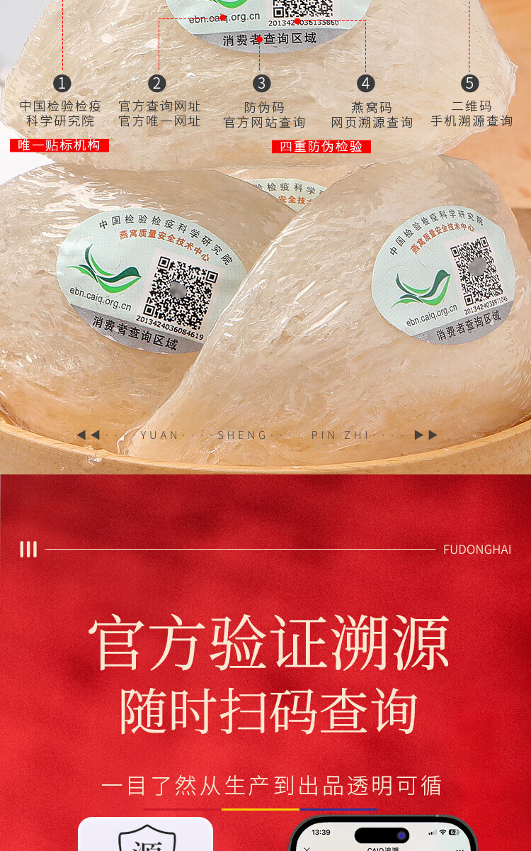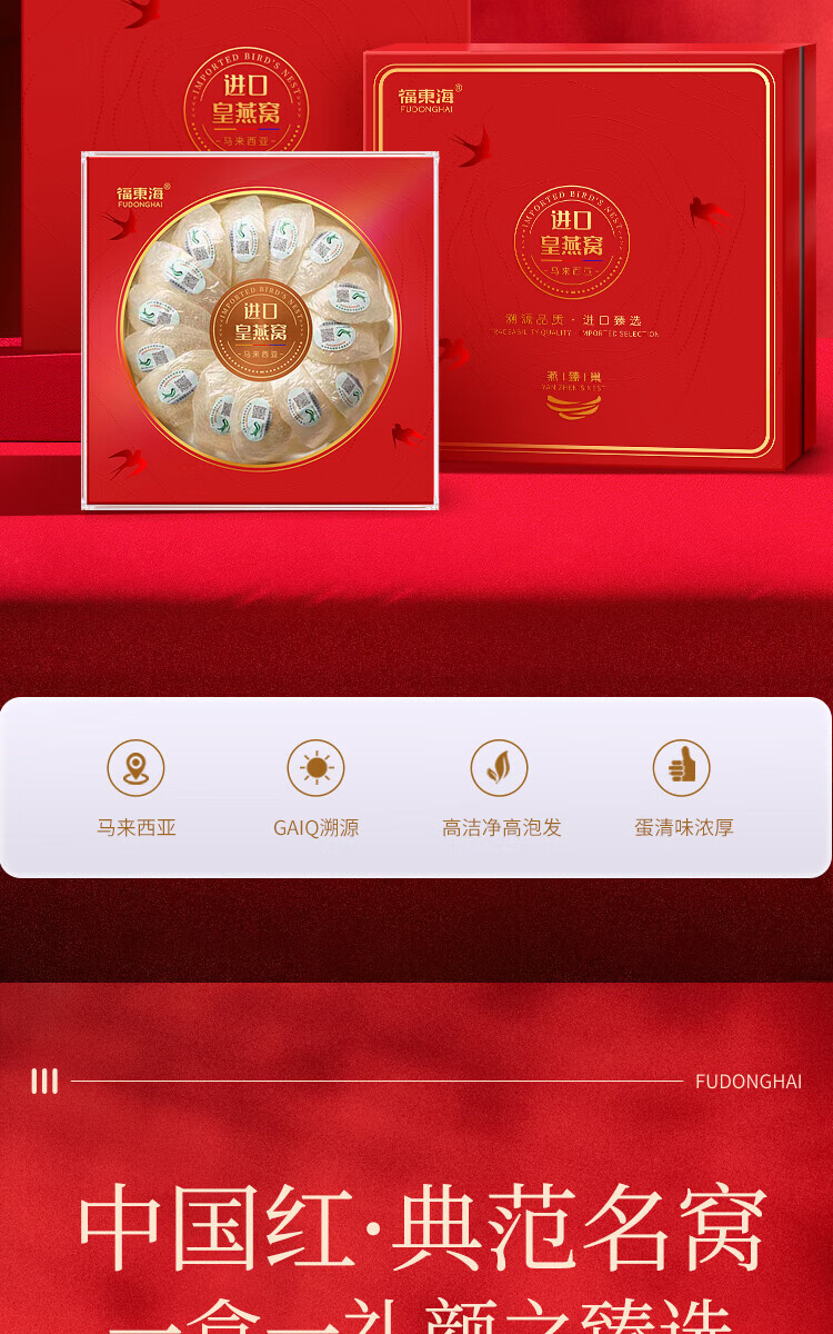 【福东海】燕窝 干燕窝白燕盏 马来西亚进口溯源干盏--MD
