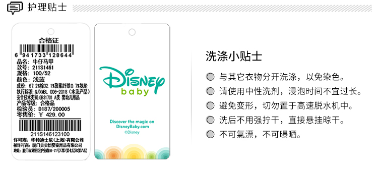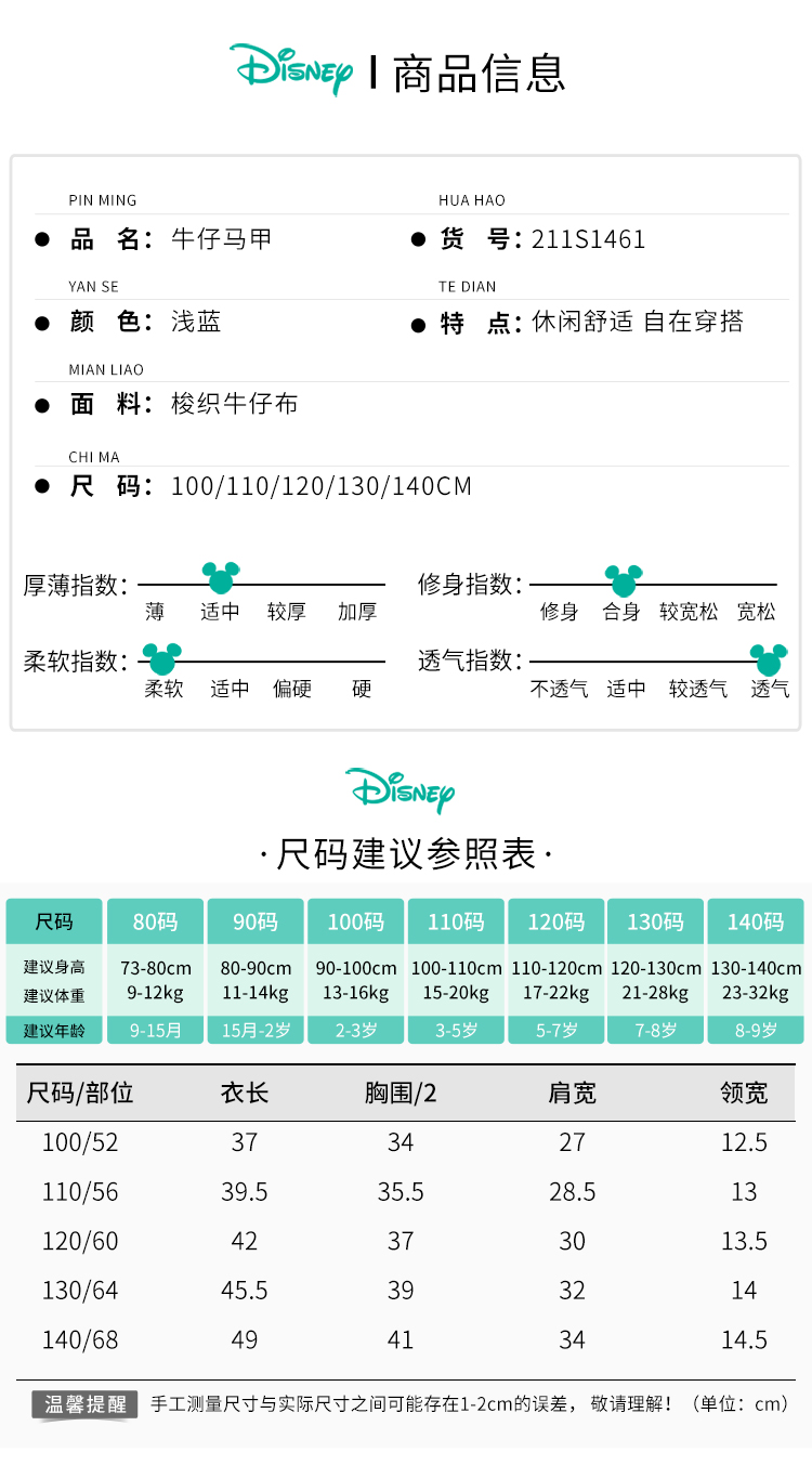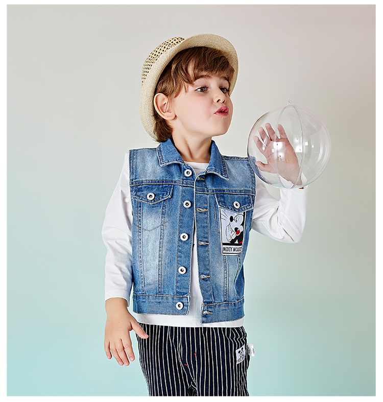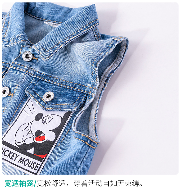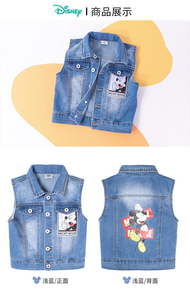 迪士尼男女童春秋时尚休闲牛仔马甲坎肩背心小外套