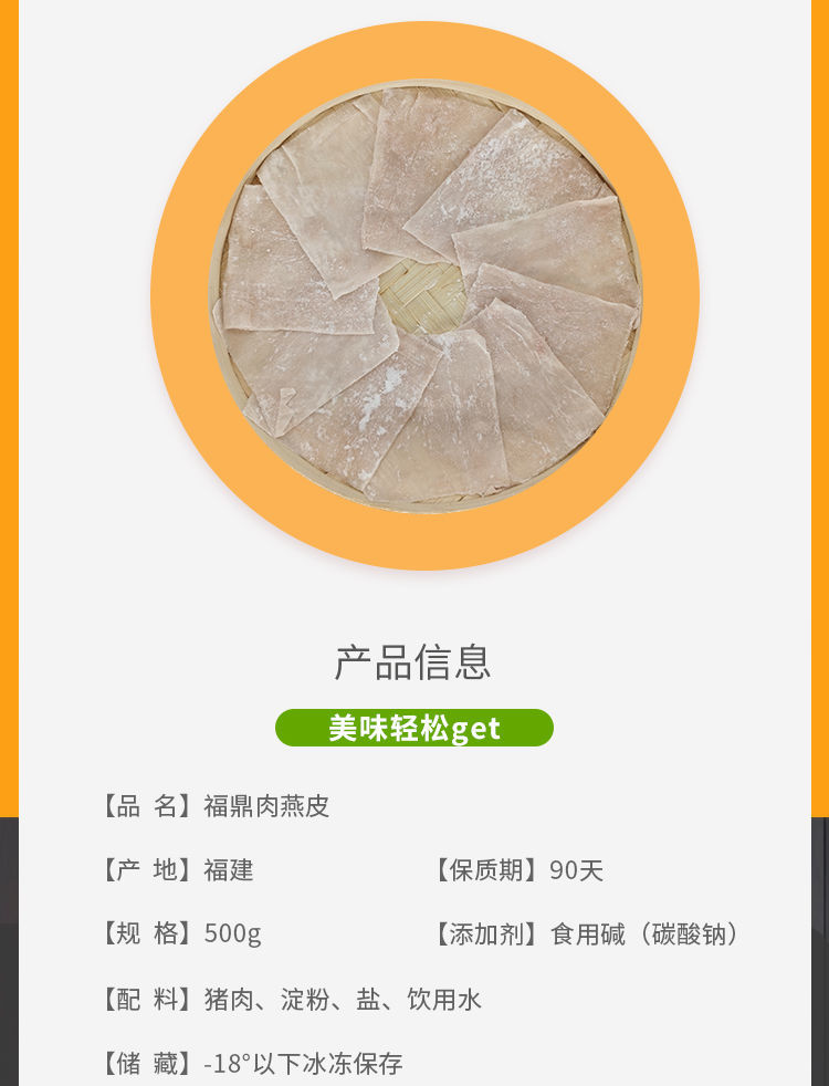 鼎味邱福建福州福鼎湿肉燕皮 手工新鲜 温州云吞馄饨扁食皮500g
