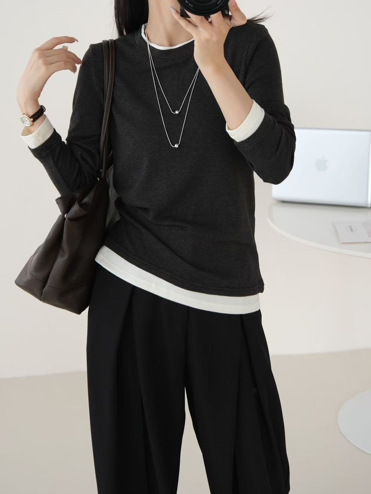 miu里miu气假两件打底衫 | 版型板正配色高级,衣橱基础打底衫