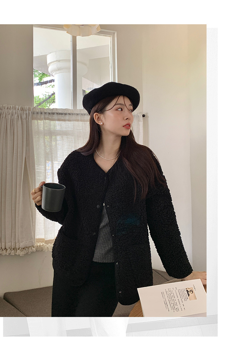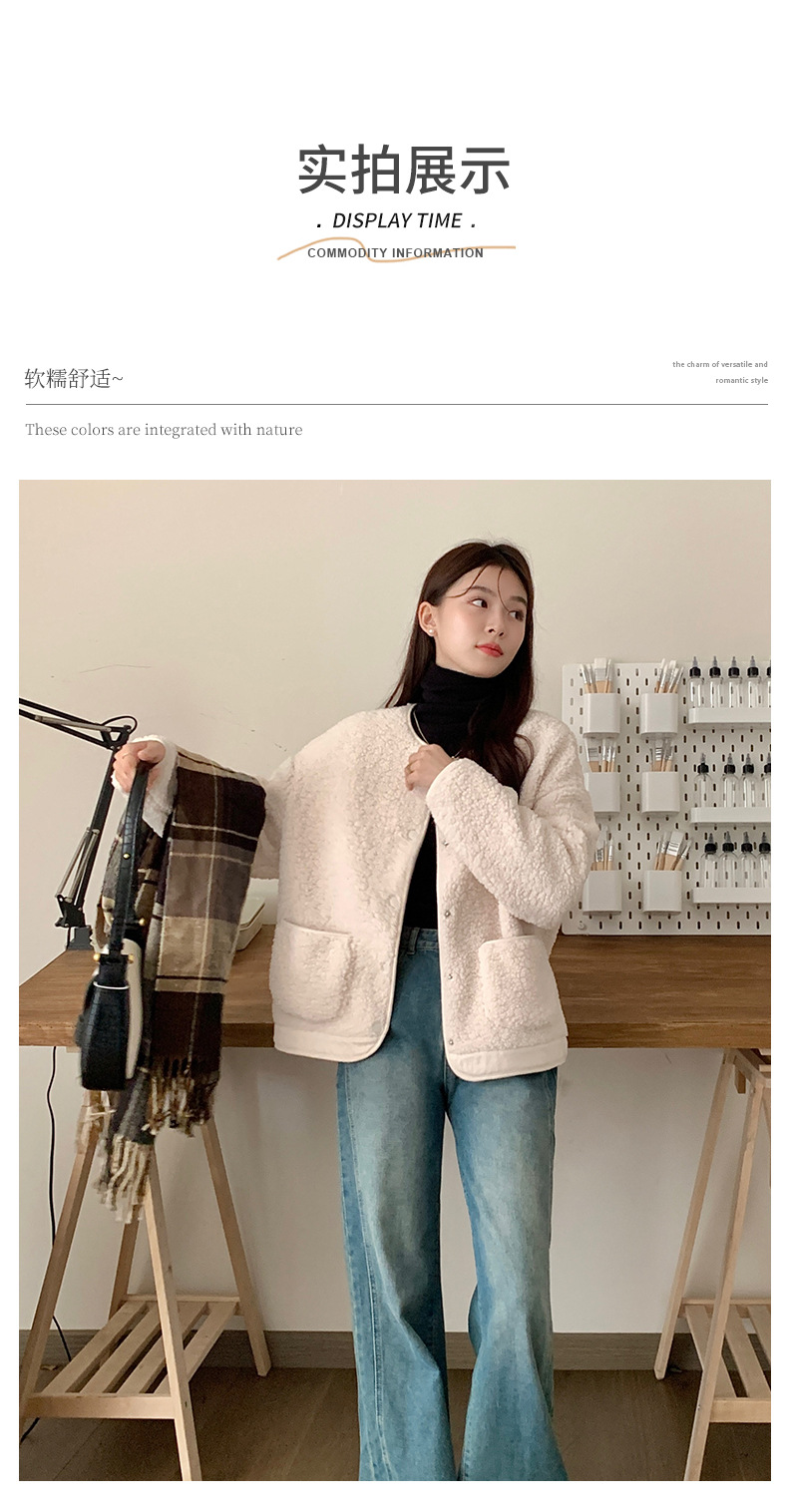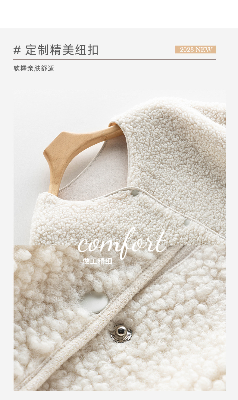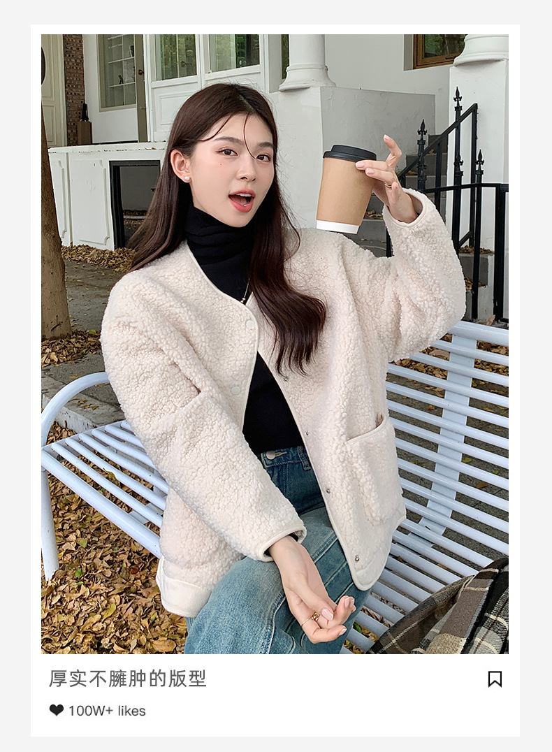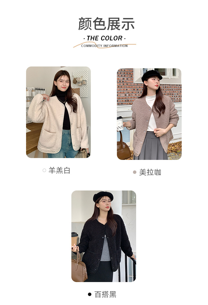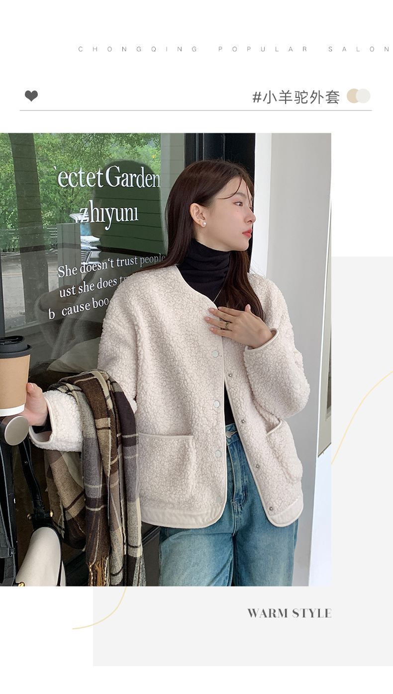 小羊驼小香风外套 显瘦时髦 短款纽扣毛呢开衫 秋冬百搭款