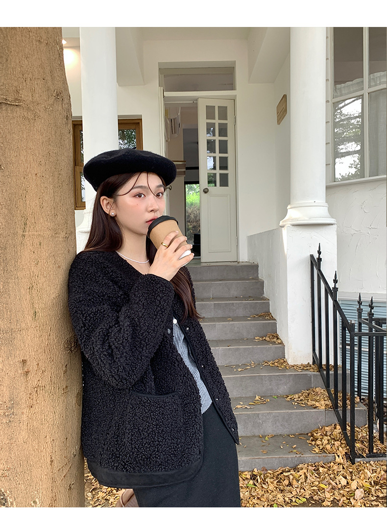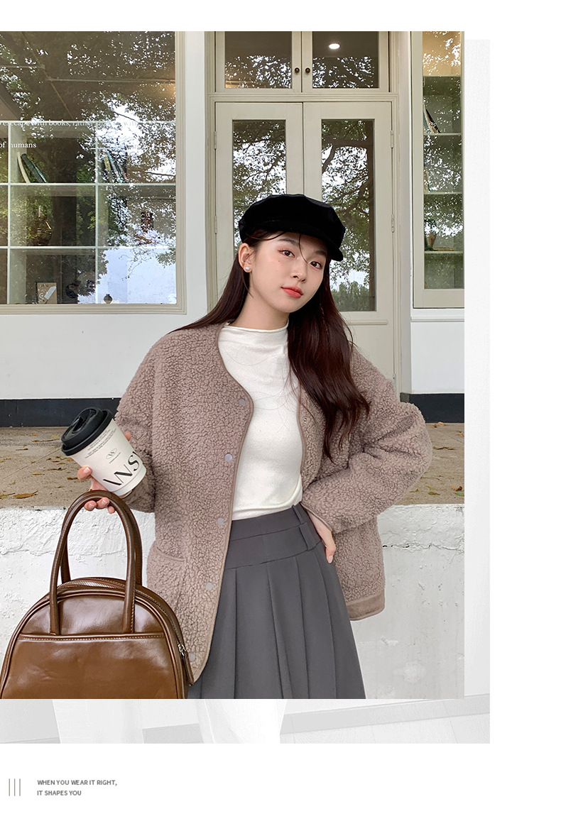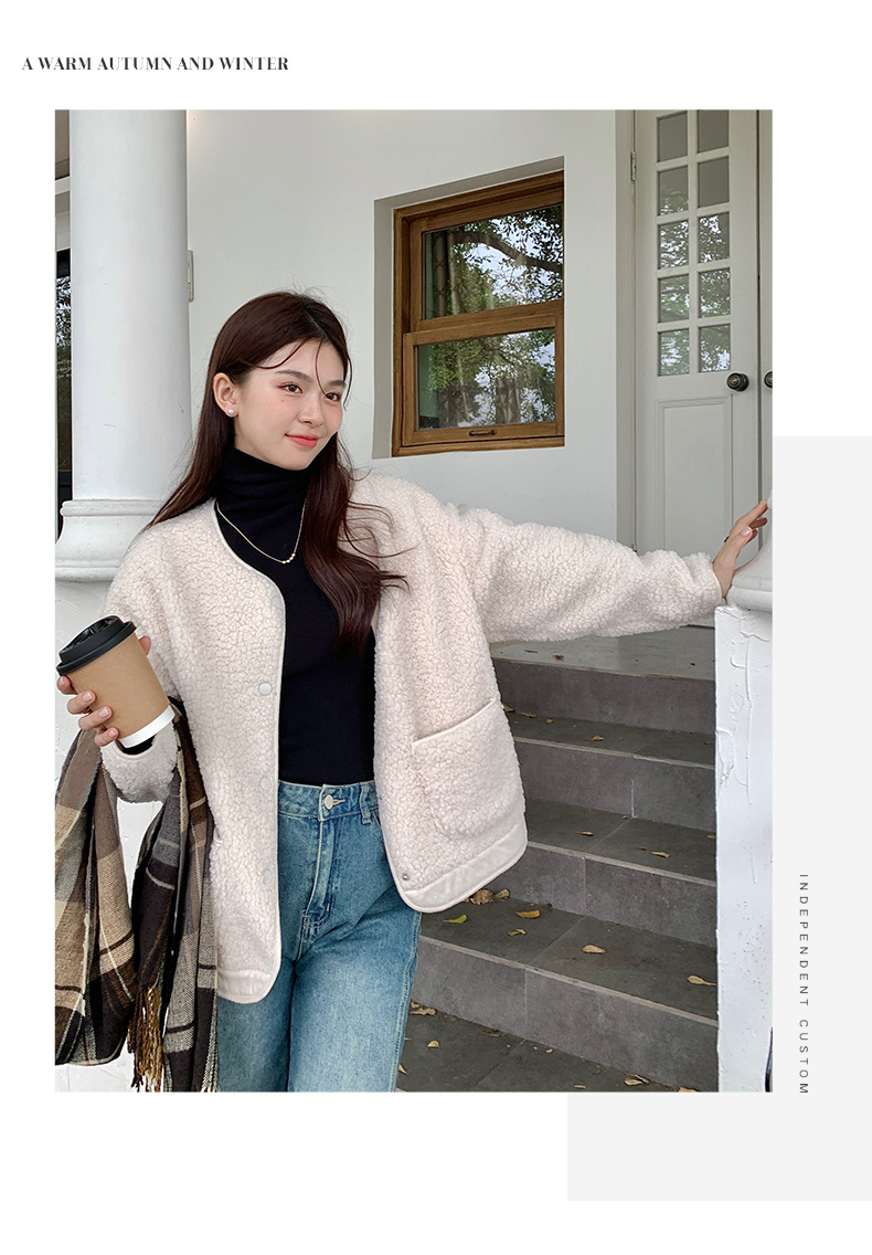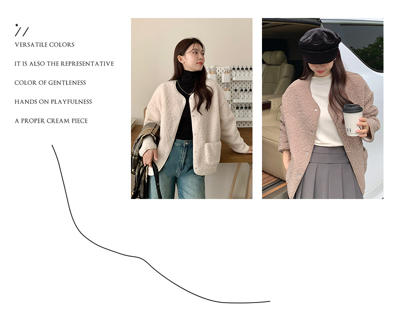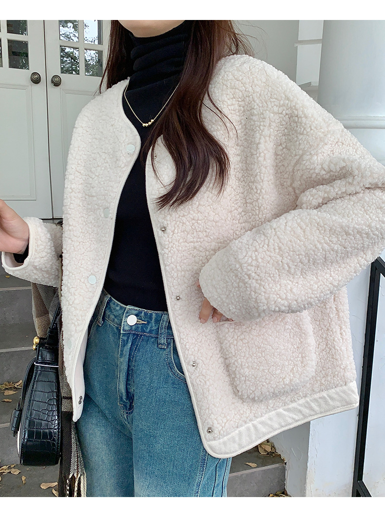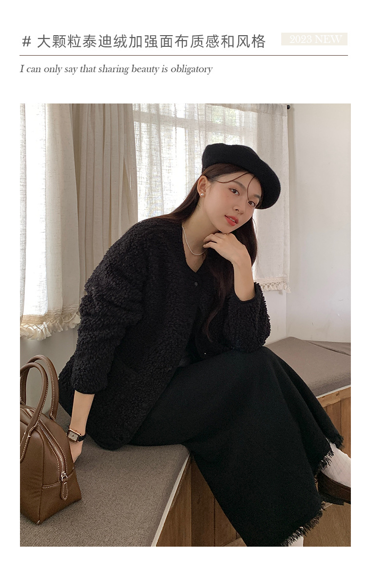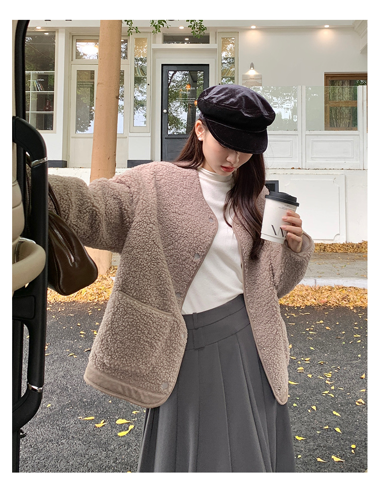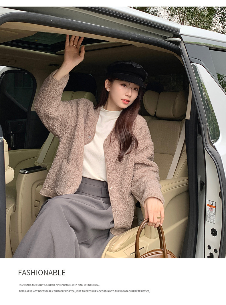 小羊驼小香风外套 显瘦时髦 短款纽扣毛呢开衫 秋冬百搭款