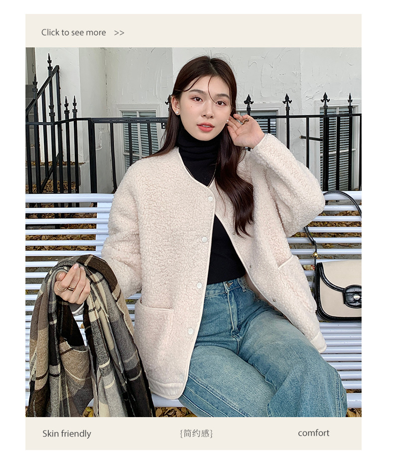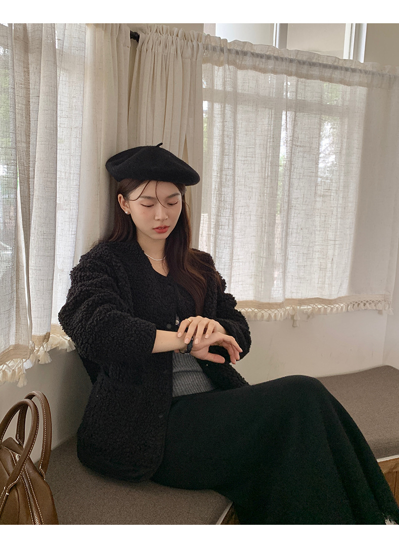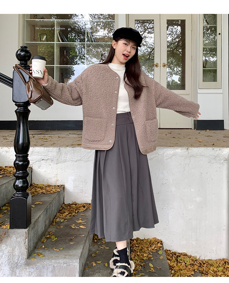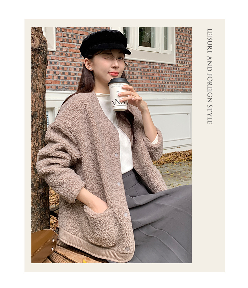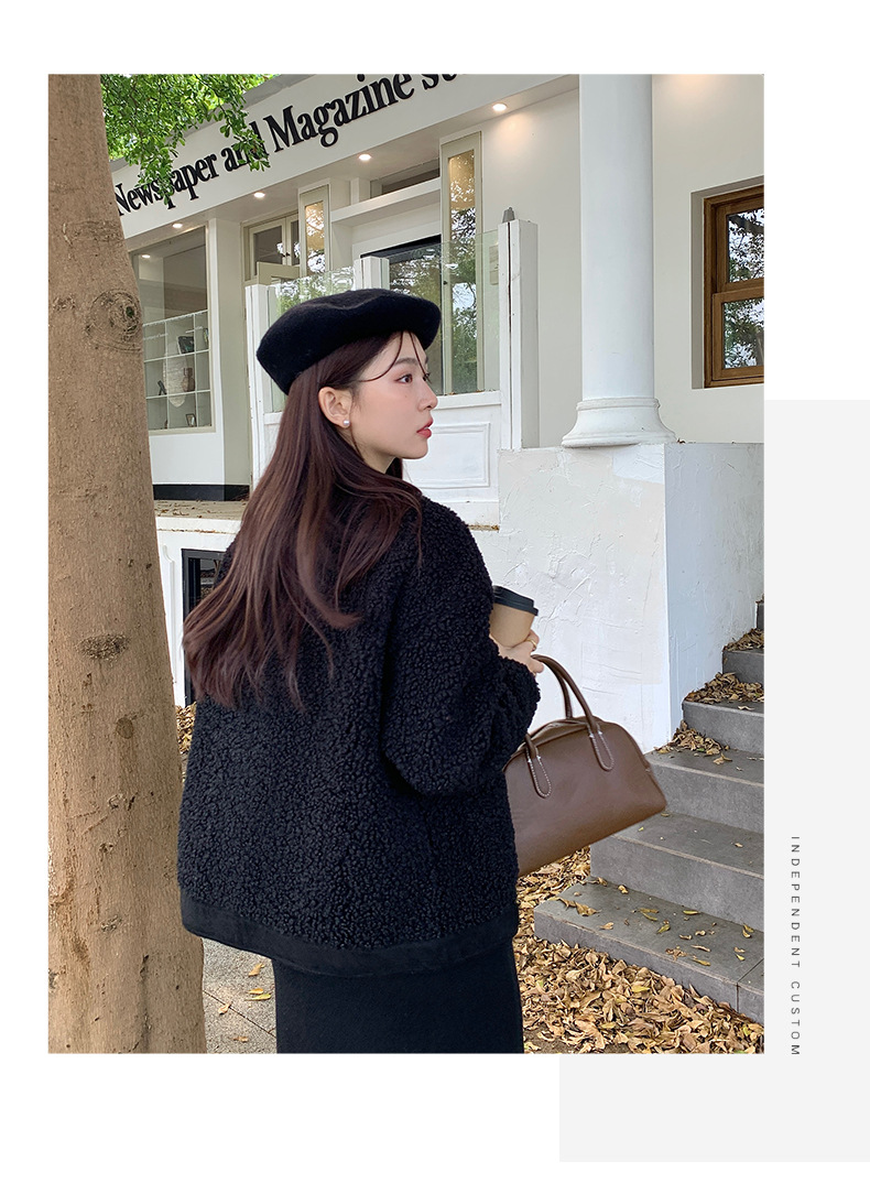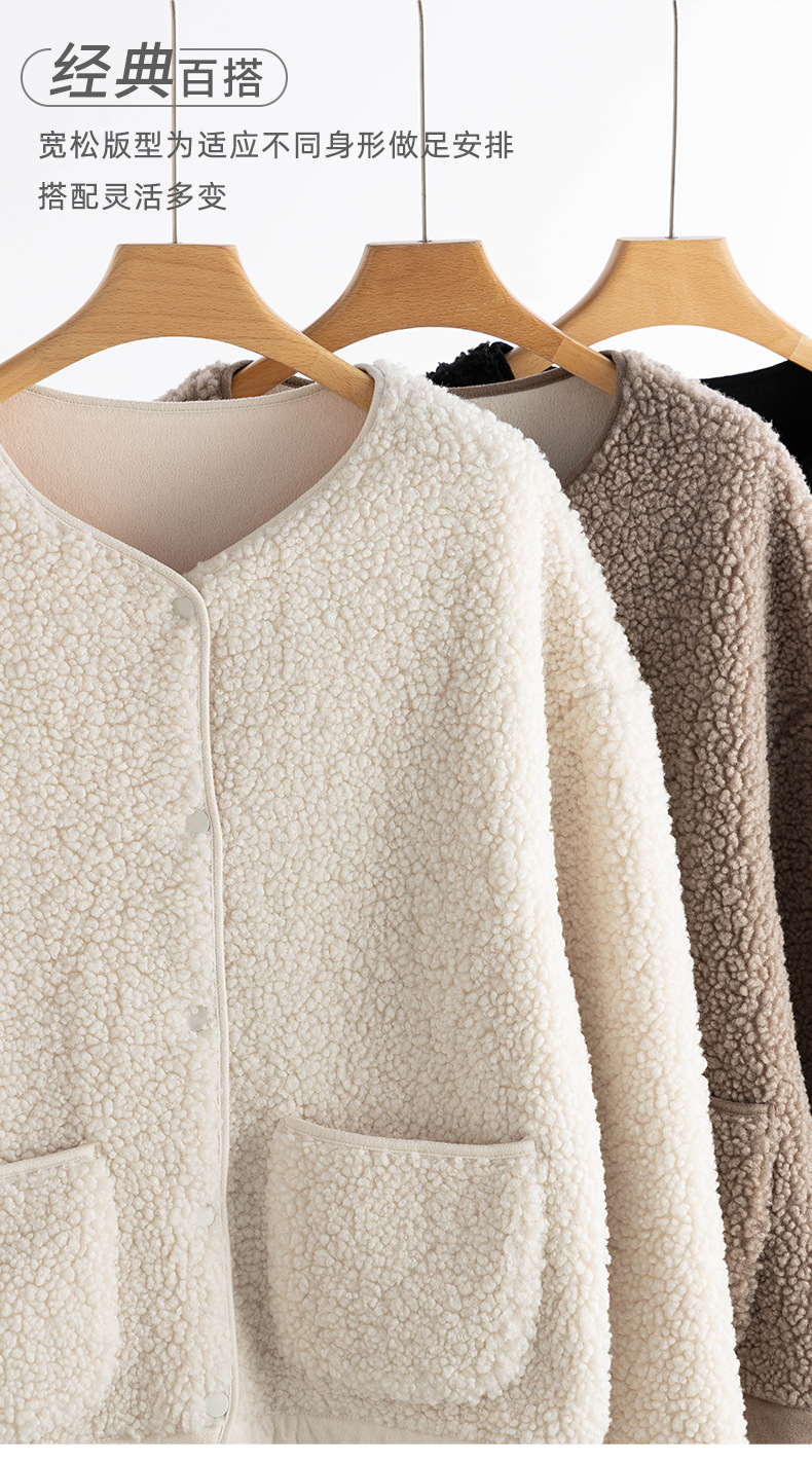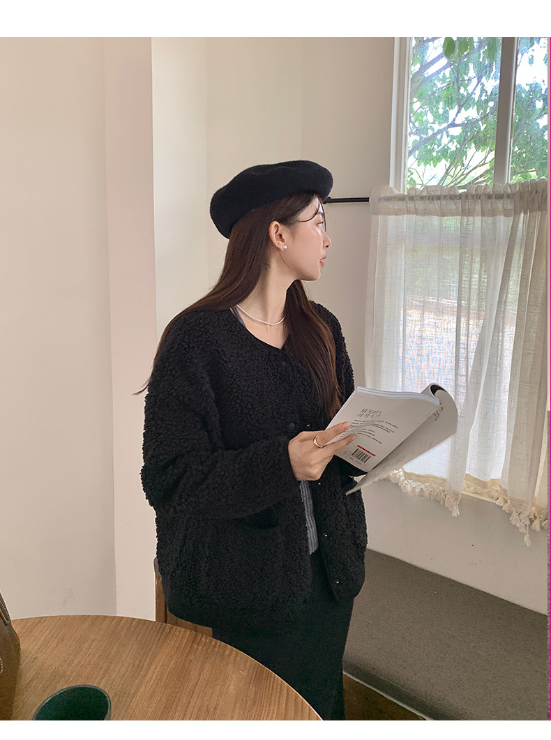 小羊驼小香风外套 显瘦时髦 短款纽扣毛呢开衫 秋冬百搭款