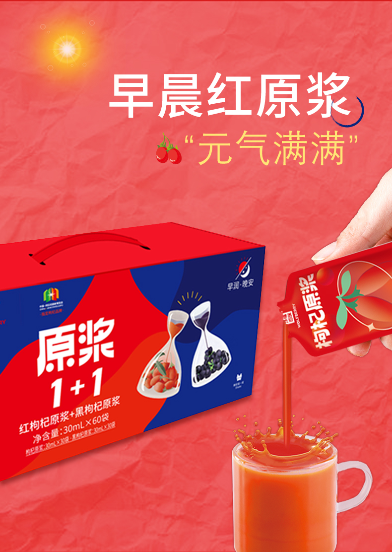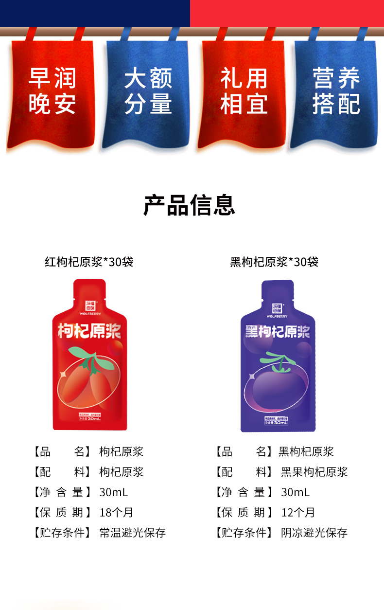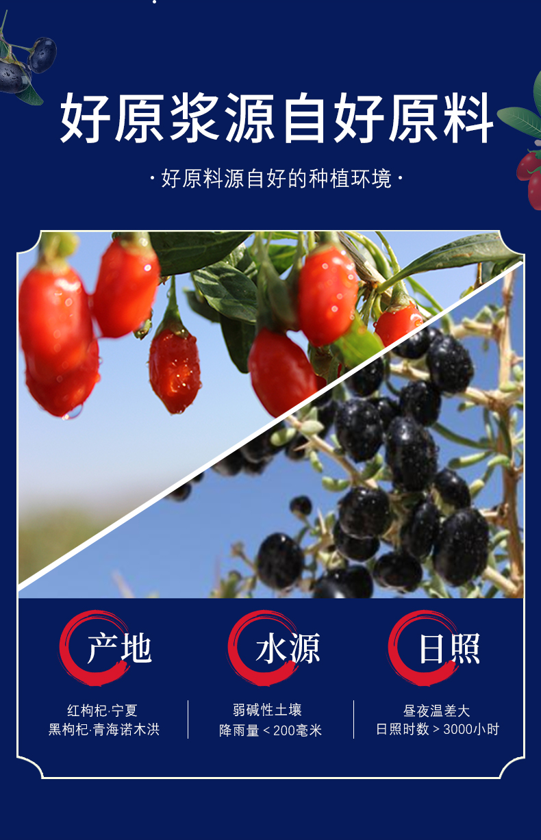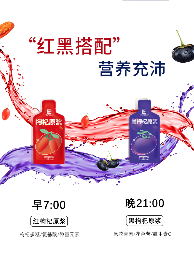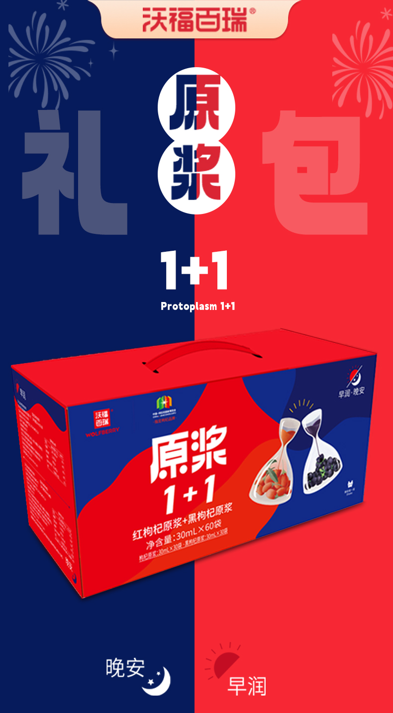 沃福百瑞1+1红黑枸杞原浆组合青海黑枸杞汁宁夏红枸杞汁