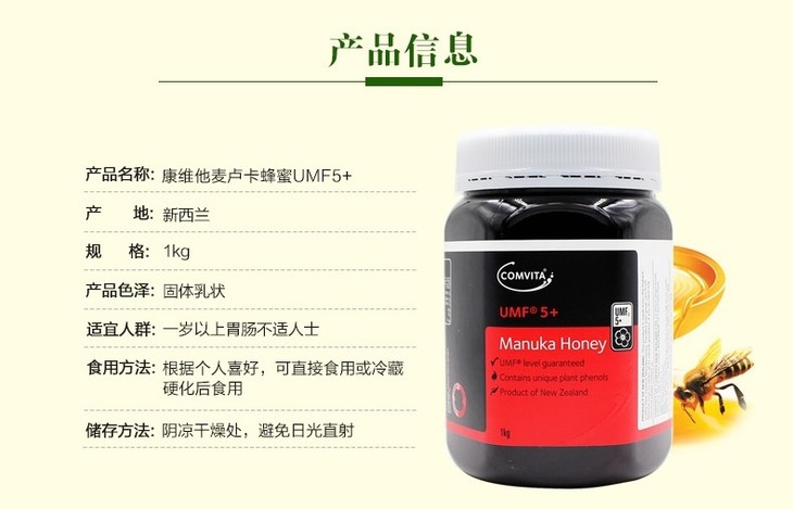 (永久下架)澳洲comvita康维他 麦卢卡蜂蜜 UMF5+ 1000g大瓶