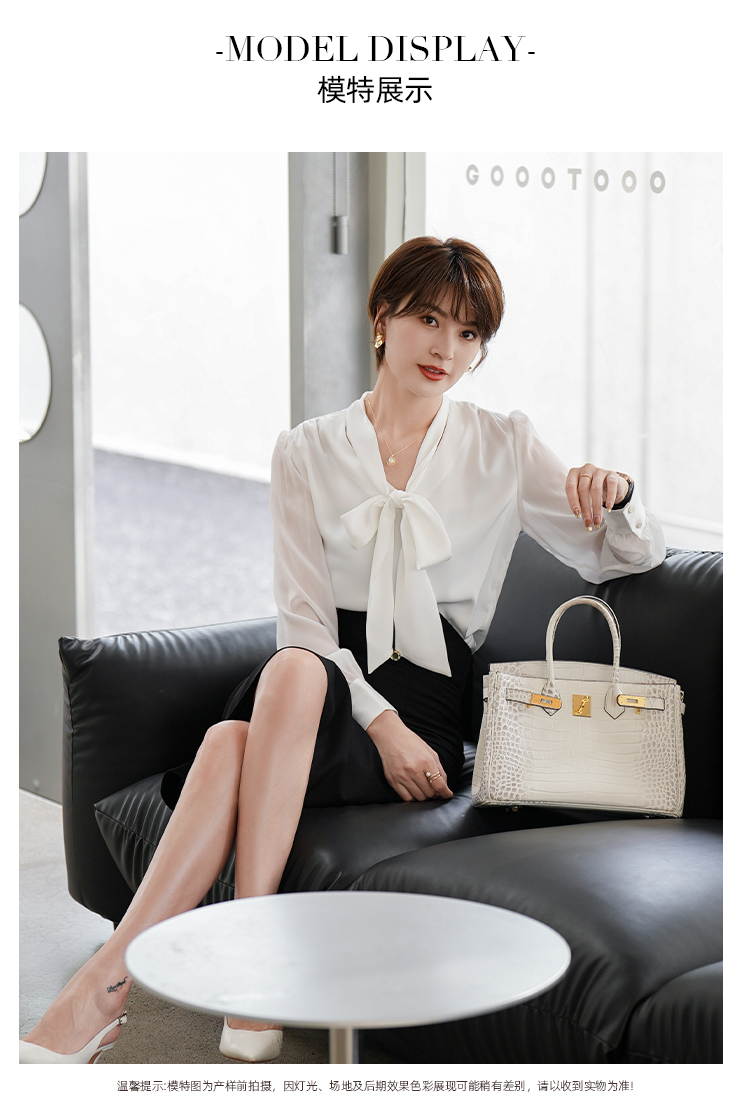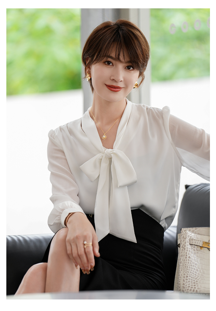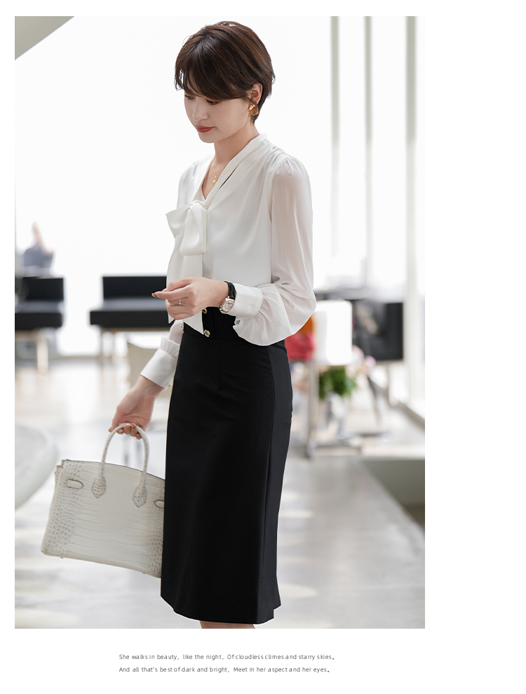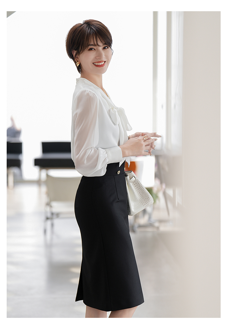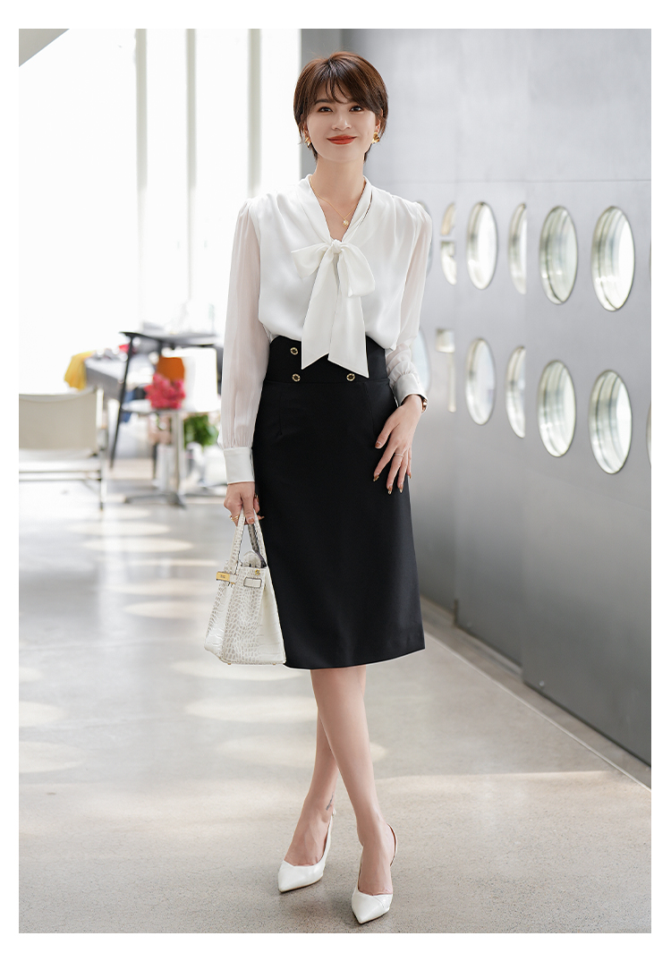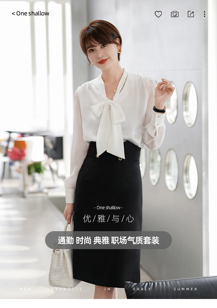 白色衬衣职业套裙套装2023夏季新款系带飘带时尚套装裙子