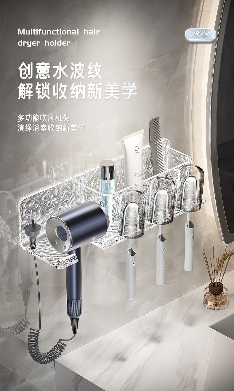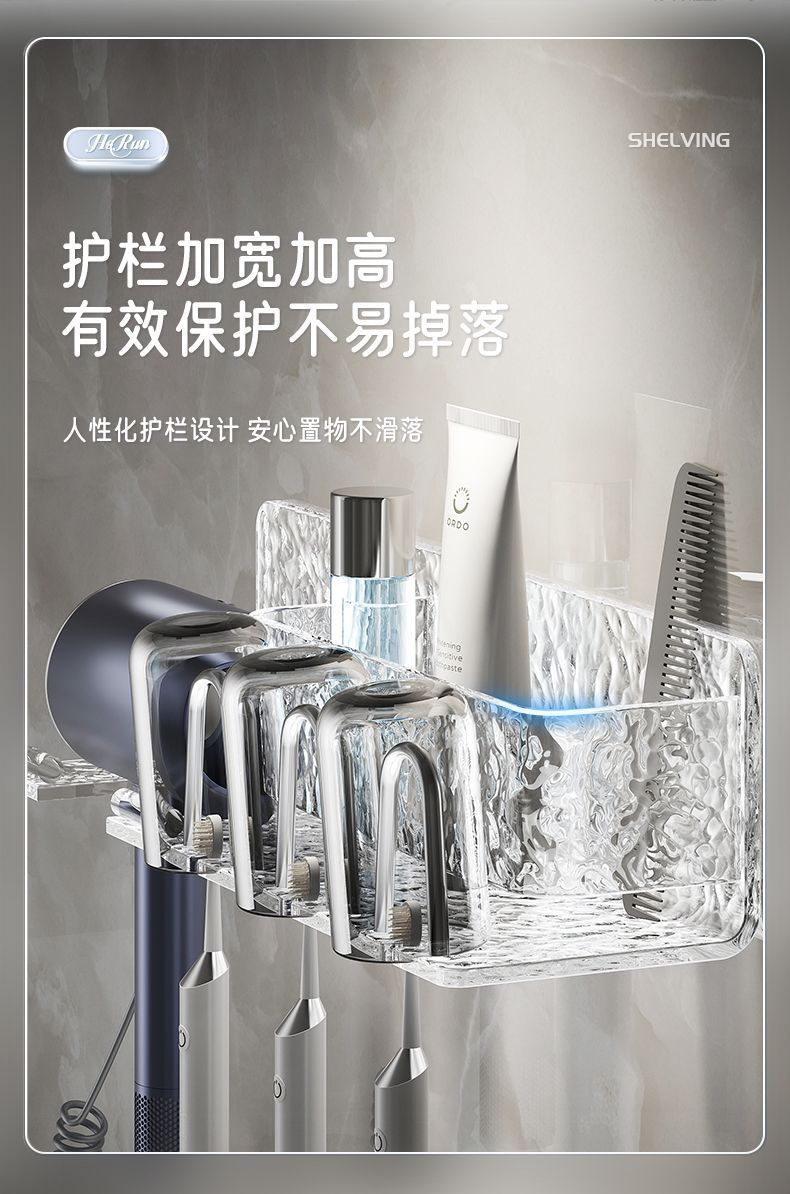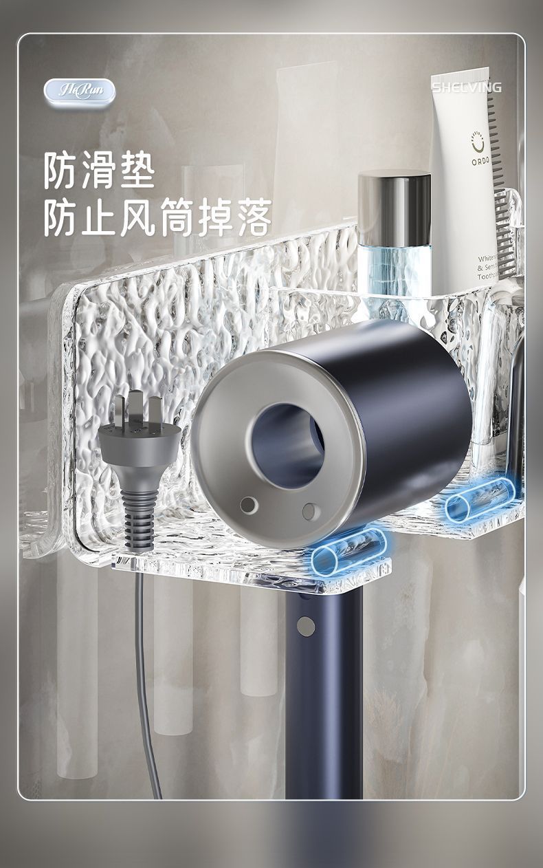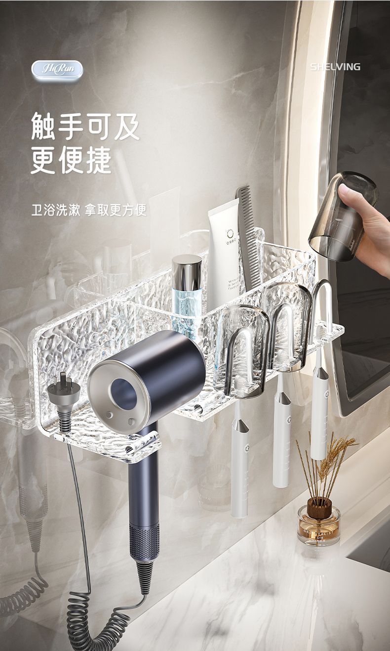 高档亚克力免打孔卫生间置物架浴室漱口牙刷架挂墙式吹风机收纳架