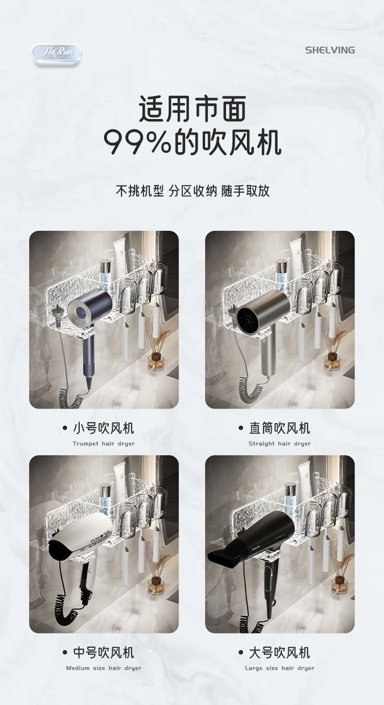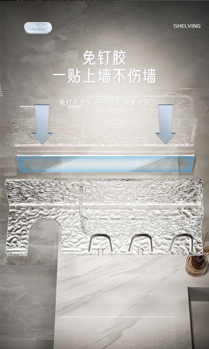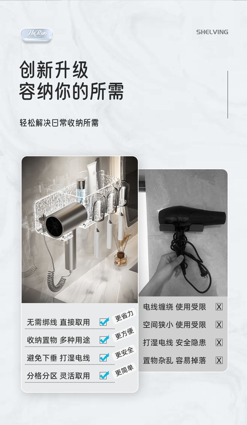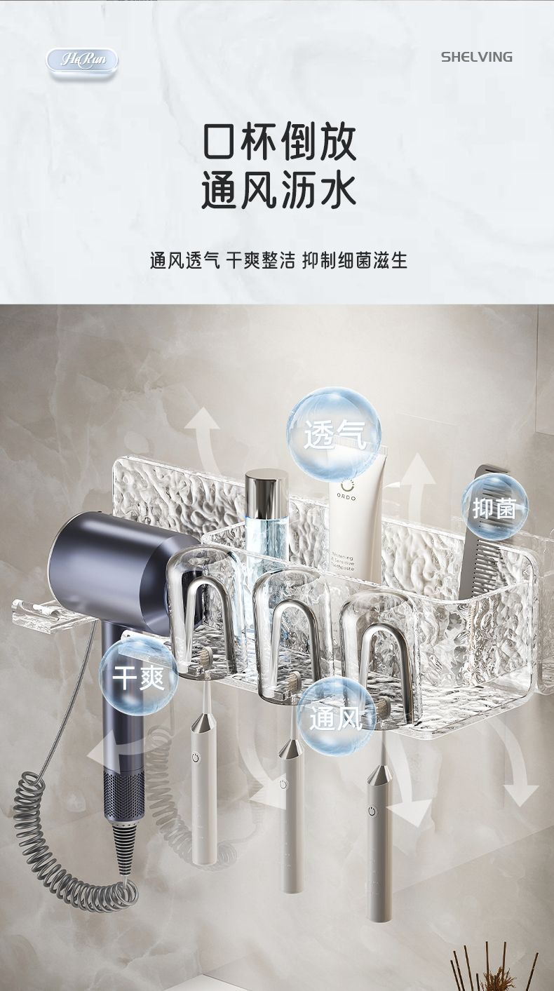 高档亚克力免打孔卫生间置物架浴室漱口牙刷架挂墙式吹风机收纳架