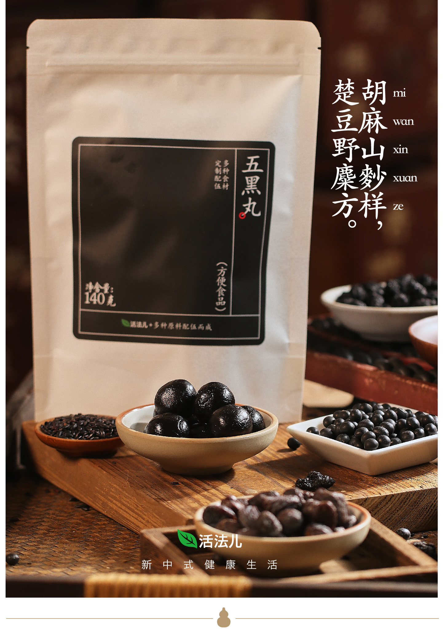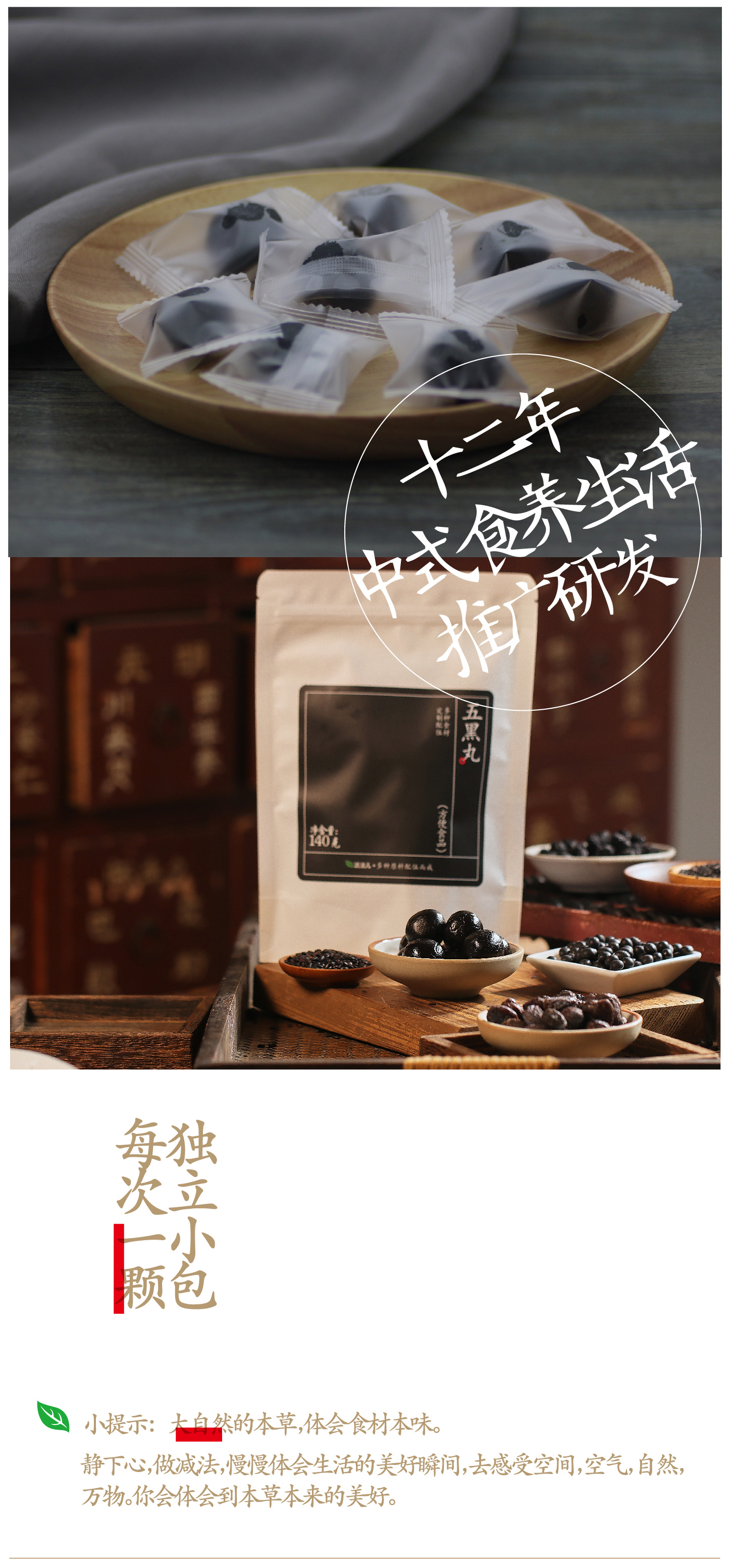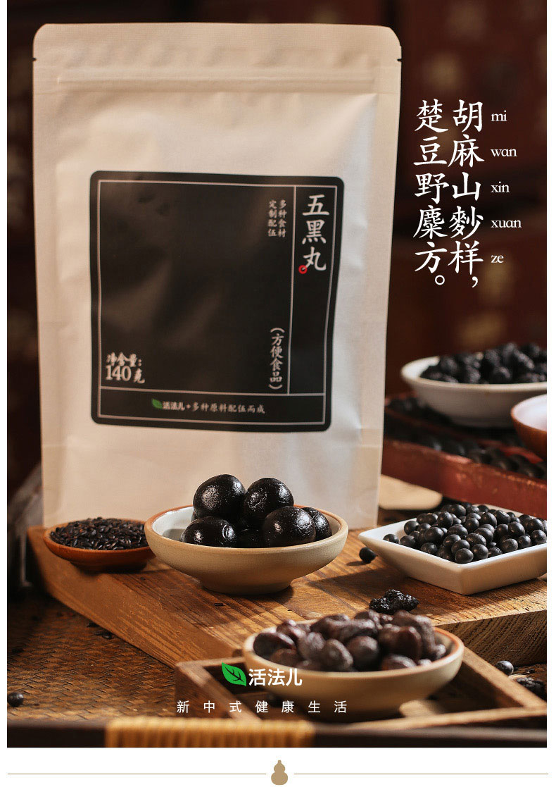 五黑丸 | 5种黑色食材以黑养黑手作辟谷丸黑豆黑米黑芝麻黑枣桑葚袋装14颗。