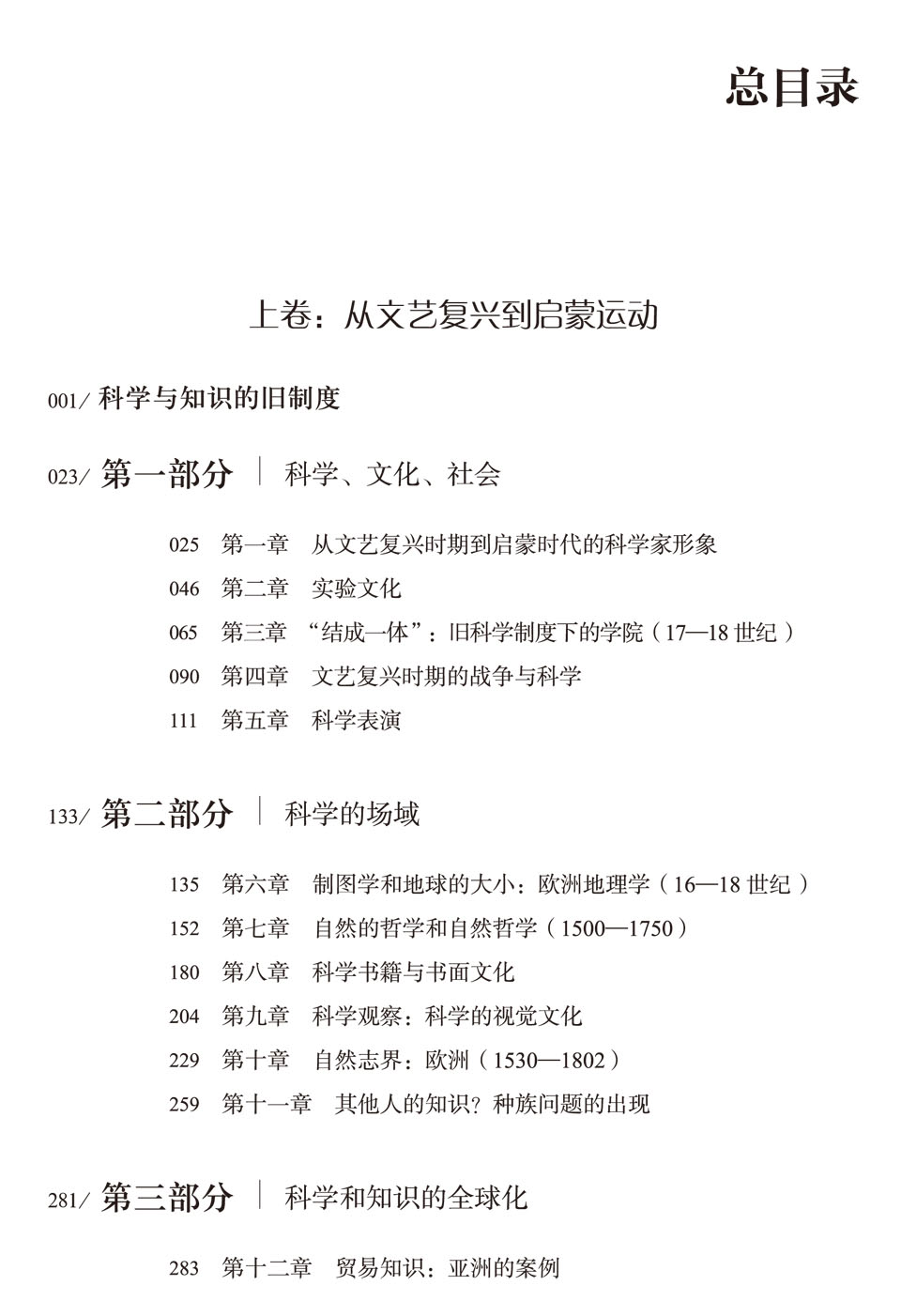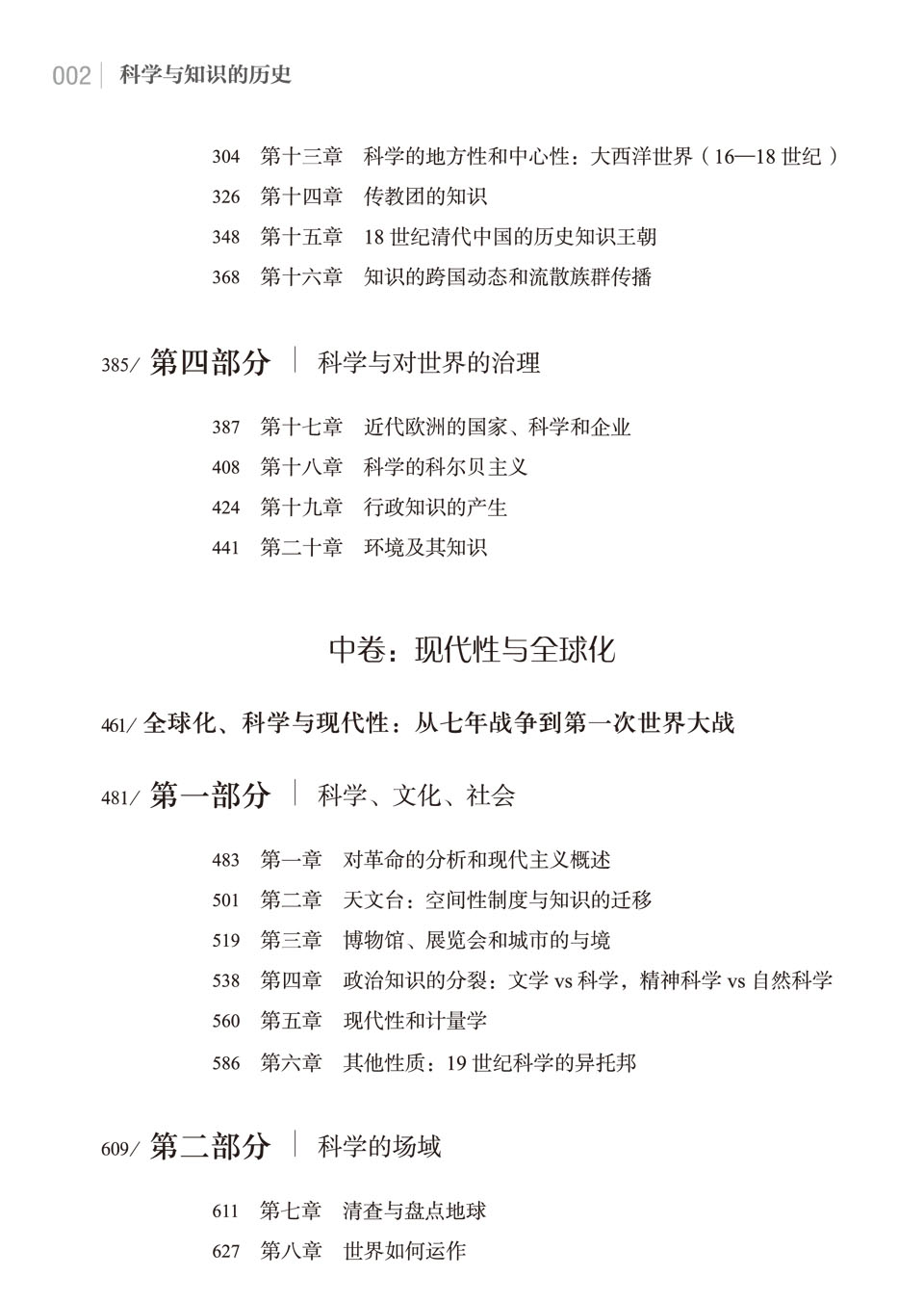 《科学与知识的历史》是“科技史经典译丛”中一种,分为上、中、下三卷。每卷对应一个特定的时间段。首先是从文艺复兴到启蒙时代,然后是从18世纪末到1914年战争前夕的漫长的19世纪,最后是从第一次世界大战到今天的这一百多年。全书着眼于知识尤其是科学知识随着时间和地点而变化的定义,旨在阐明过去5个世纪科学发展的情况,既描述了科学知识的性质、做法、实践以及相关理论,也尝试从社会、经济、文化和政治层面叙述科学和知识的历史。