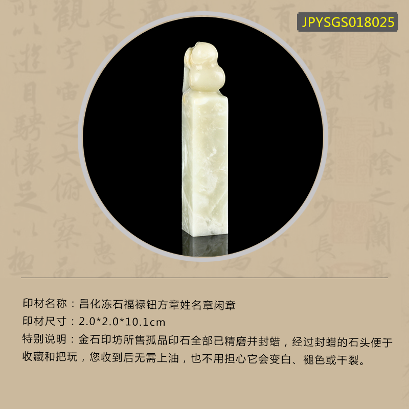 孤品18025昌化冻石福禄钮方章姓名章闲章2.0*2.0*10.1cm