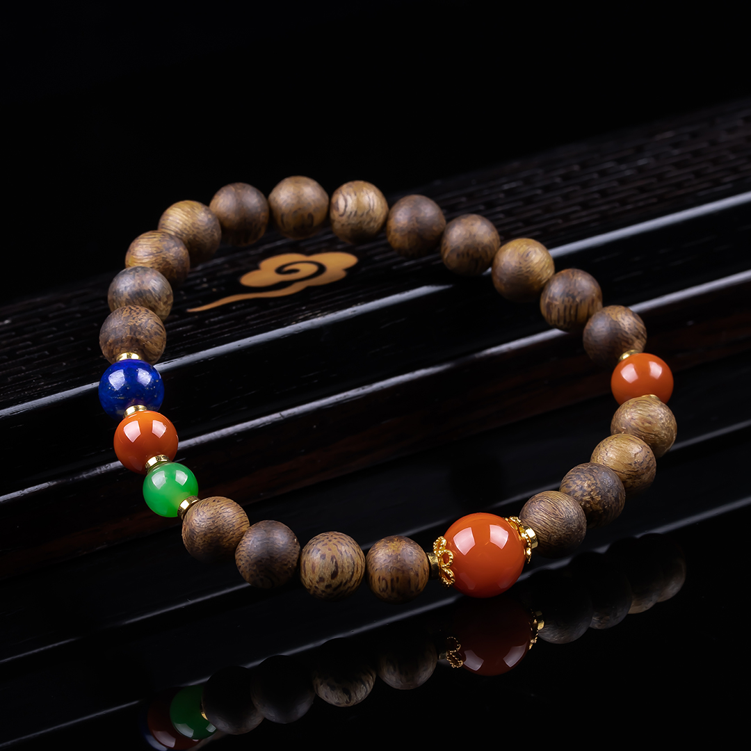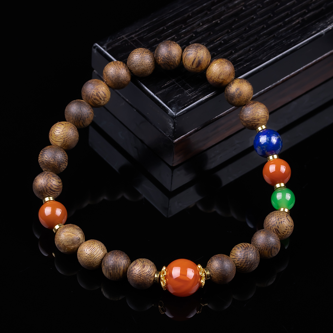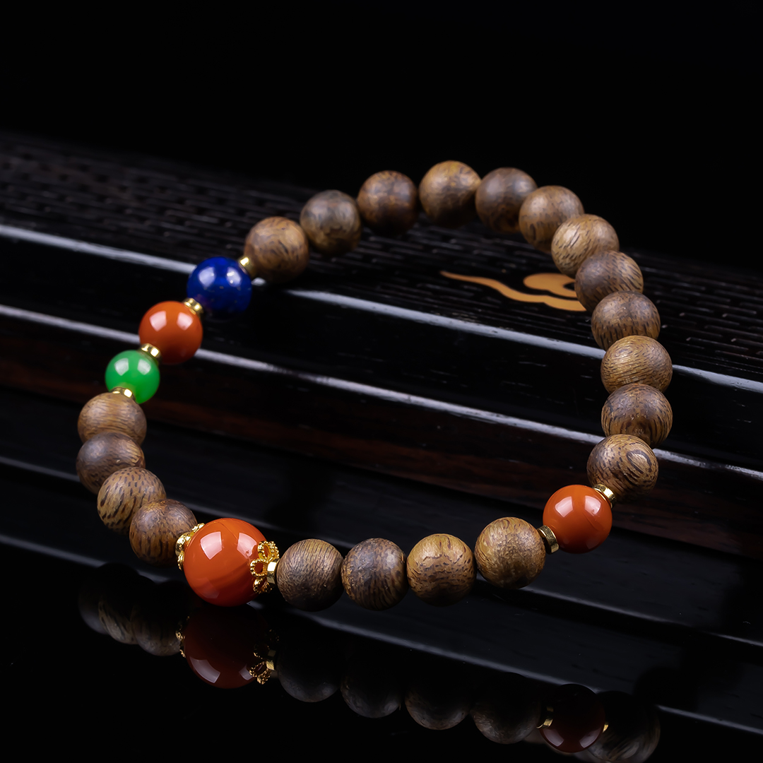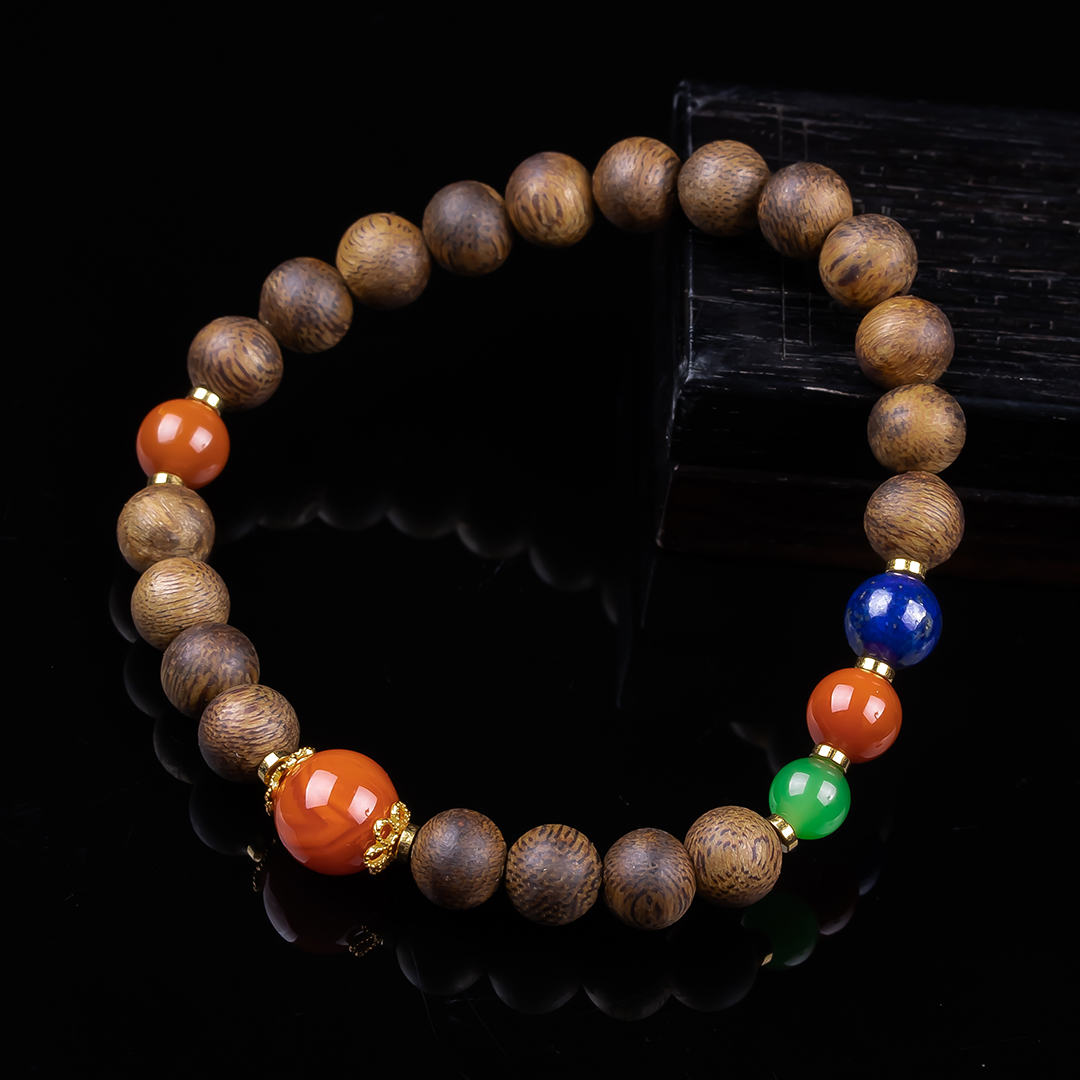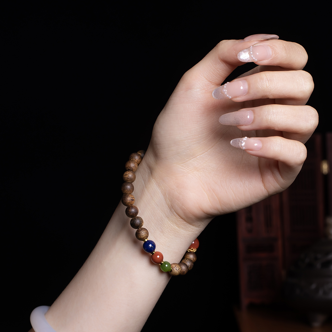 xy0353沉香+南红碧玉青金石国风穿搭手串,天然沉香约7.3mm,原色原味,香味自然清甜,南红、碧玉、青金石三色搭配,国风感满满,高贵典雅,吉祥好运!