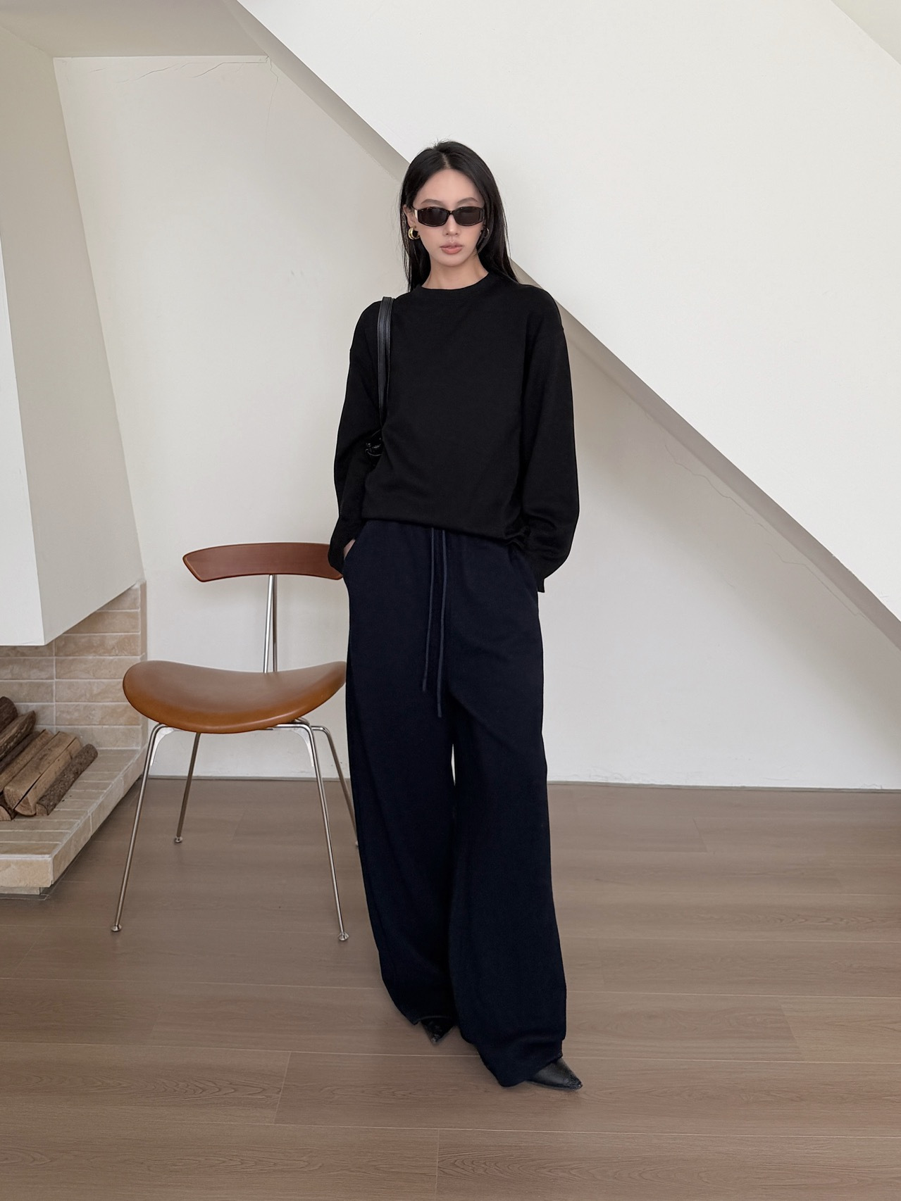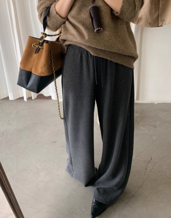 阔腿裤垂坠感绝佳,高腰搭配抽绳设计