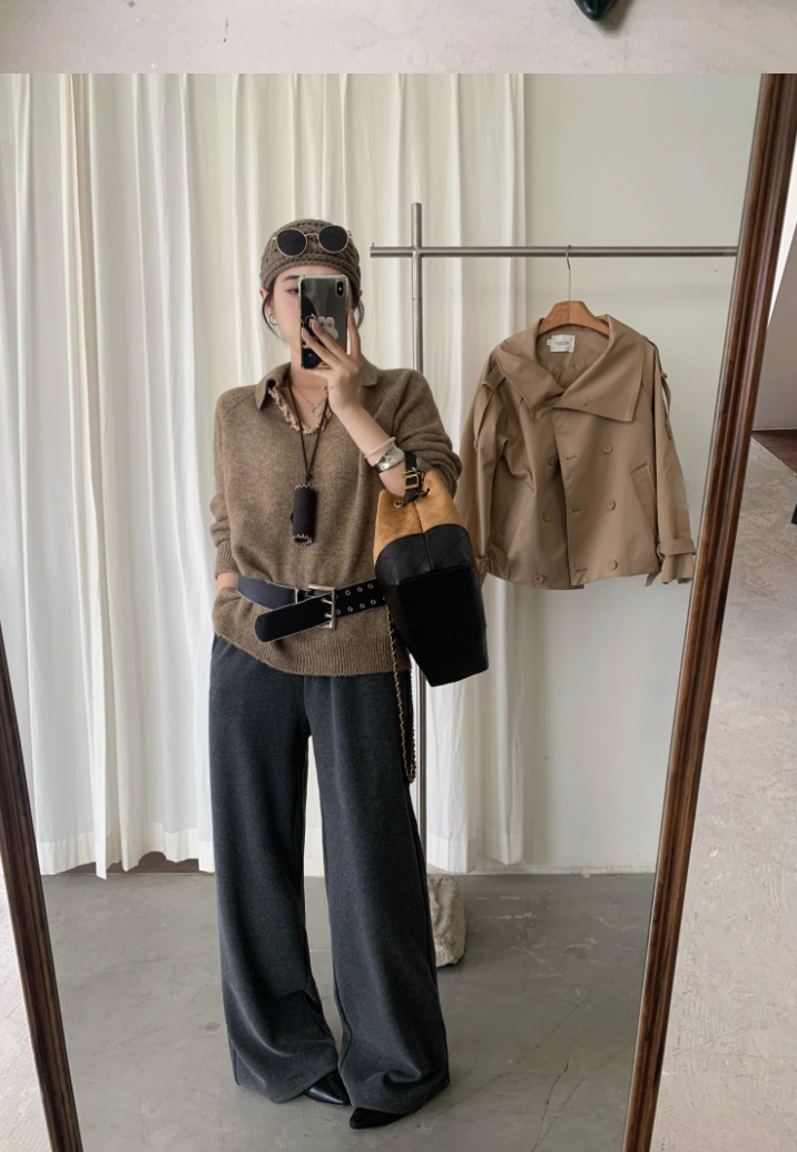 裤型垂坠感十足却不拖沓,行走间自然舒展