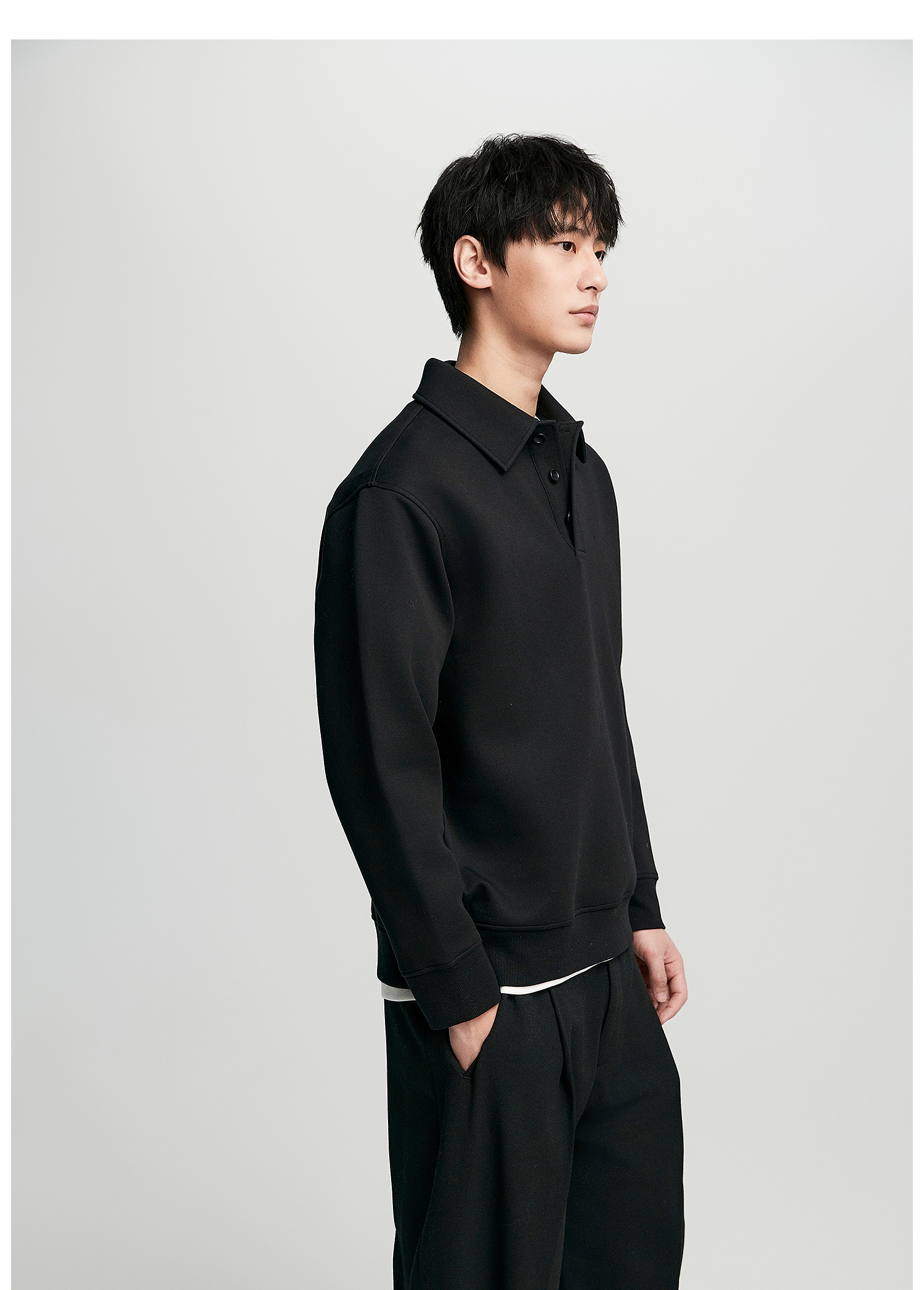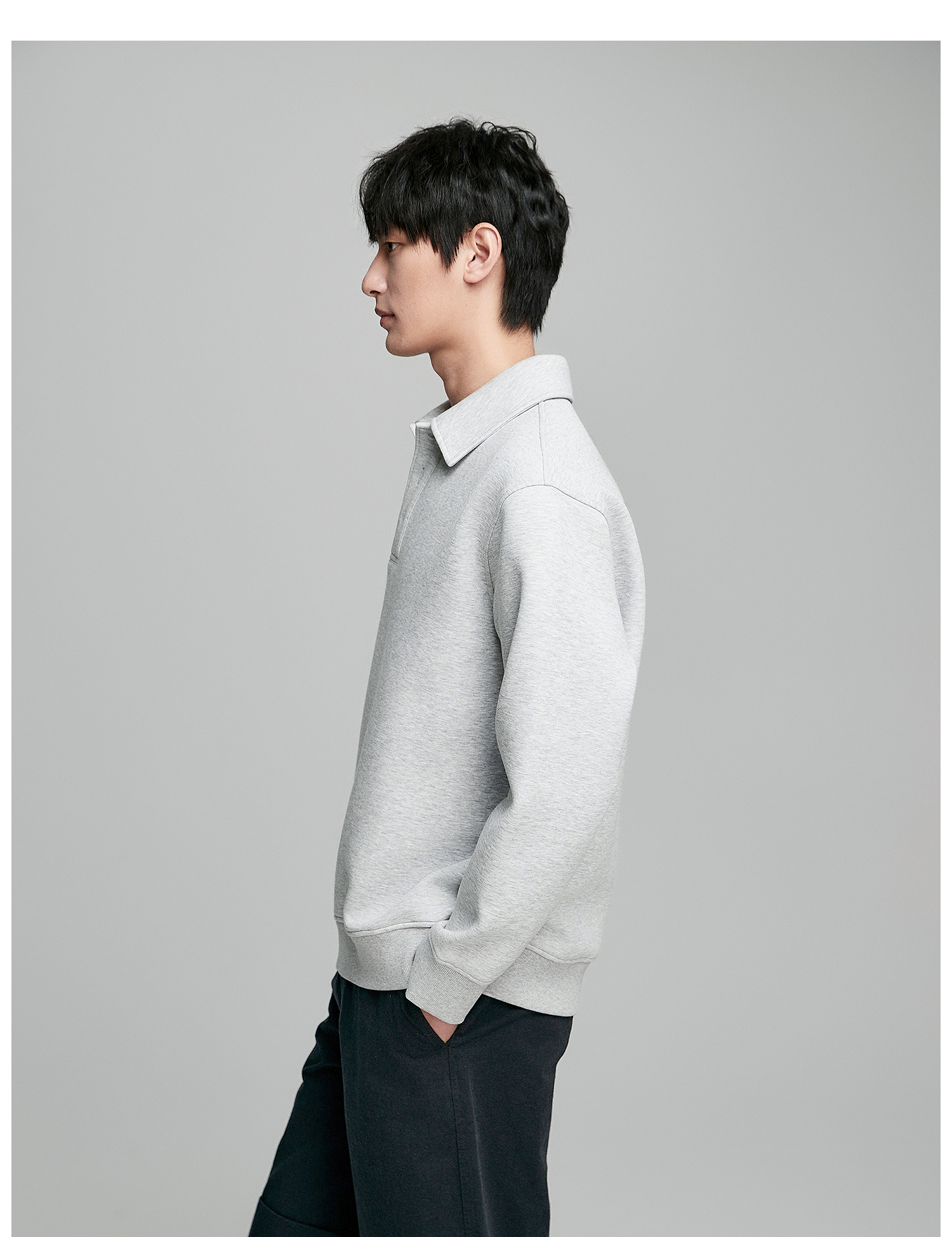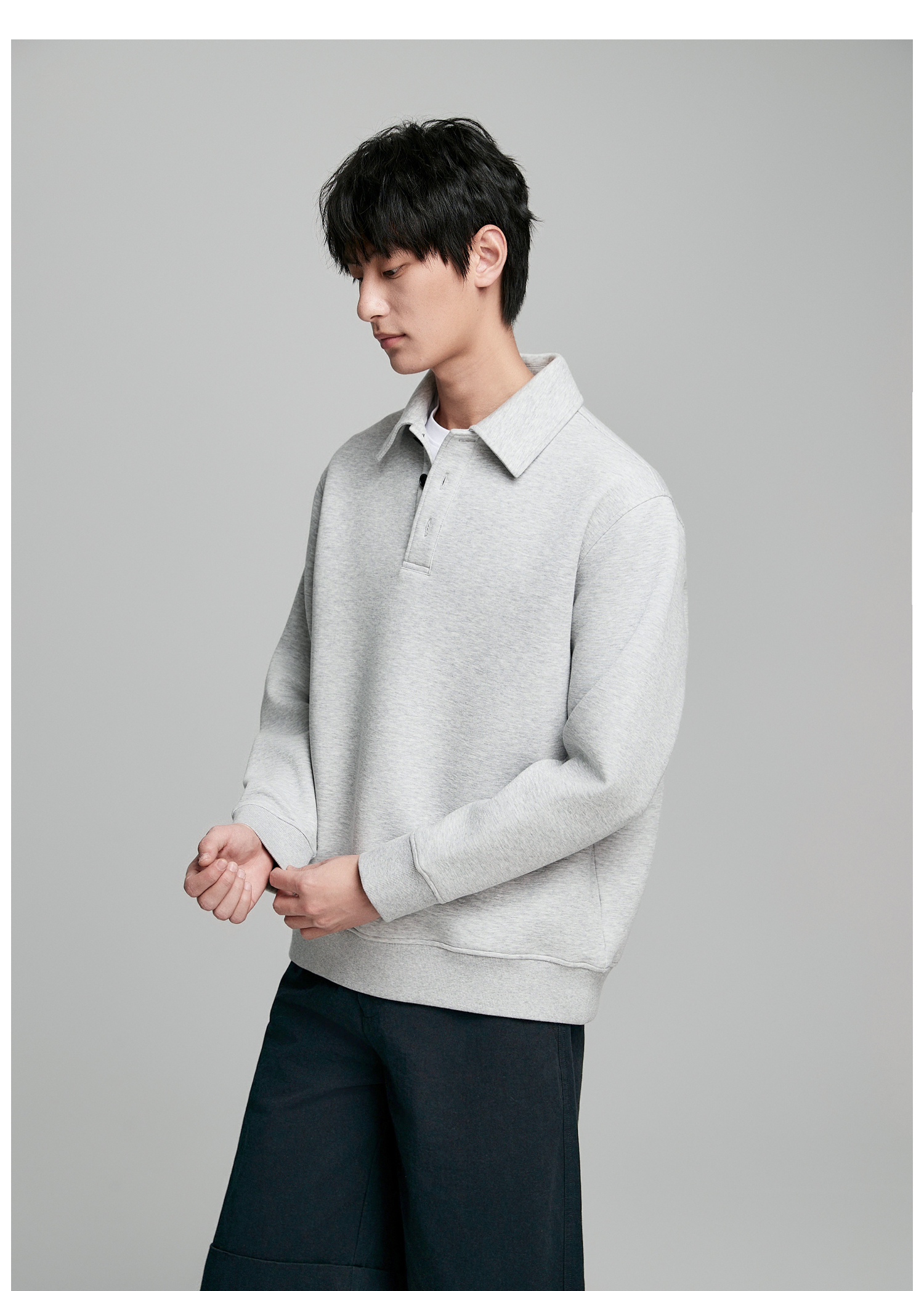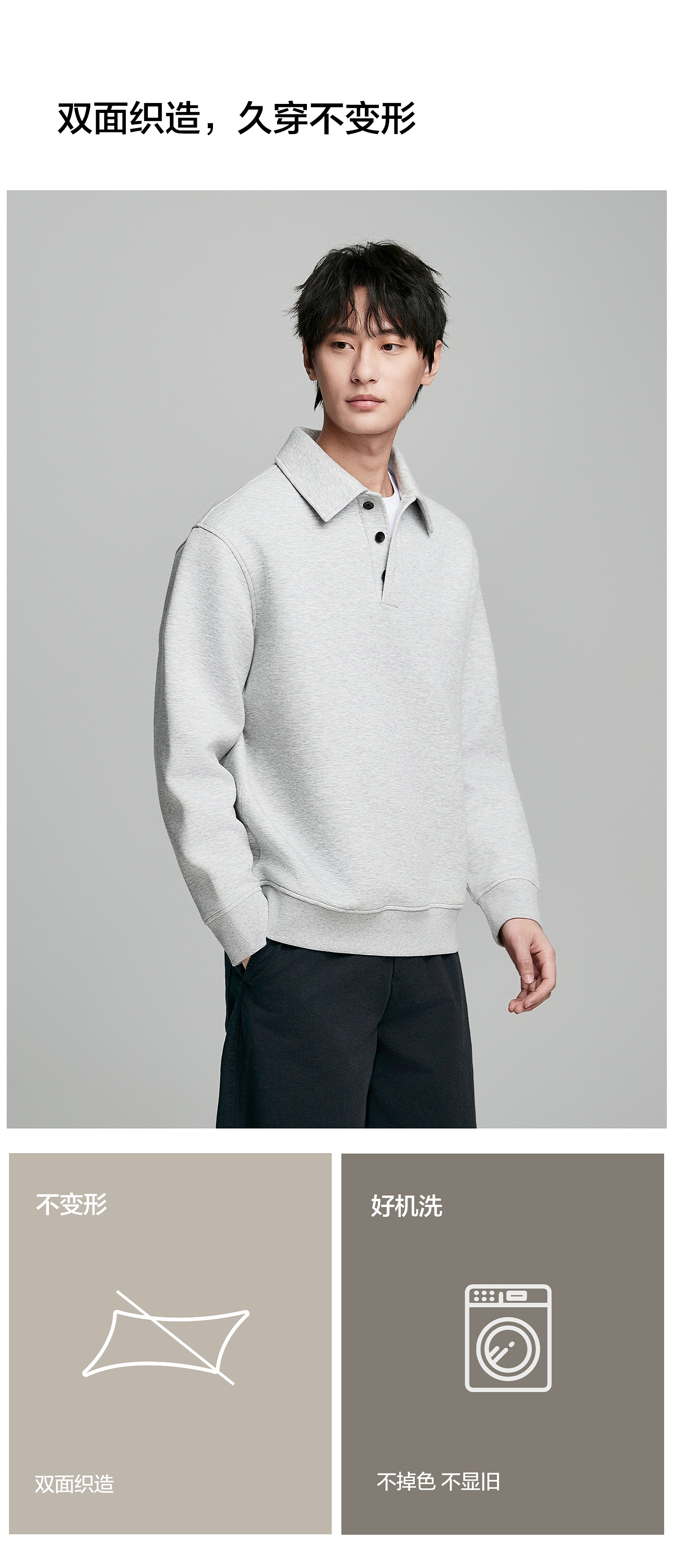 棉仓362808012-五明治空气层POLO领套头卫衣