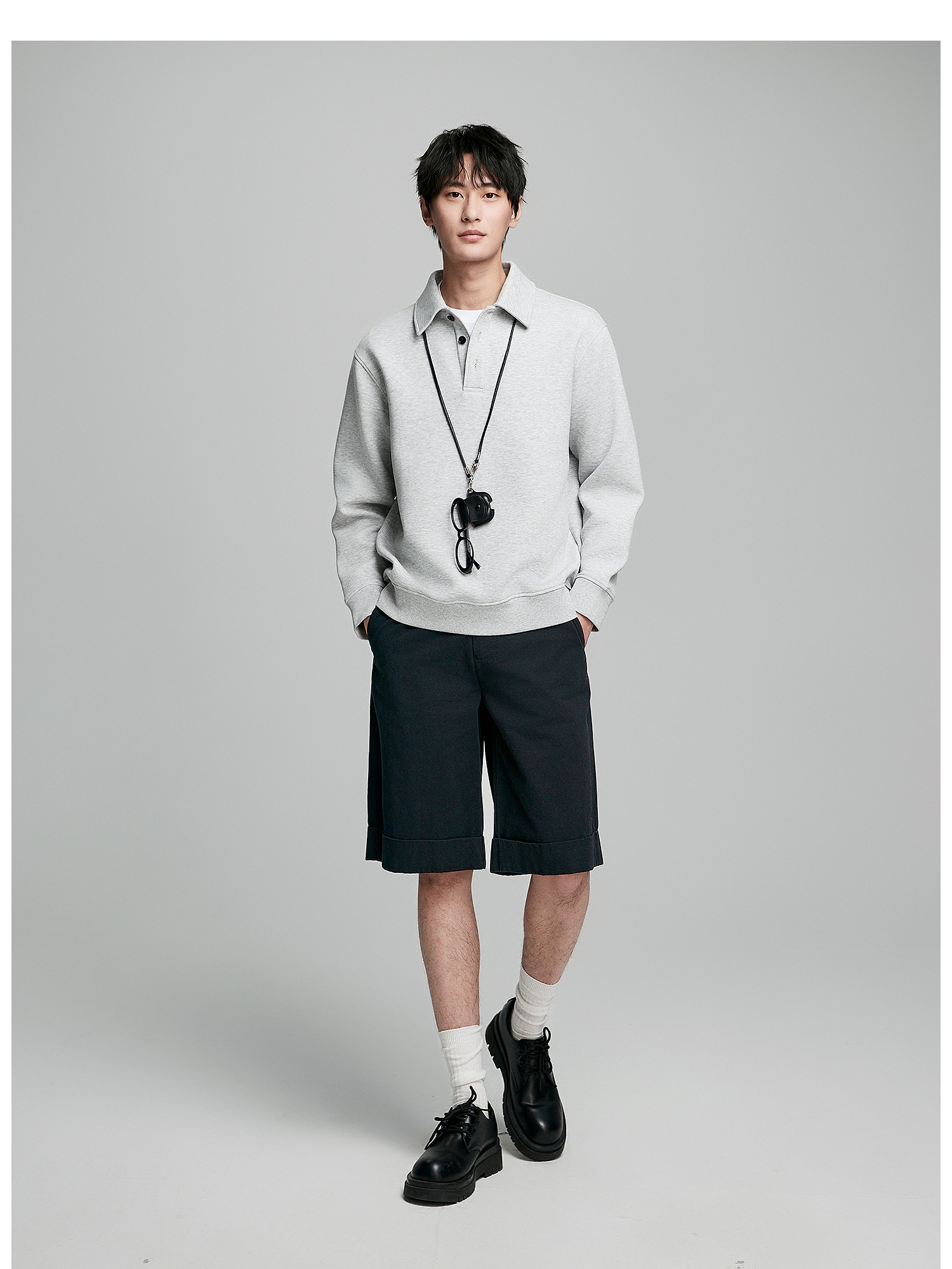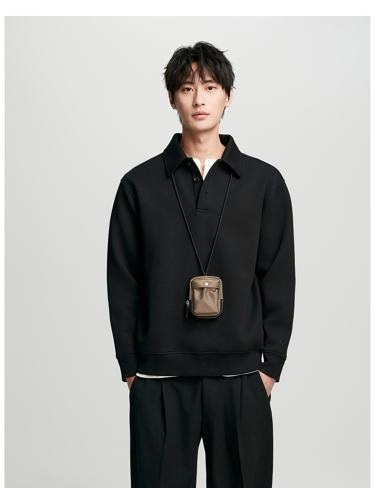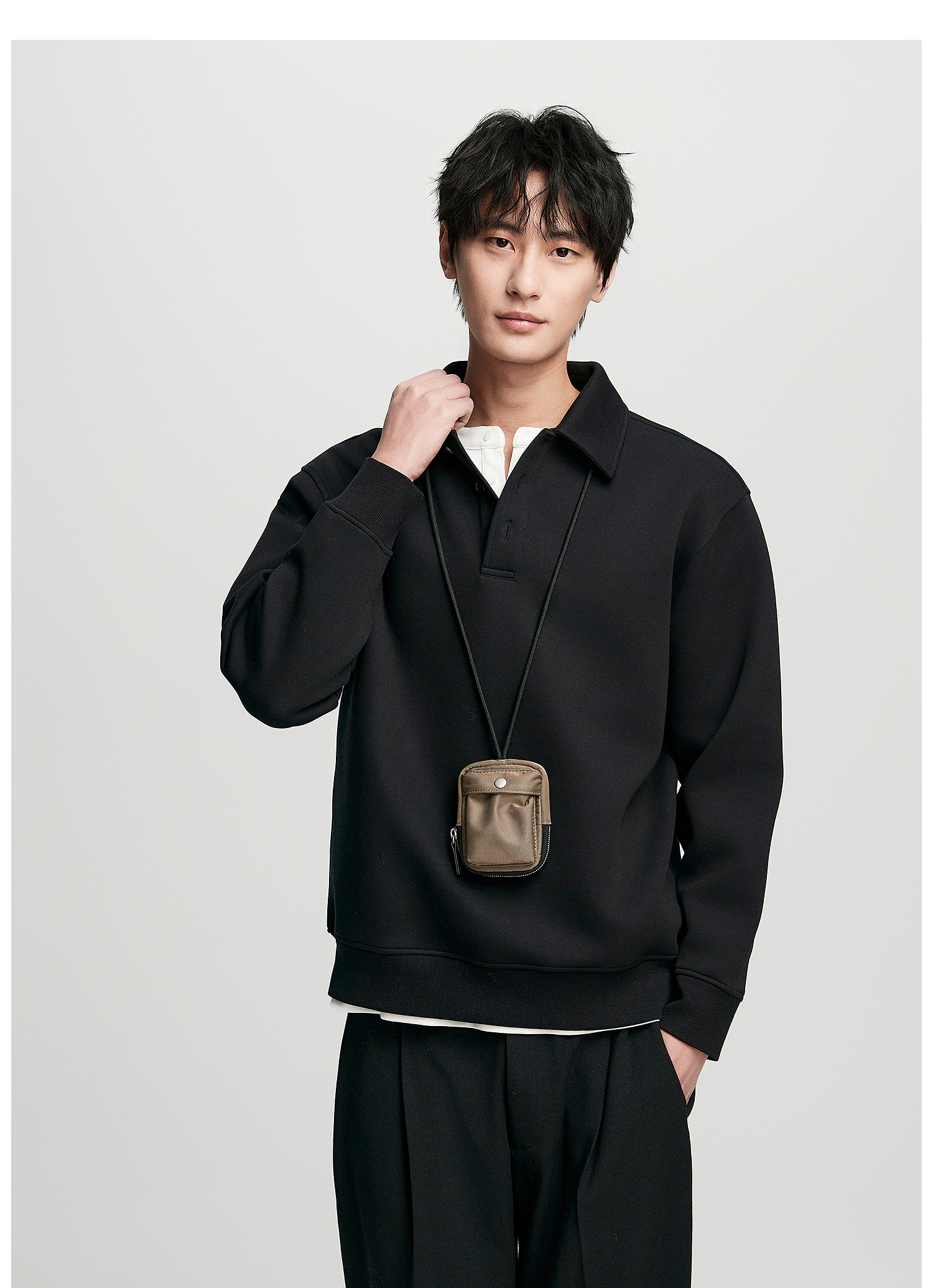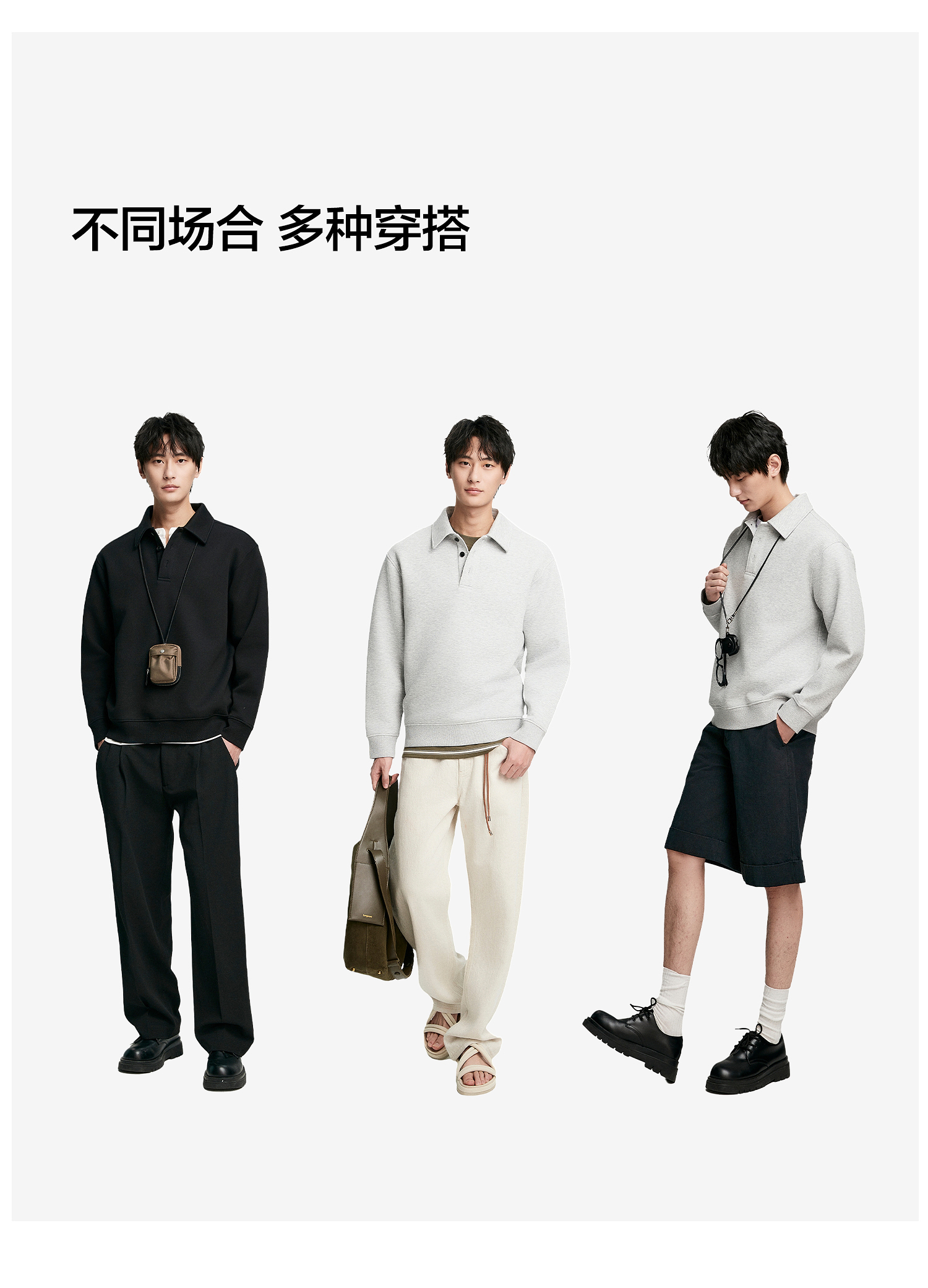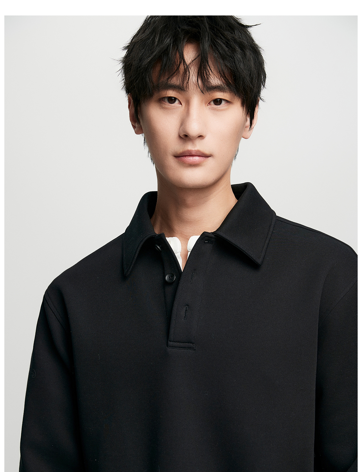 棉仓362808012-五明治空气层POLO领套头卫衣