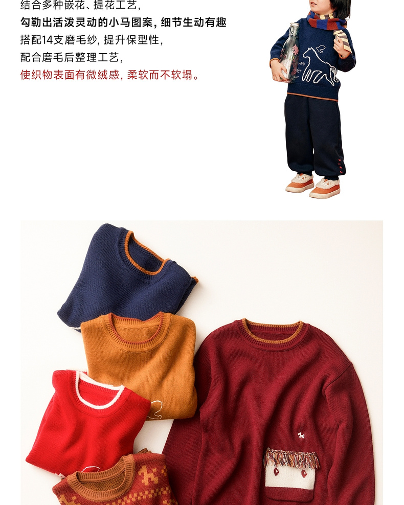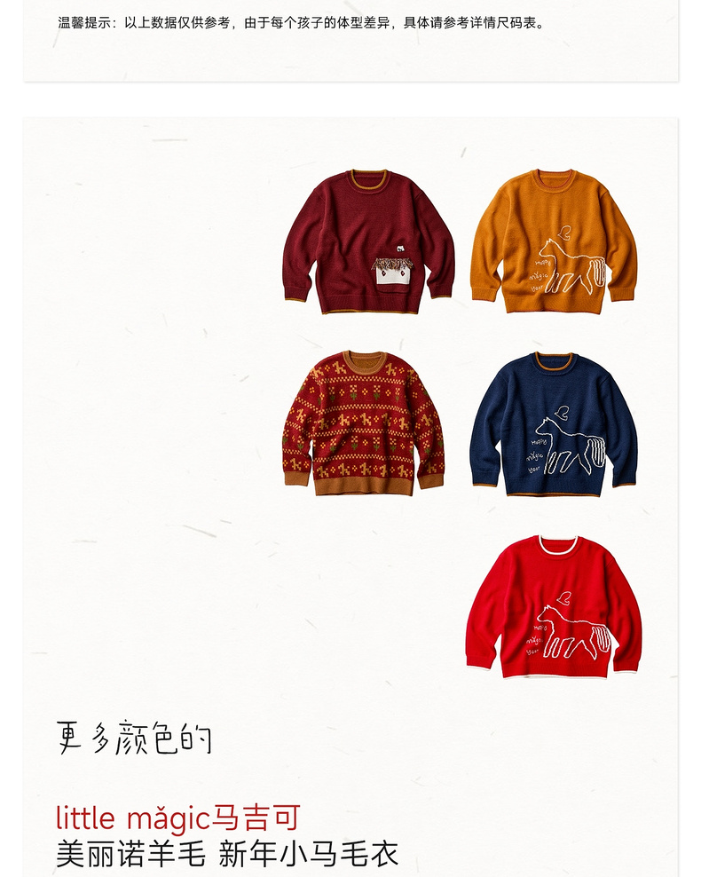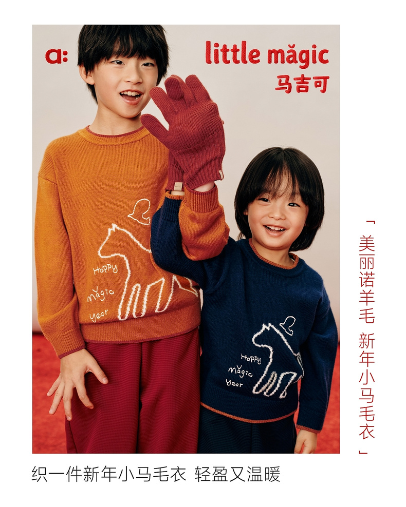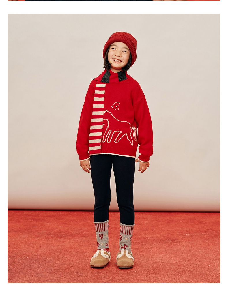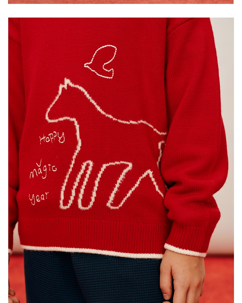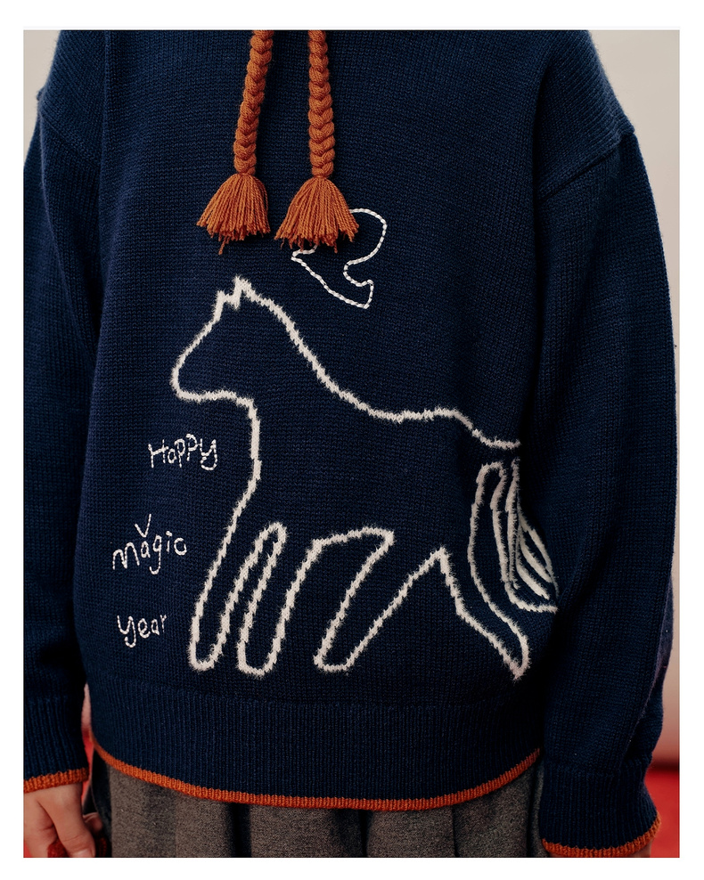 【春Vol.0】allblu幼岚美丽诺羊毛【新年小马毛衣】儿童毛衣26春季新品保暖ZY