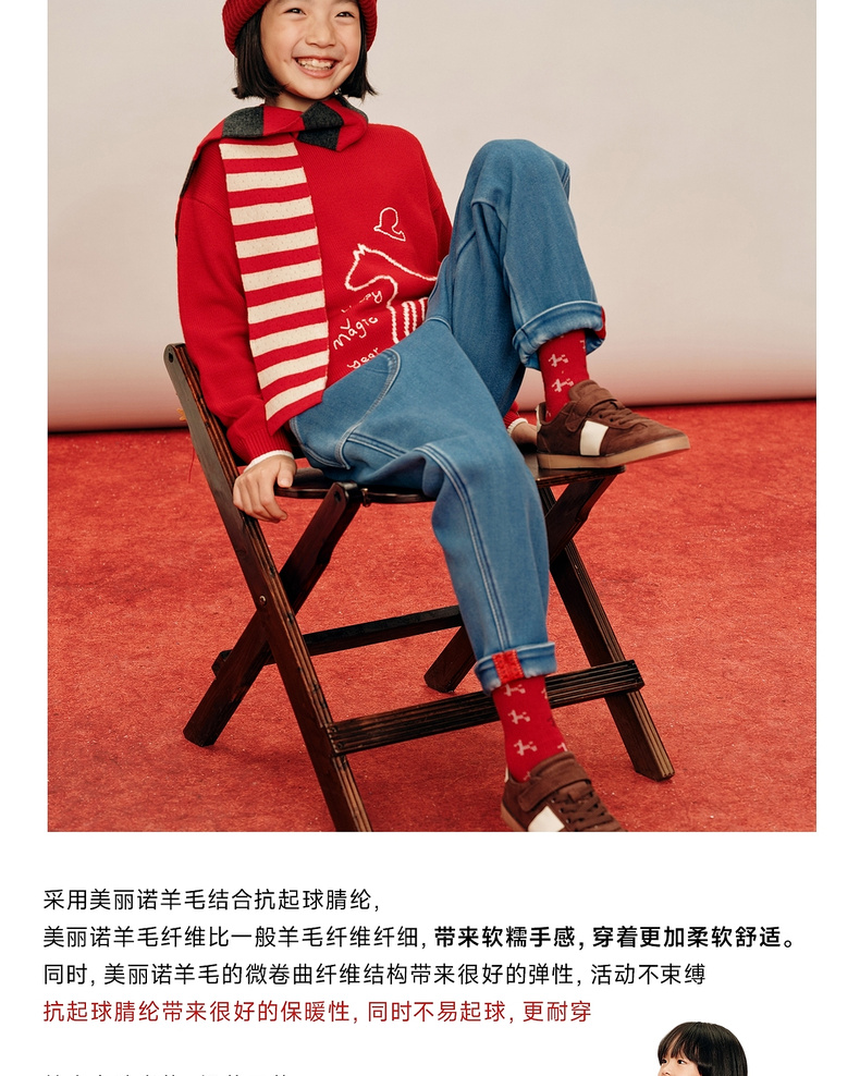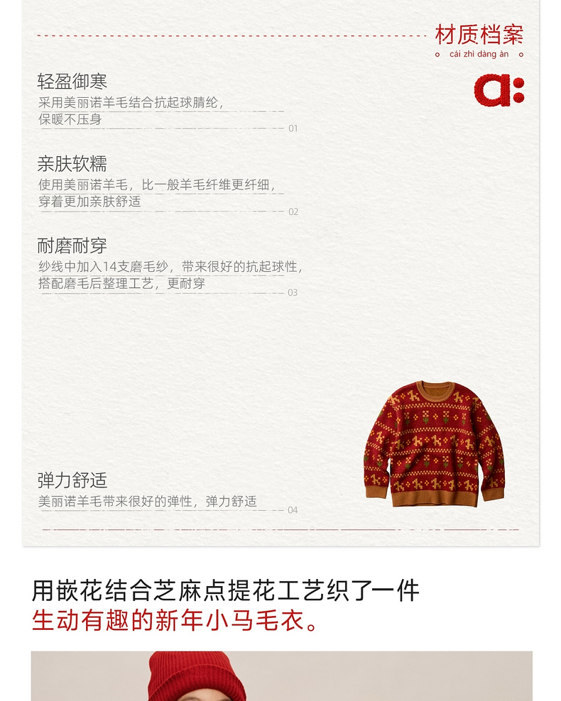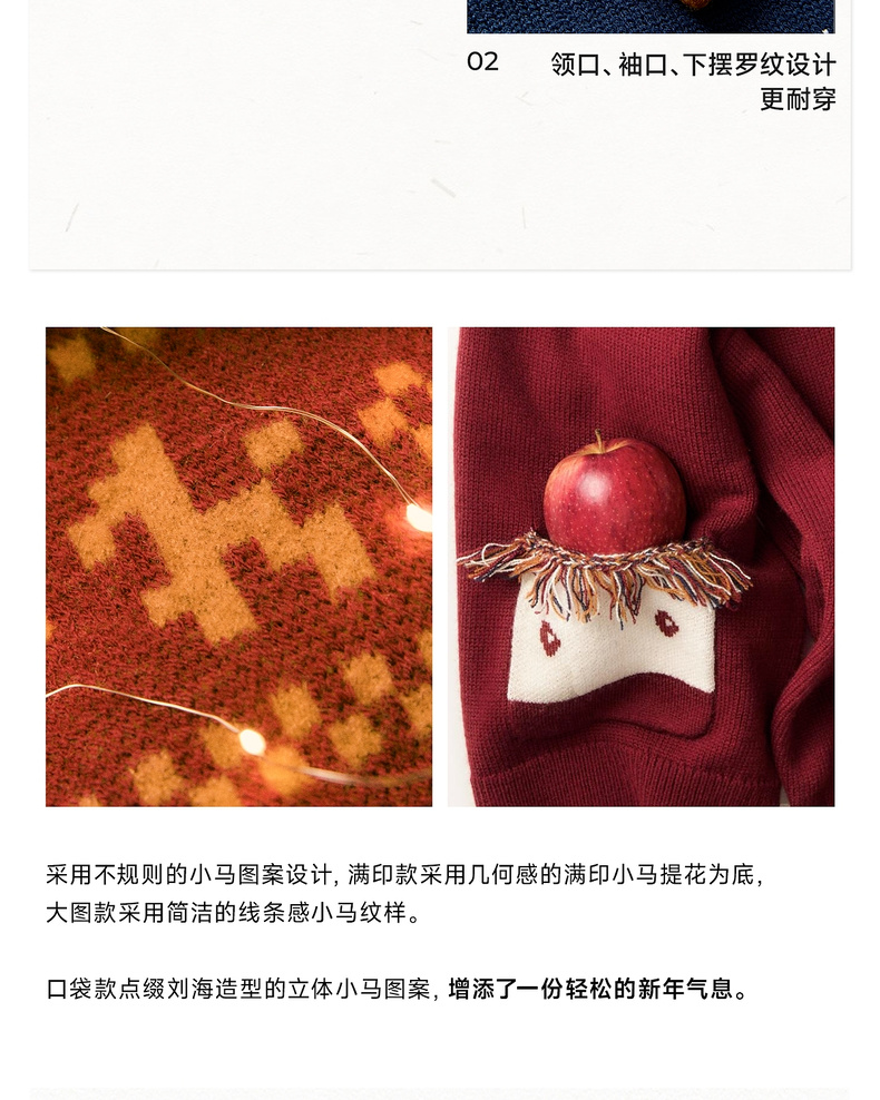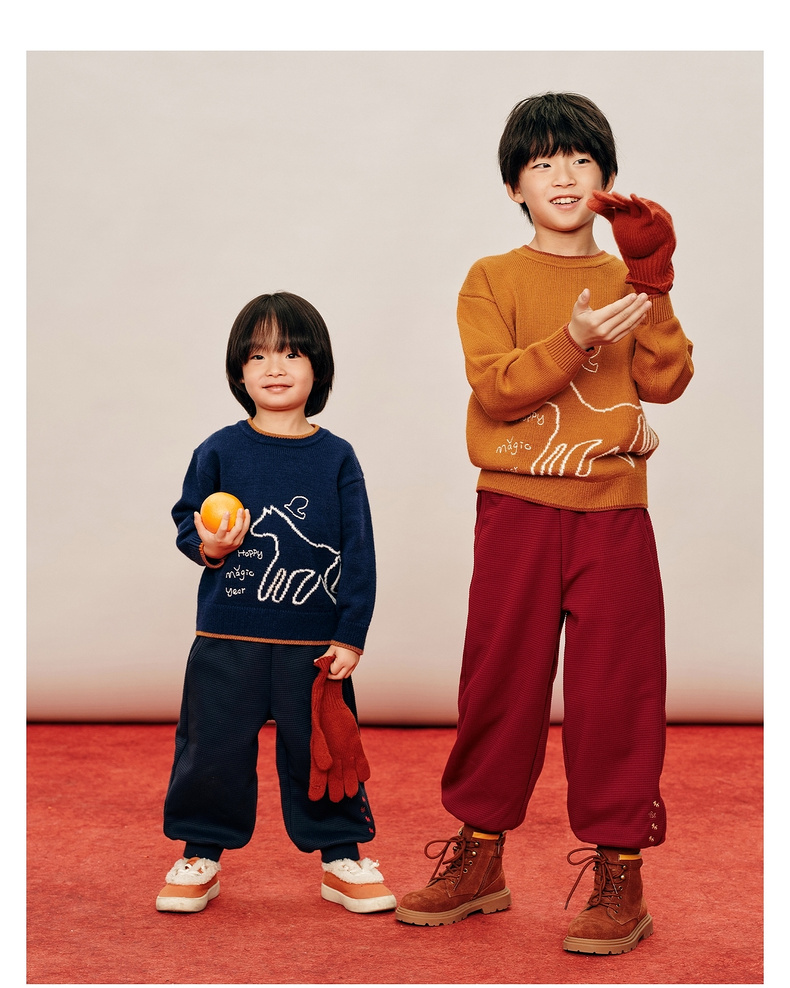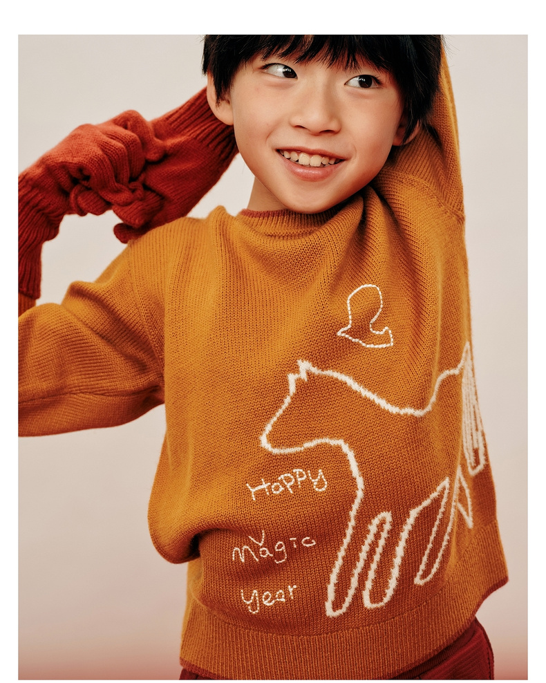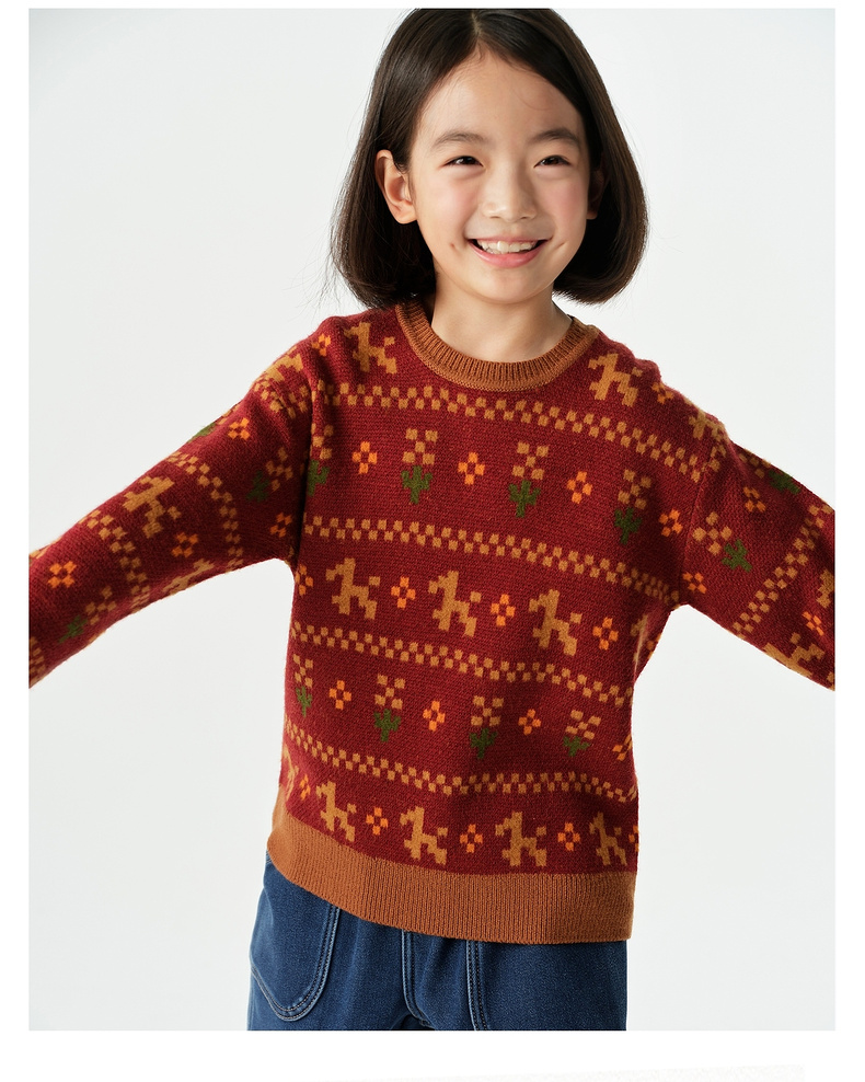 【春Vol.0】allblu幼岚美丽诺羊毛【新年小马毛衣】儿童毛衣26春季新品保暖ZY