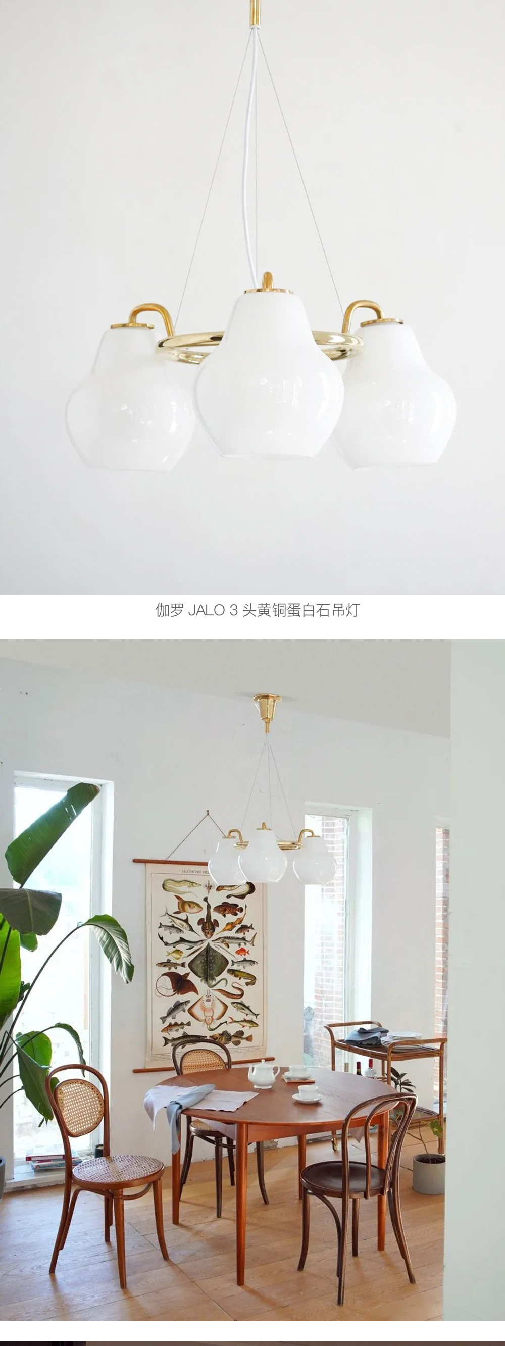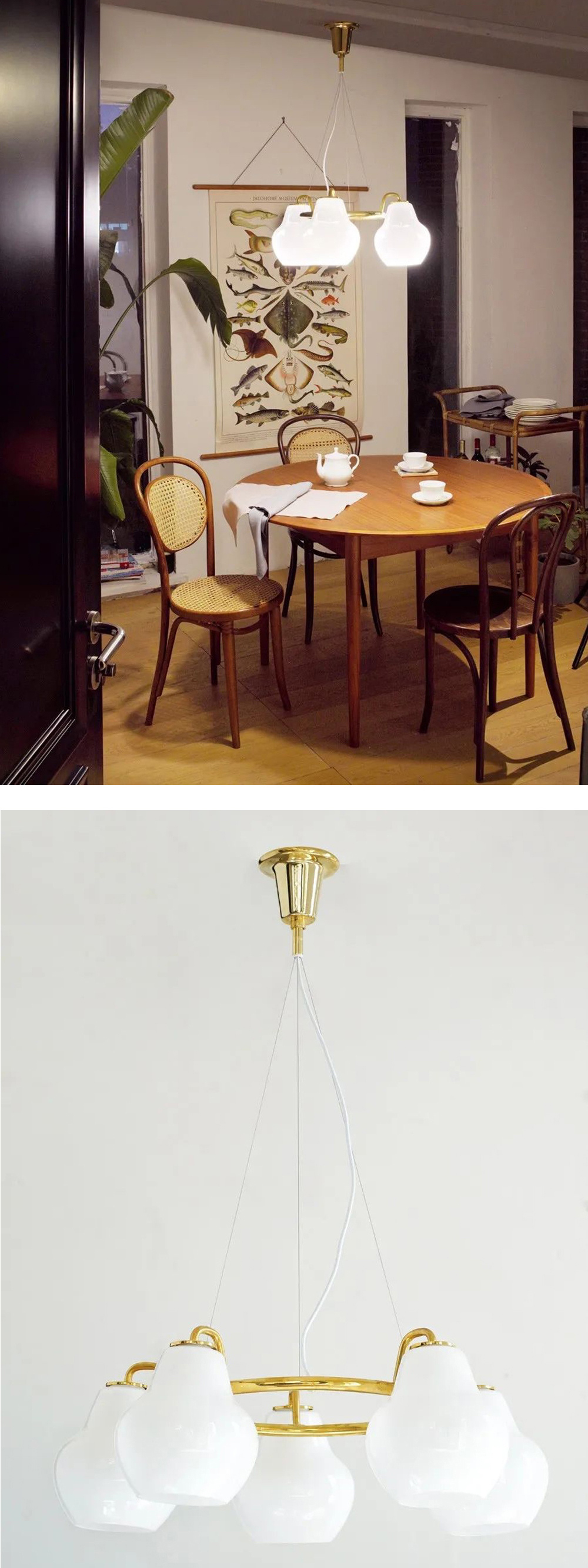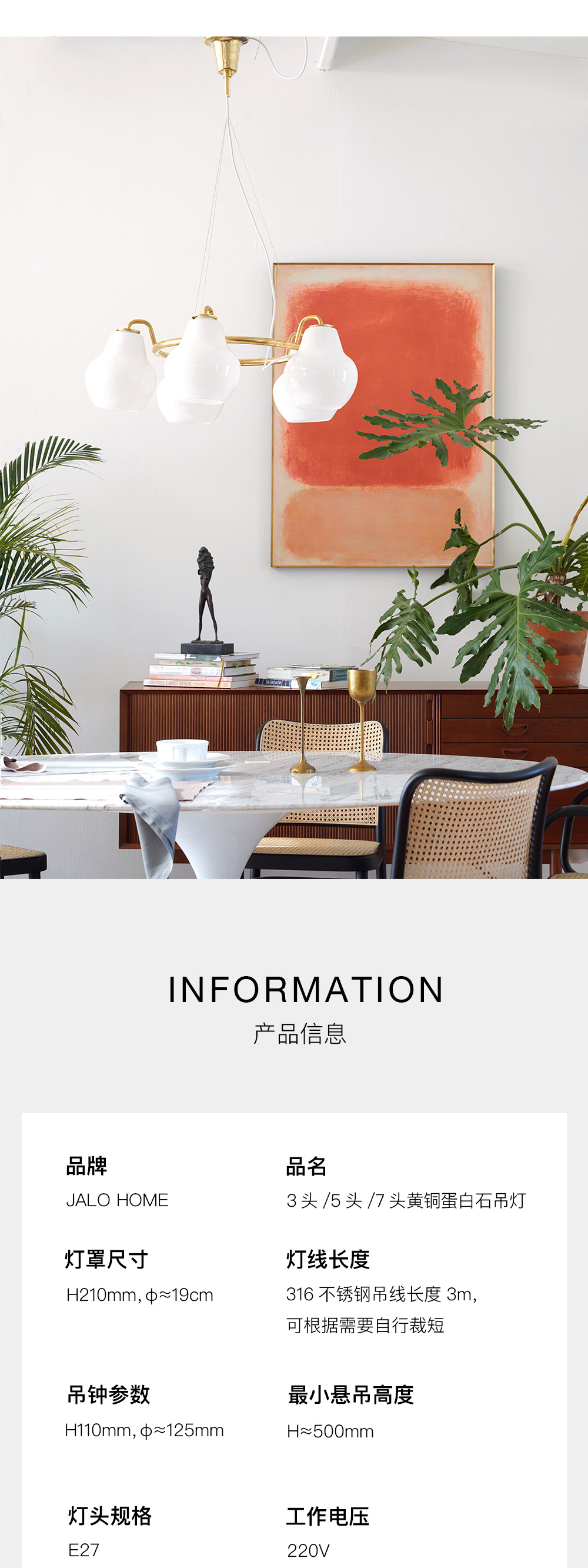 伽罗 JALO 黄铜蛋白石吊灯(3头/5头/7头)