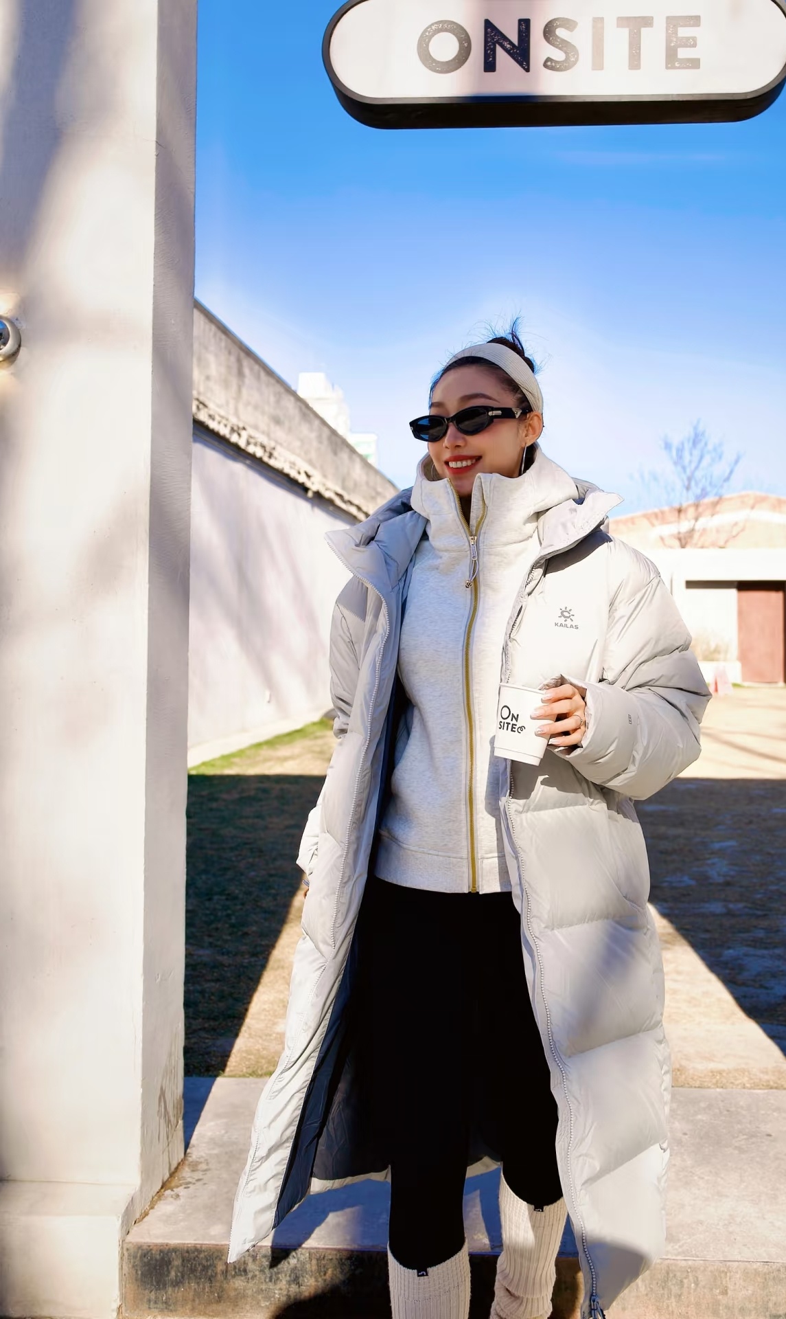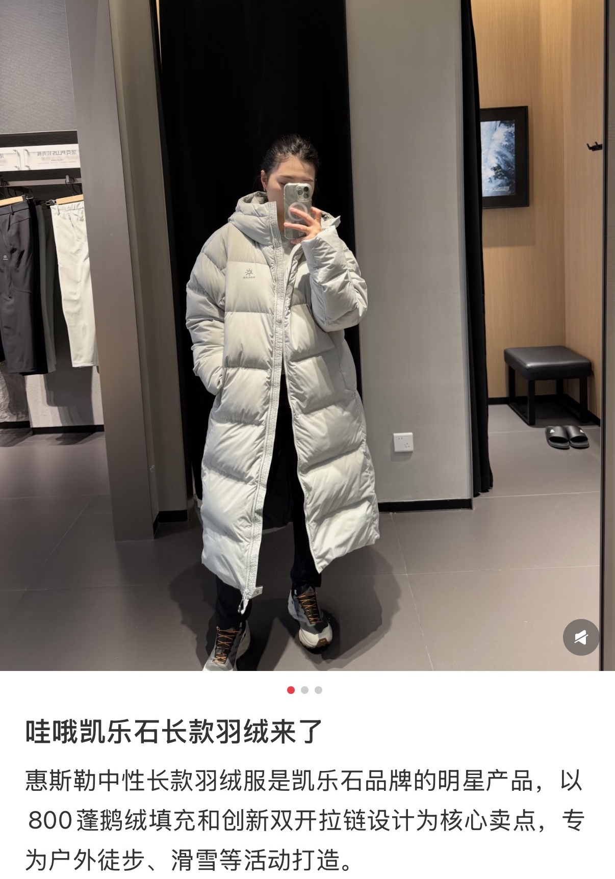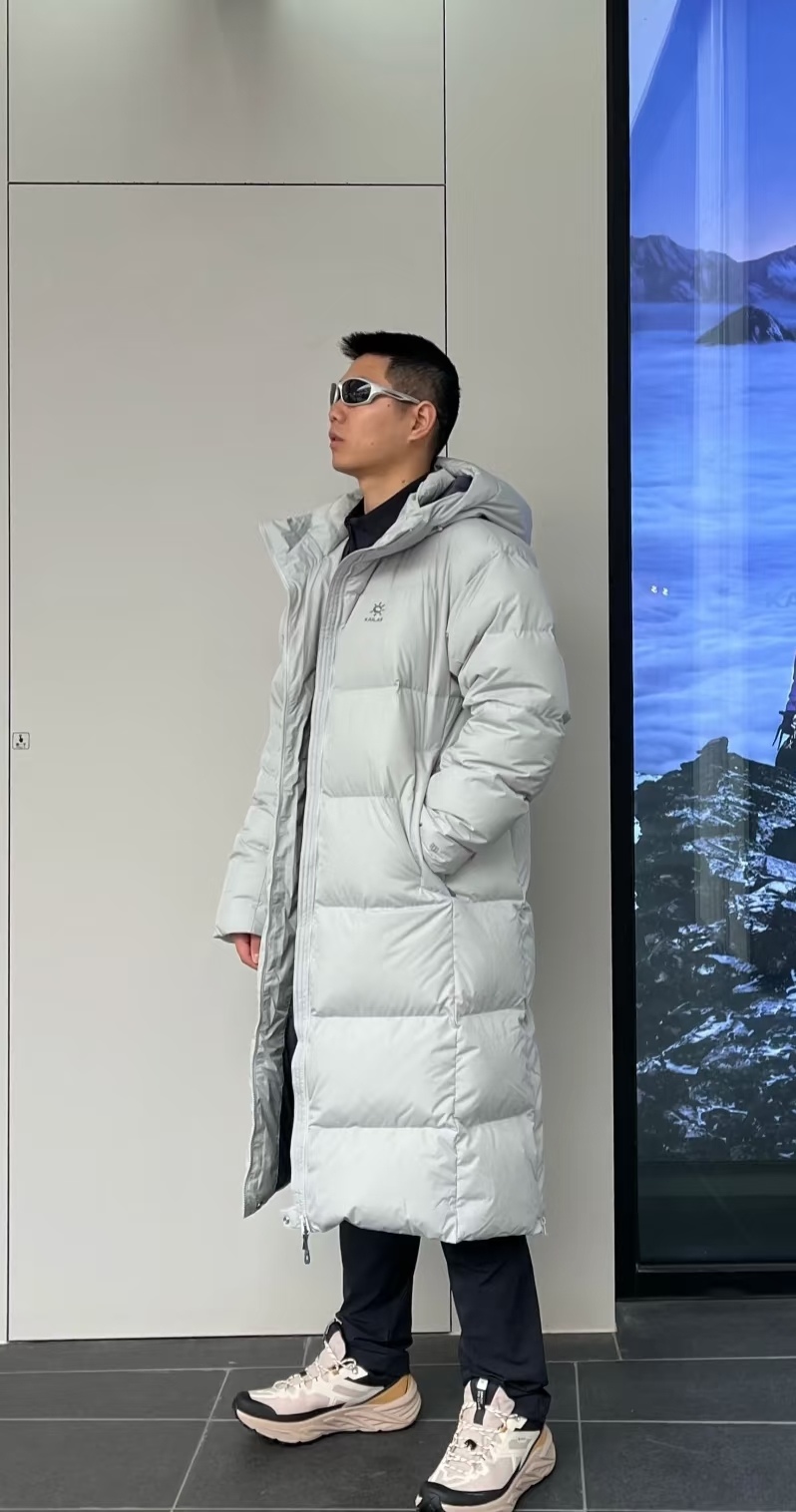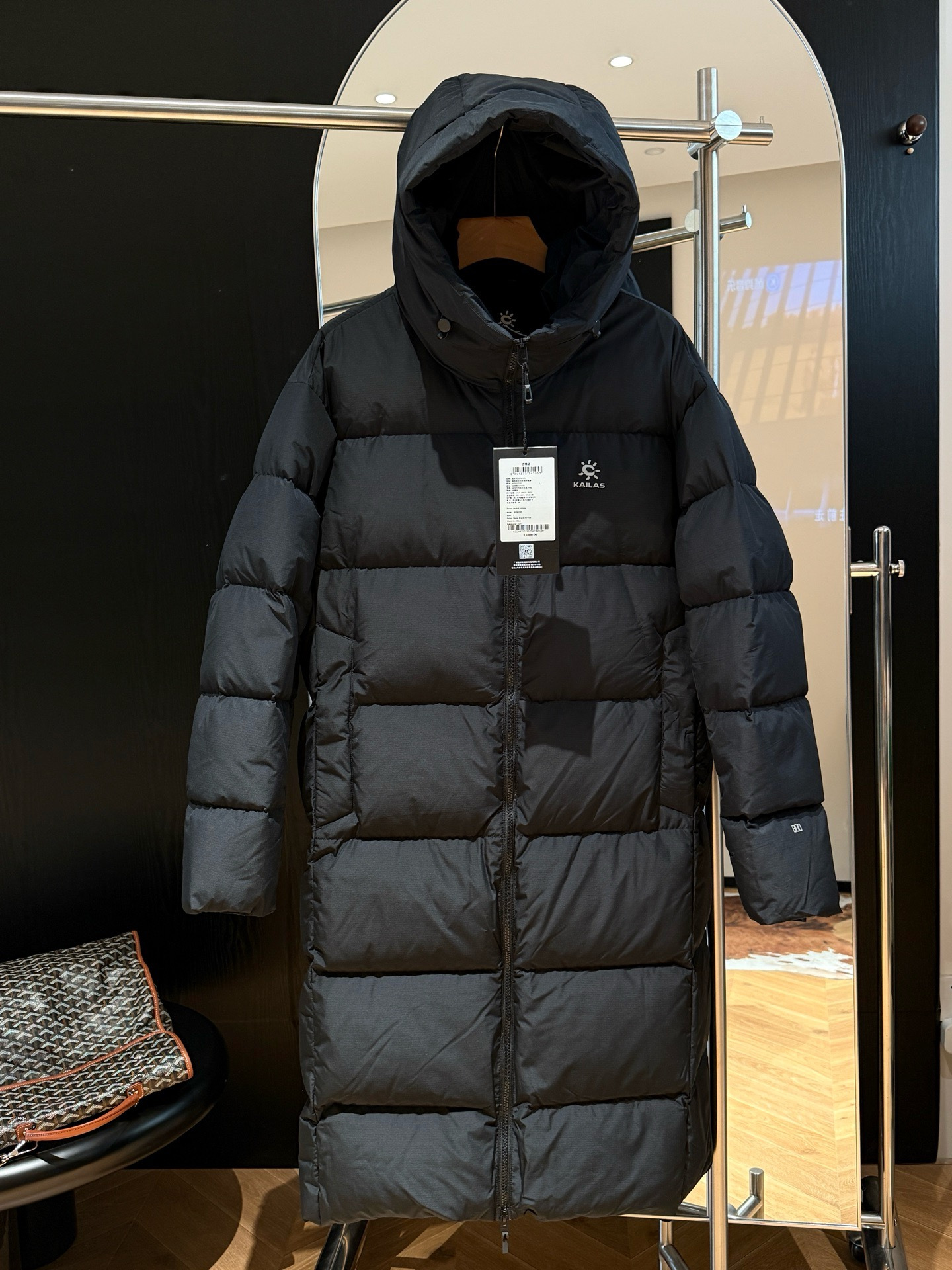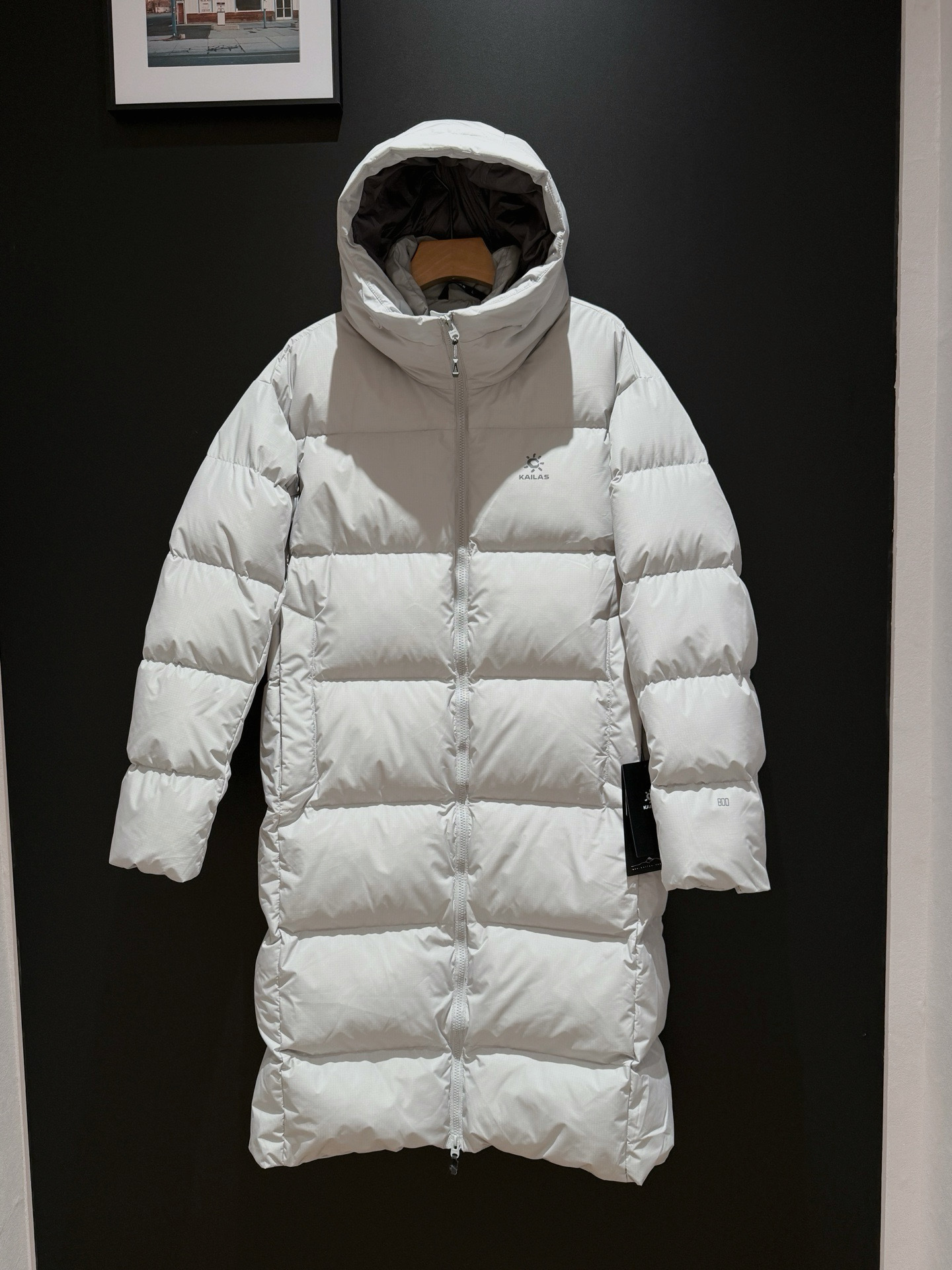 内里填充高蓬鹅绒,尽管是长款但也丝毫没有笨重的感觉,版型也相当贴心利落,侧边拉链开衩的设计让你可以大步阔走~