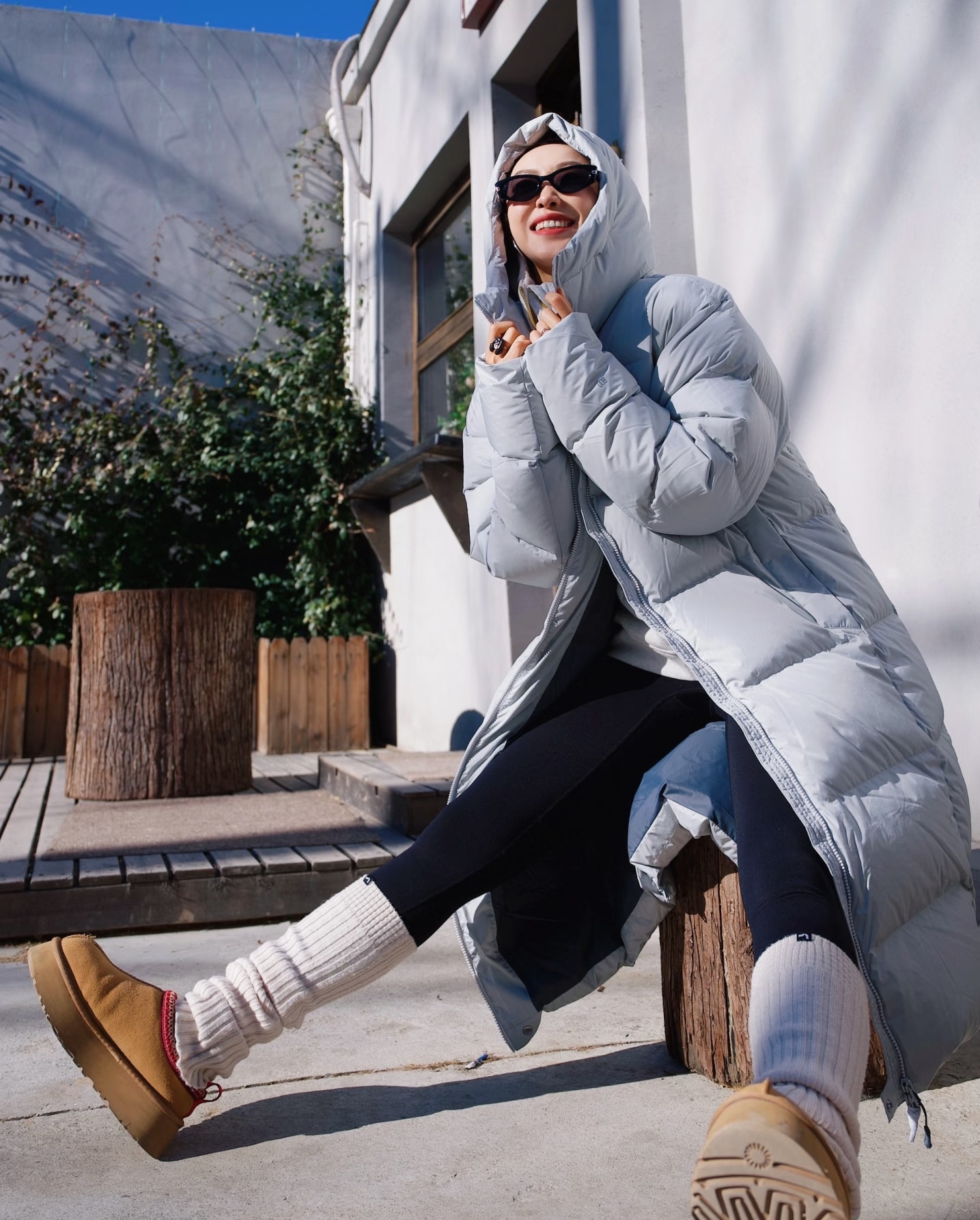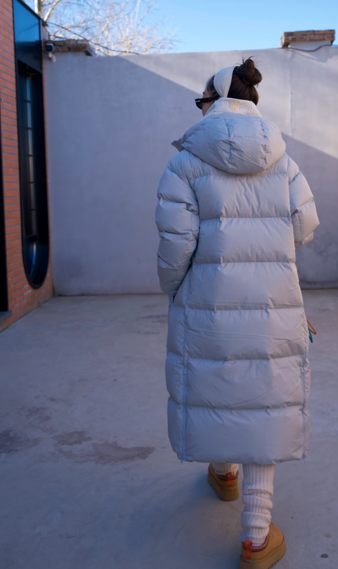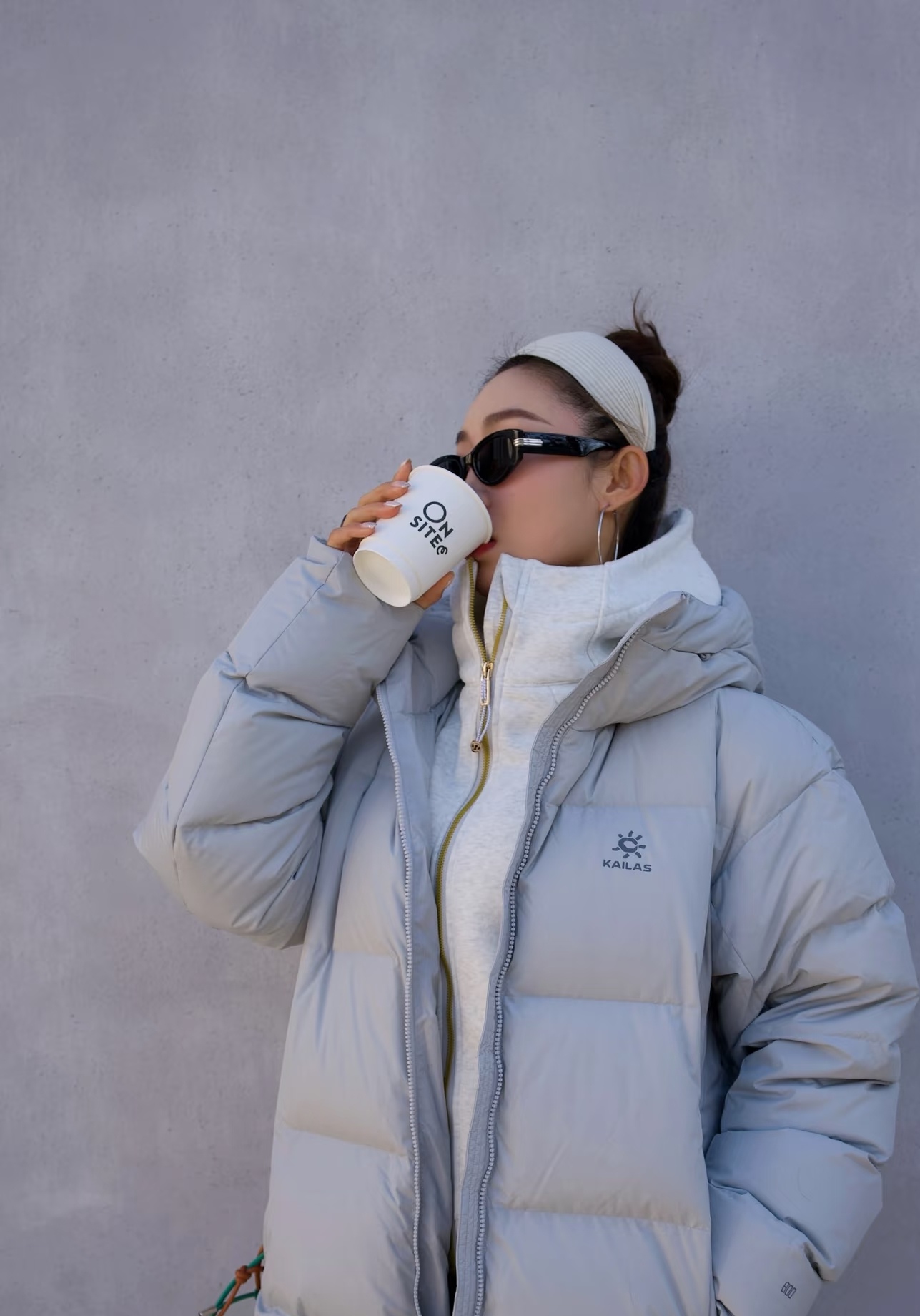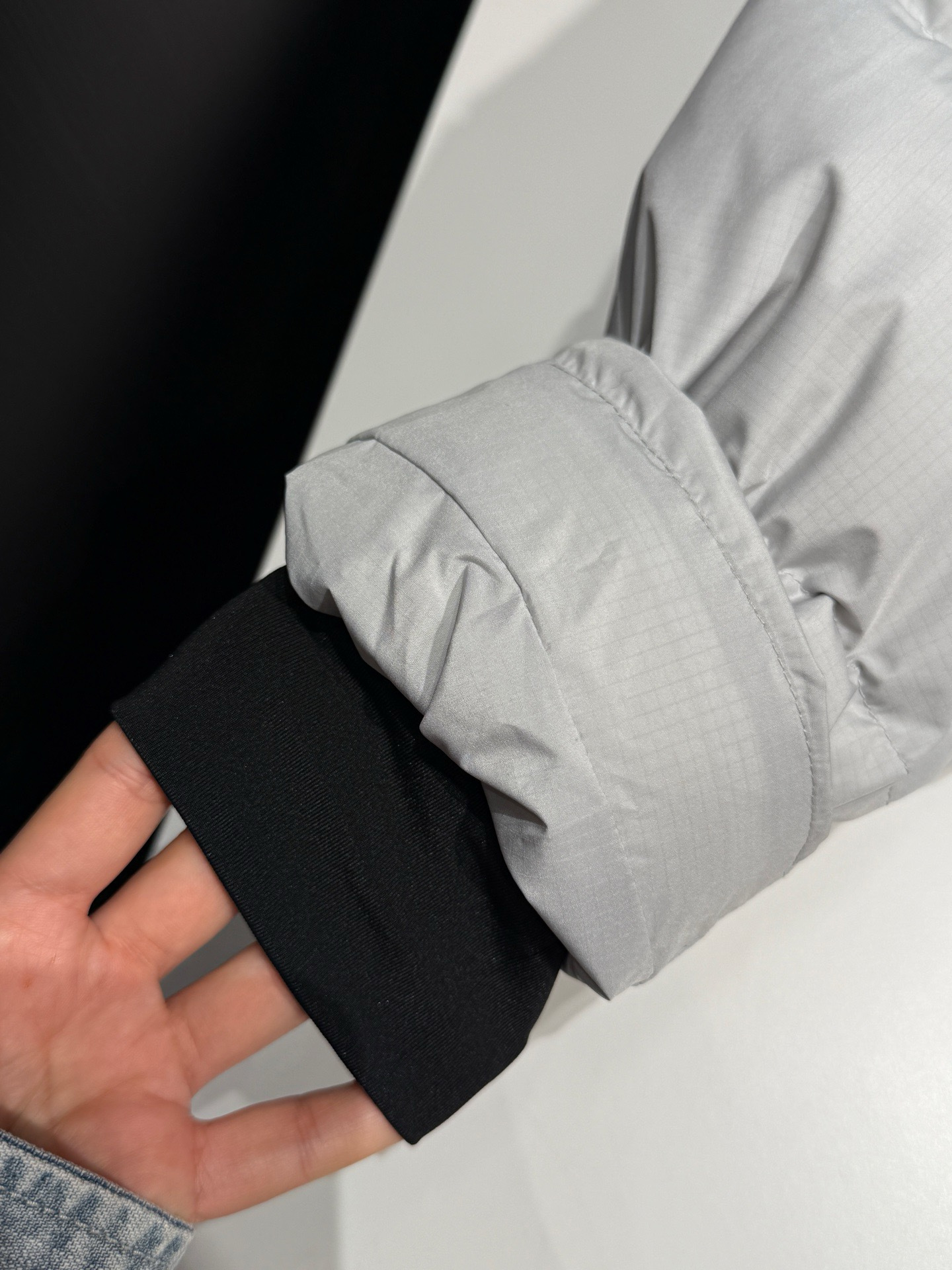 内里填充高蓬鹅绒,尽管是长款但也丝毫没有笨重的感觉,版型也相当贴心利落,侧边拉链开衩的设计让你可以大步阔走~