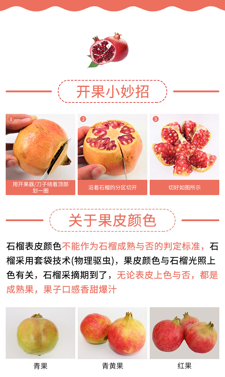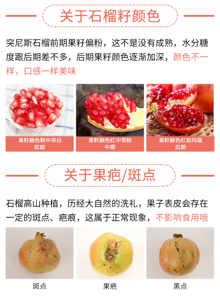 2.石榴前期果籽偏粉,这不是未成熟的果子,水分糖度跟后期差不多,后期果籽颜色逐渐加深,颜色不一样,口感一样清甜多汁
