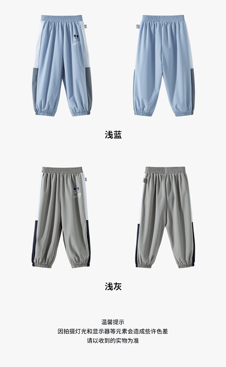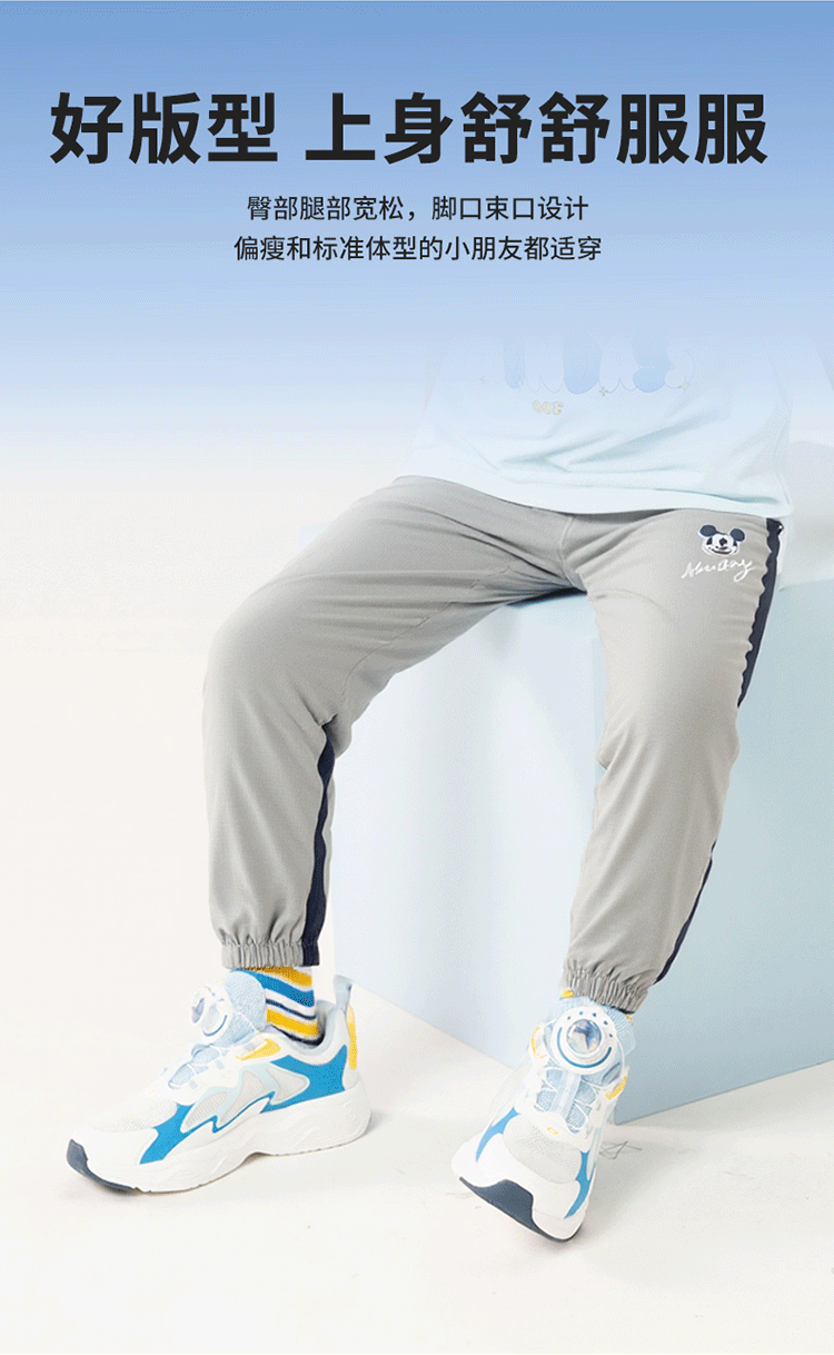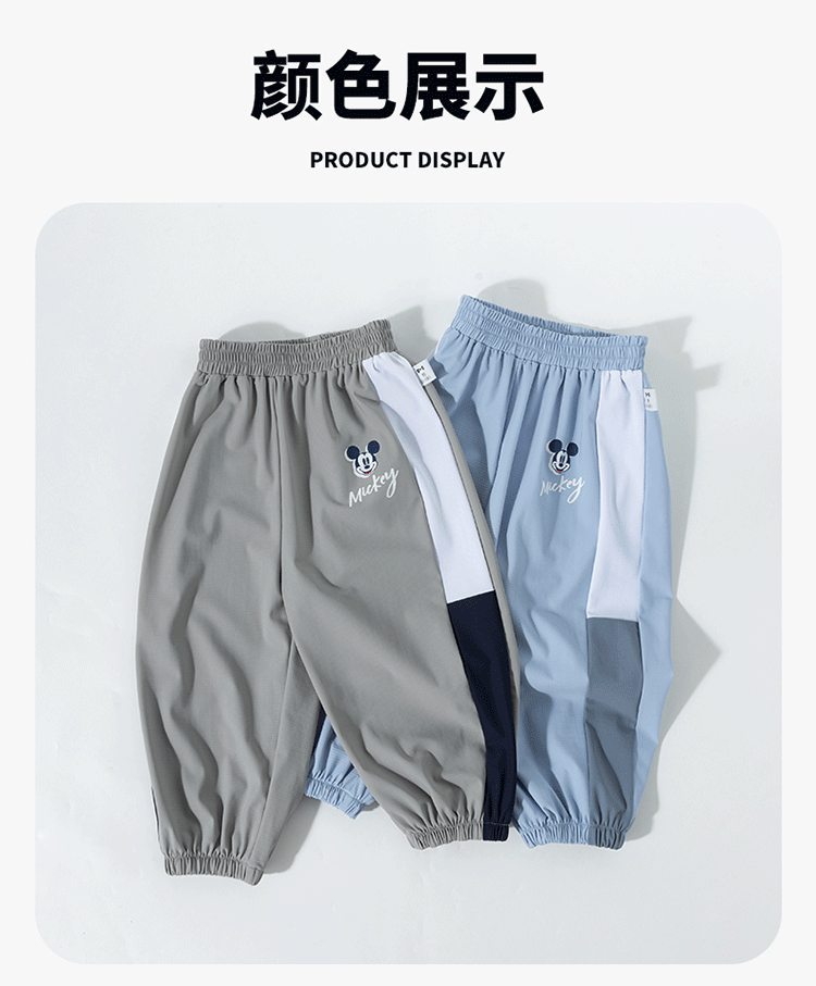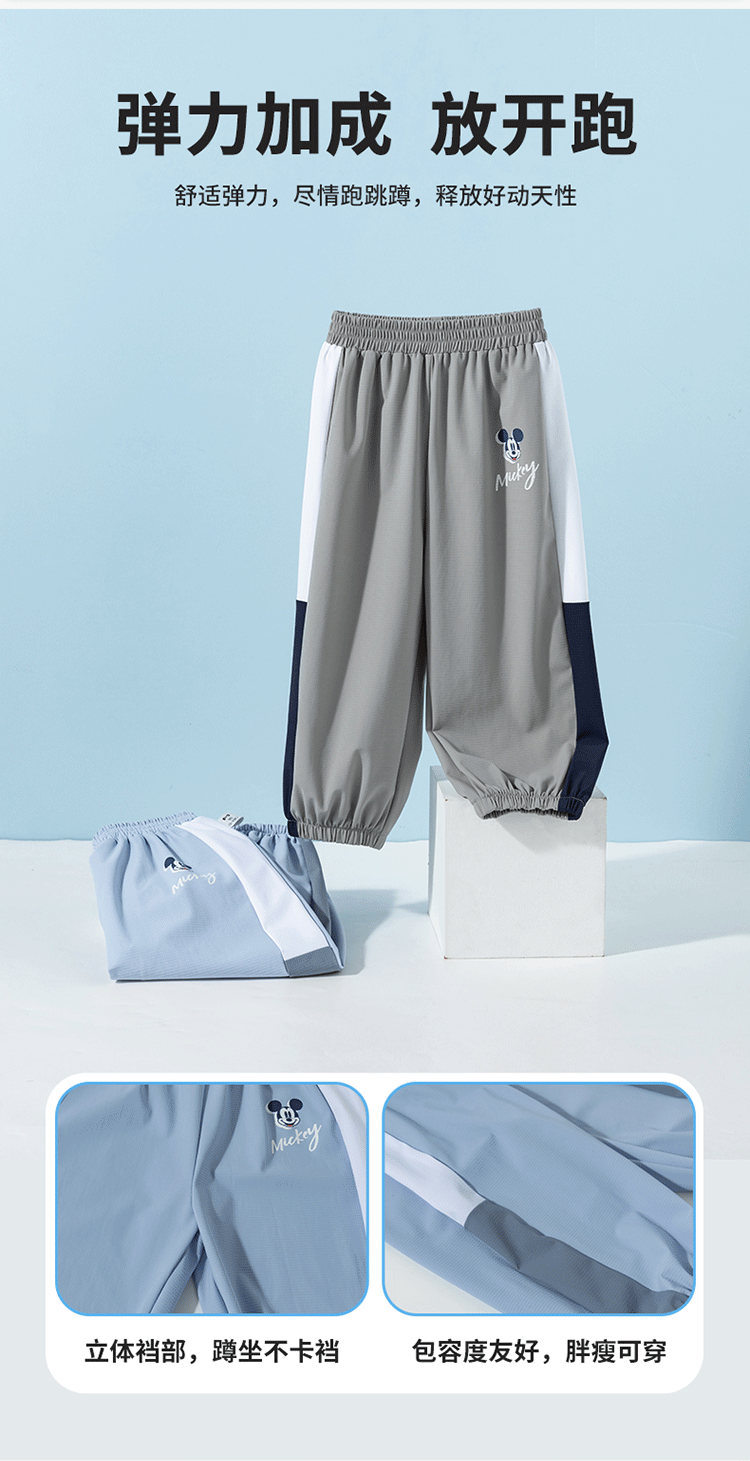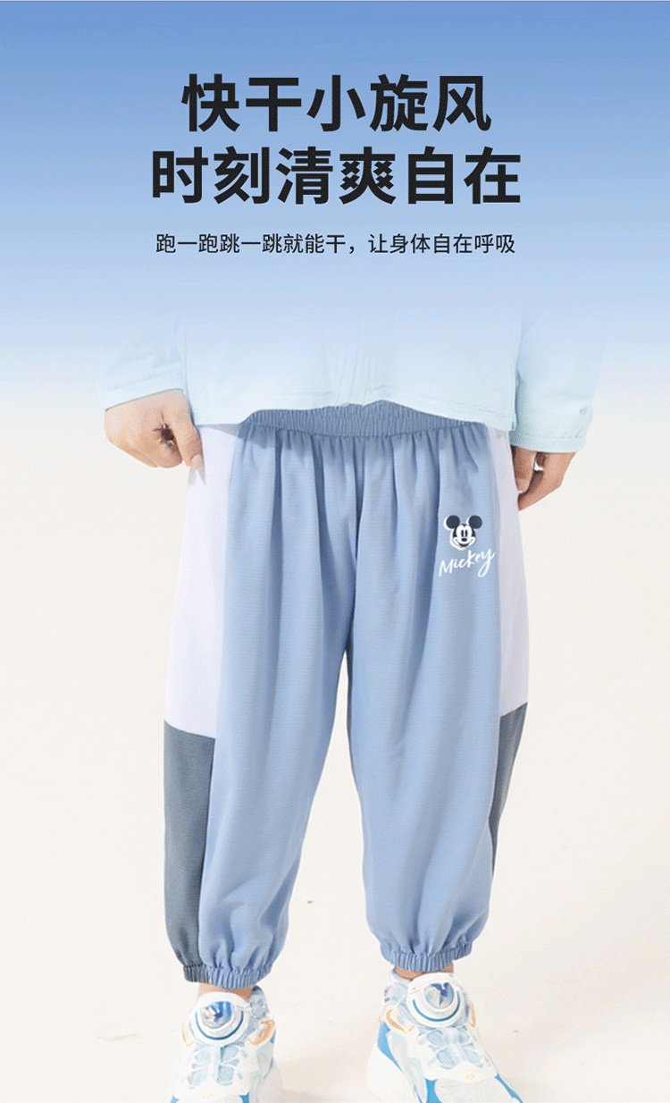 迪士尼2025春夏季新款男童米奇印花防蚊裤宽松透气速干运动裤休闲裤ZD2EK009