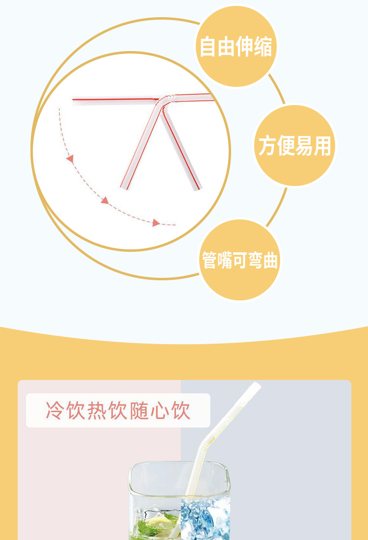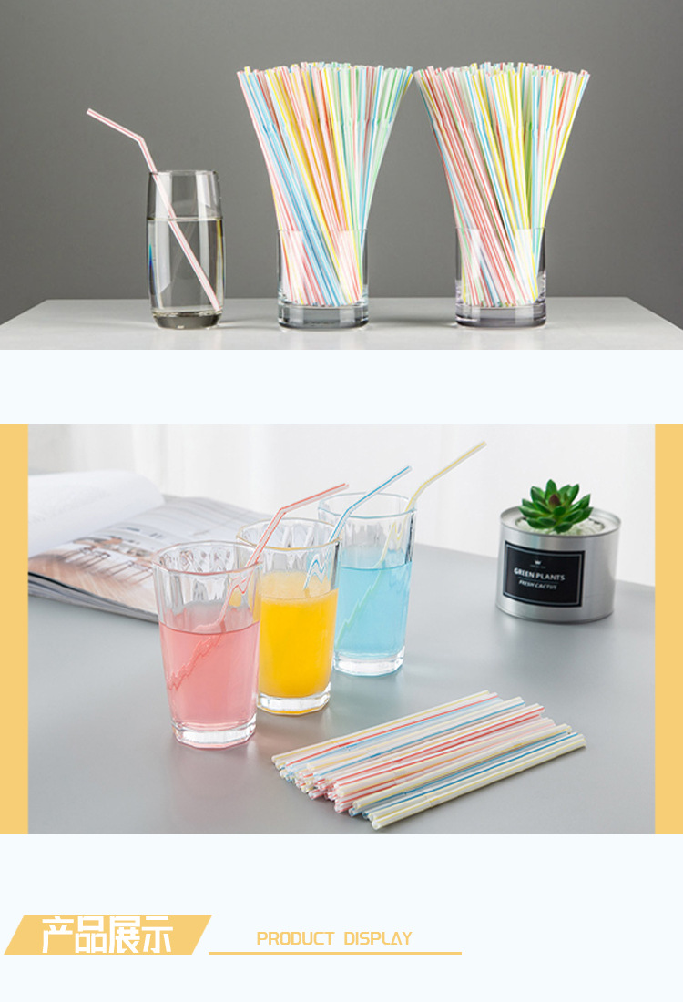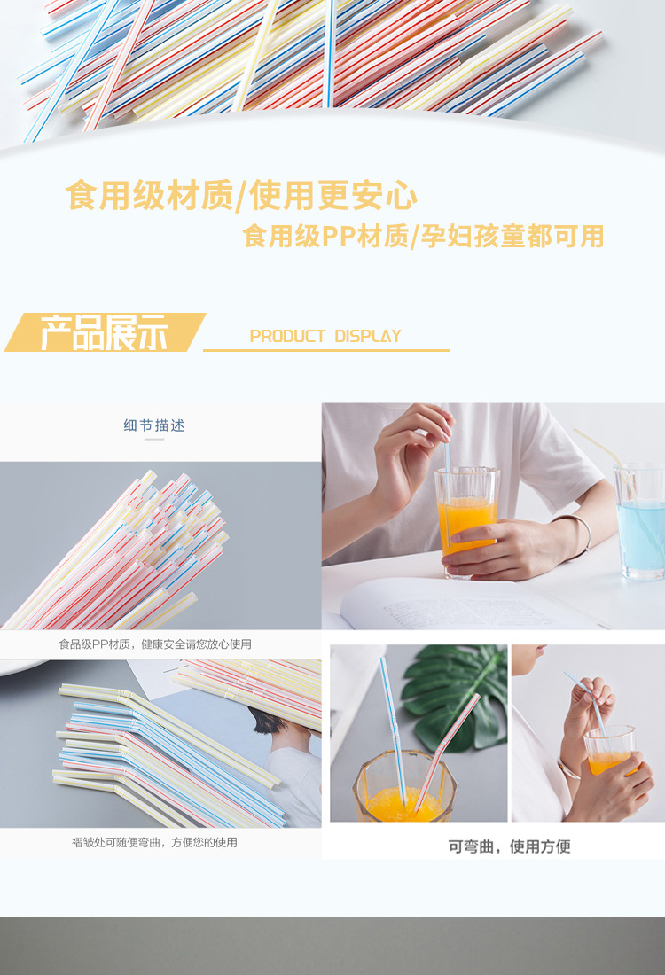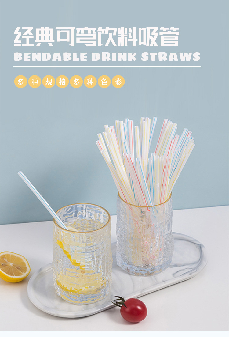 50支装一次性吸管 双童可弯曲彩色条纹喝水果汁饮料食用弯头吸管家用【0.6*21cm】