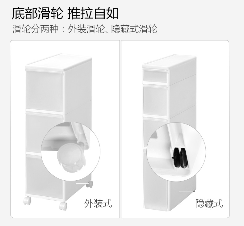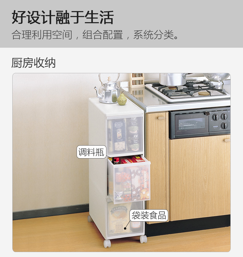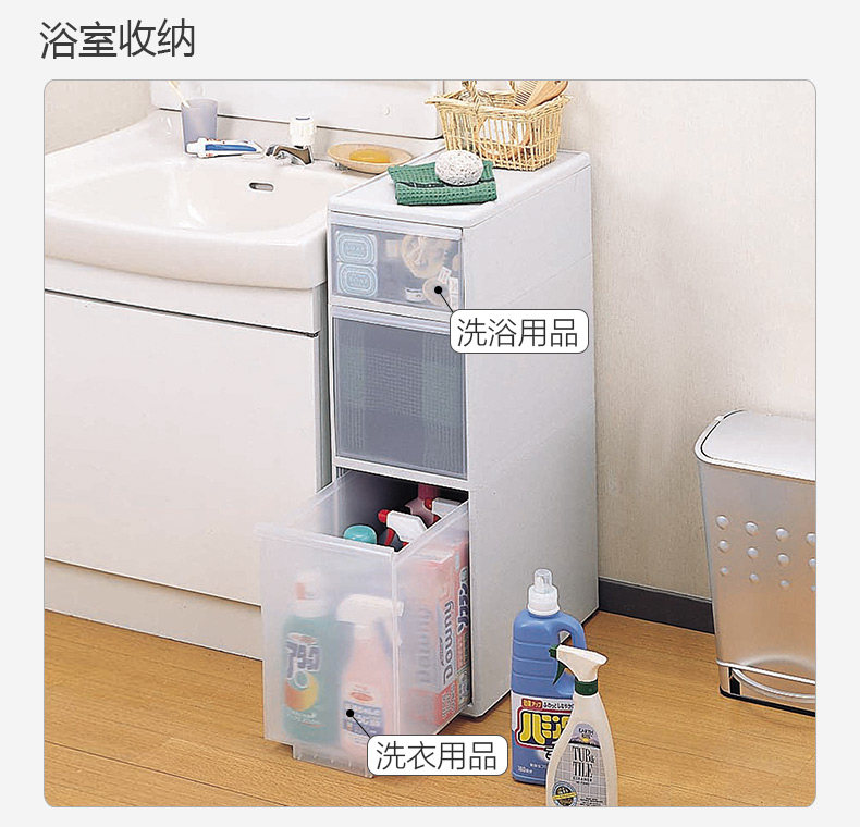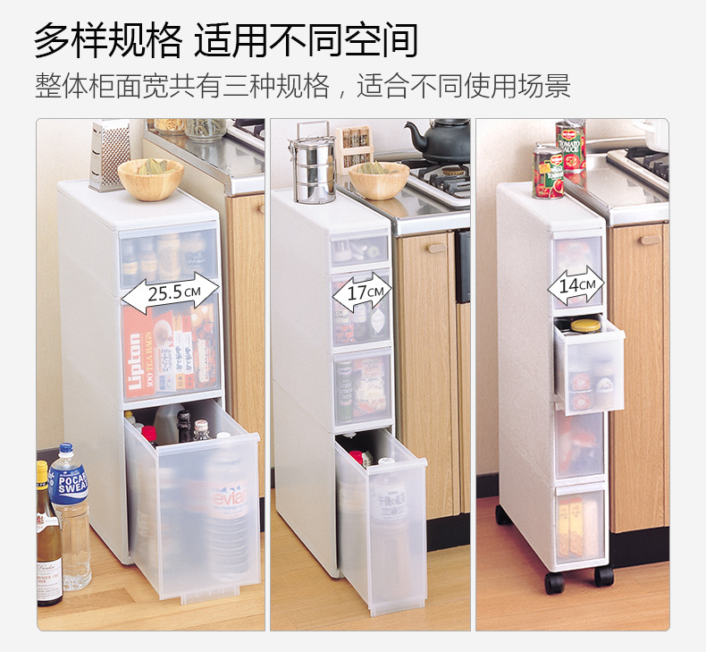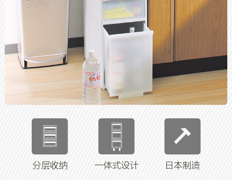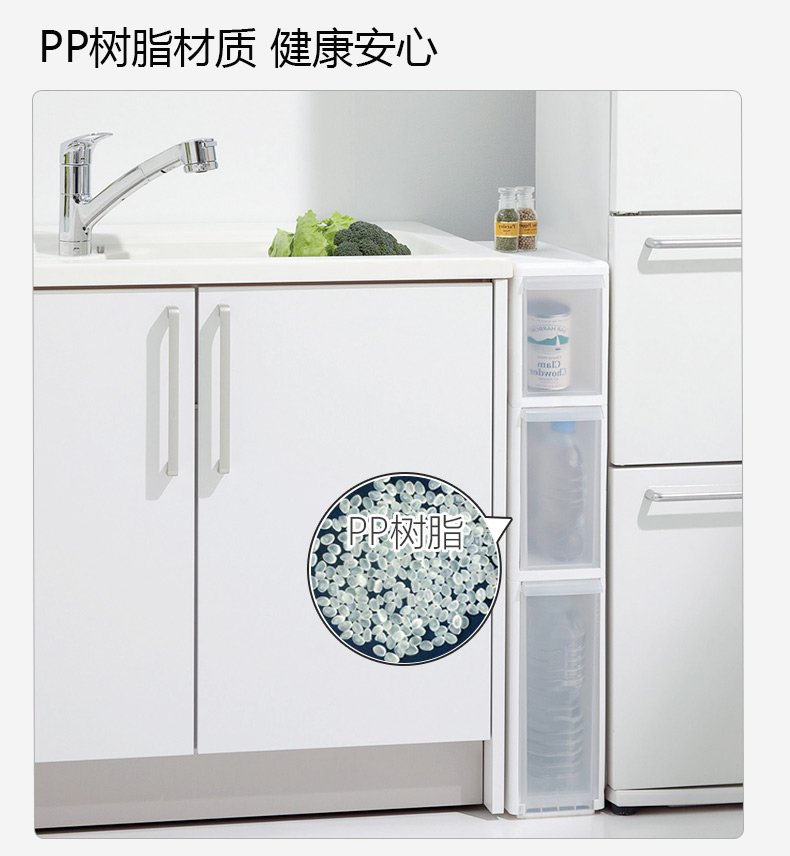 【6F】利快 抽屉式收纳柜日本进口like-it夹缝柜可移动带轮储物柜 三层255*465*830(外露轮)MS30