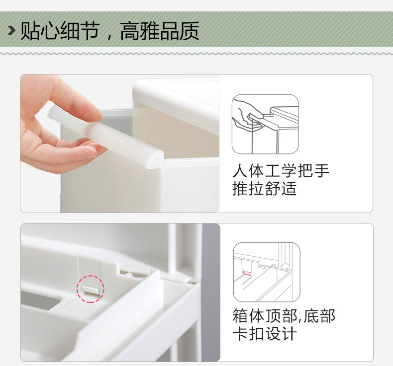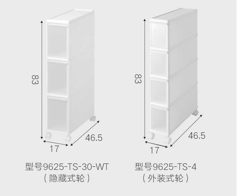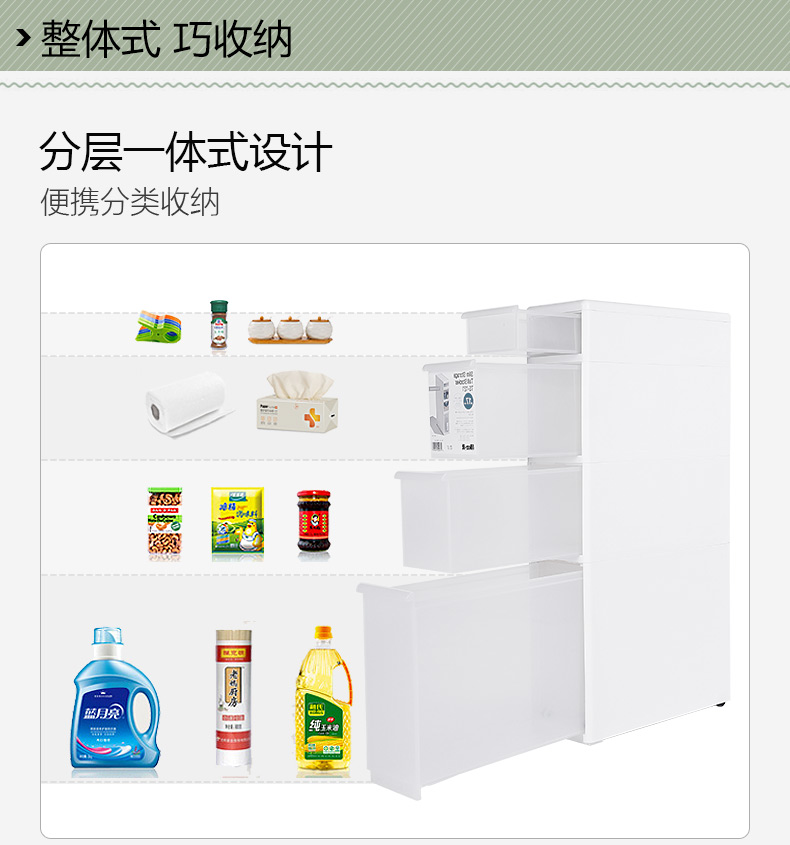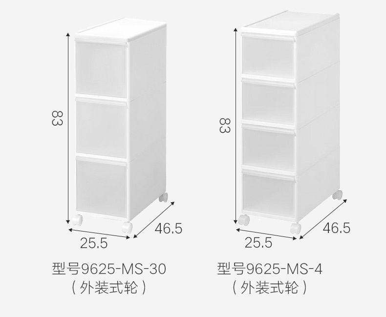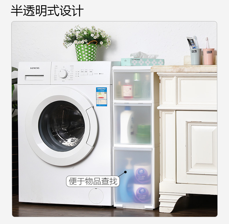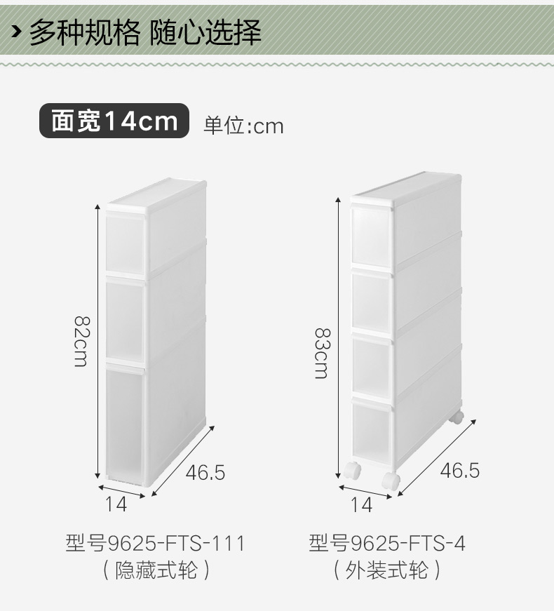 【6F】利快 抽屉式收纳柜日本进口like-it夹缝柜可移动带轮储物柜 三层255*465*830(外露轮)MS30