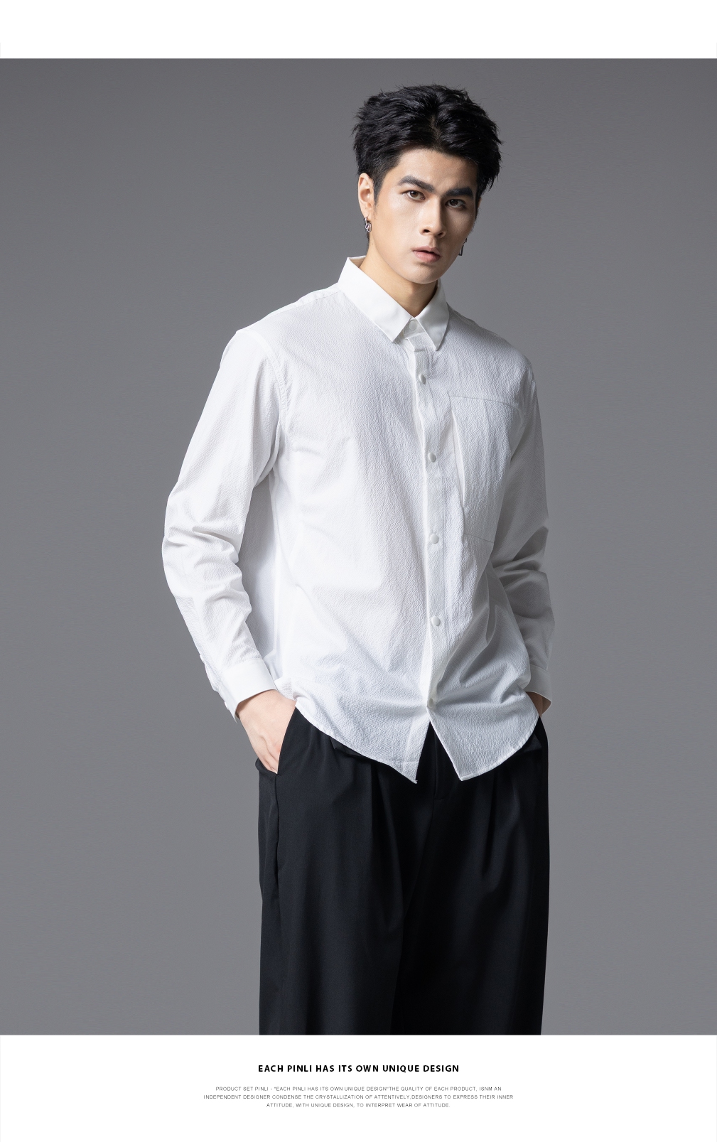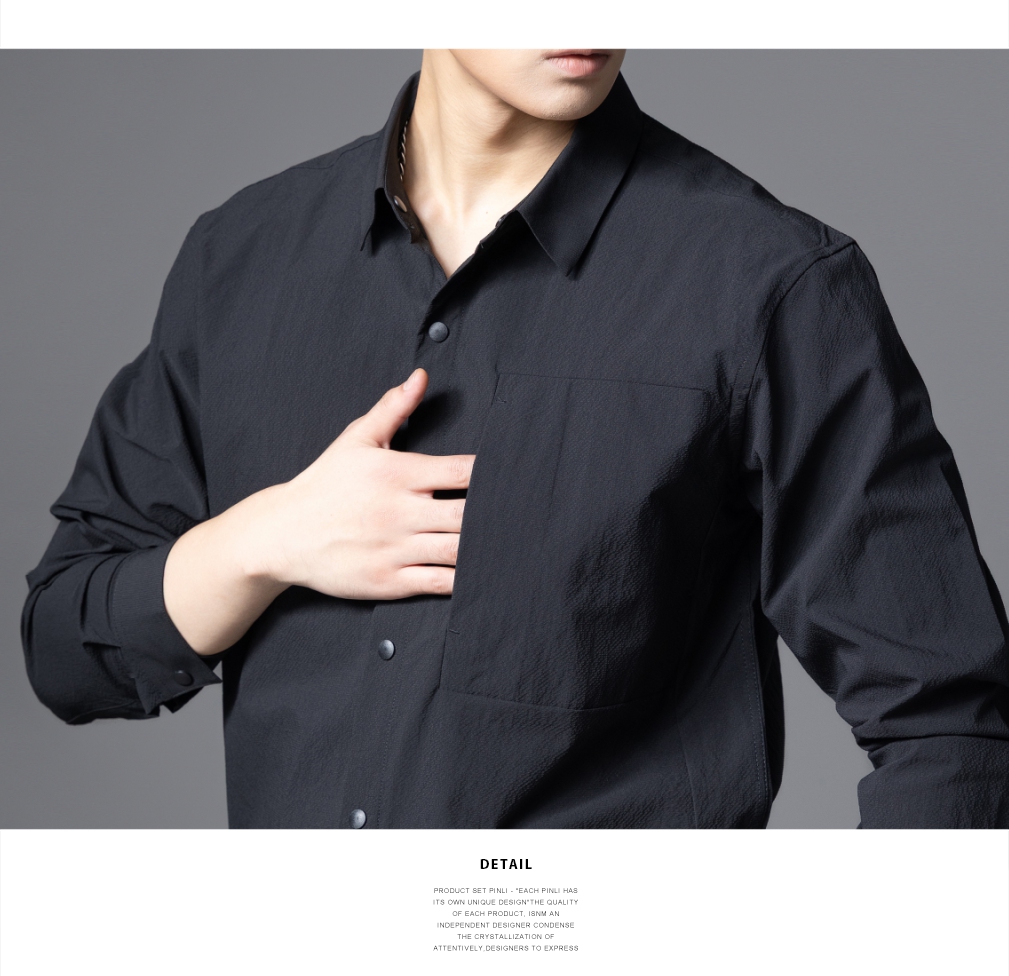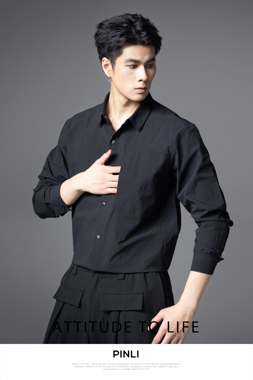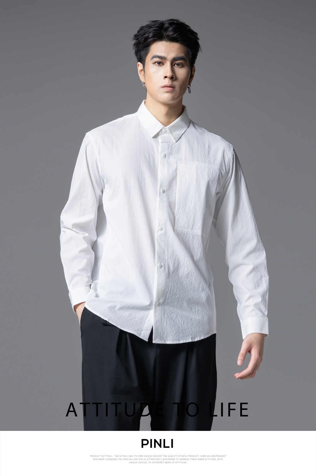 PINLI品立2025秋季新款男士宽松尖领纯色百搭打底长袖衬衫衬衣潮GD253113063