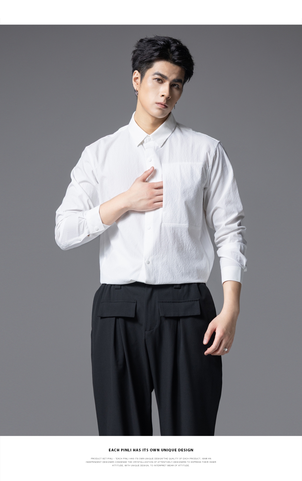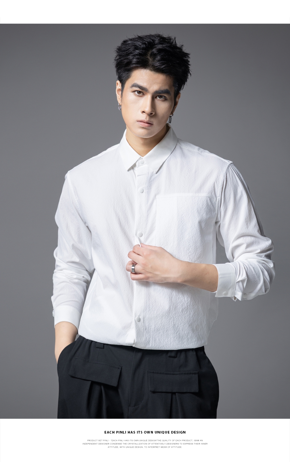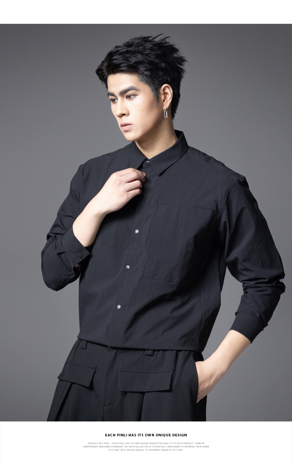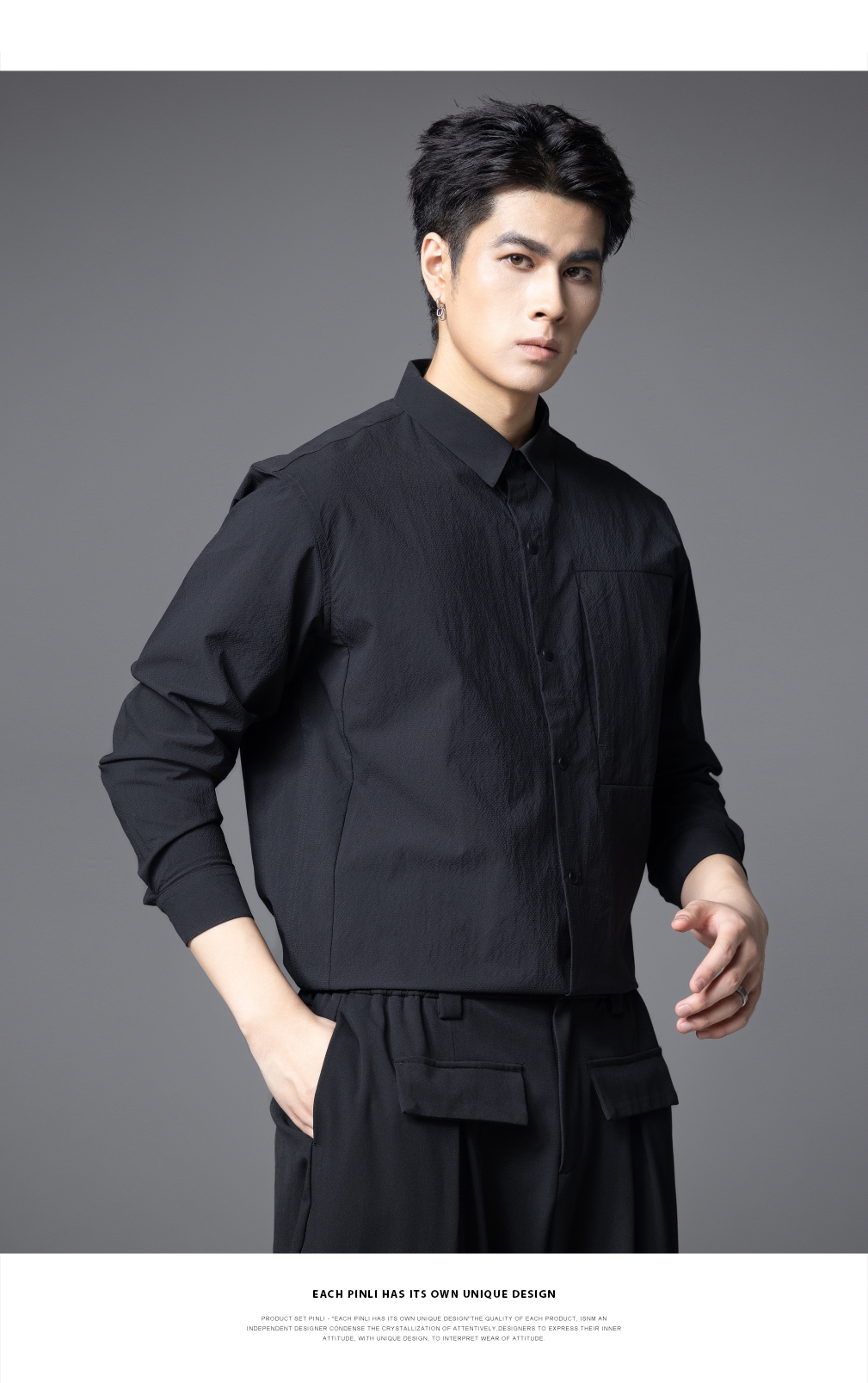 PINLI品立2025秋季新款男士宽松尖领纯色百搭打底长袖衬衫衬衣潮GD253113063