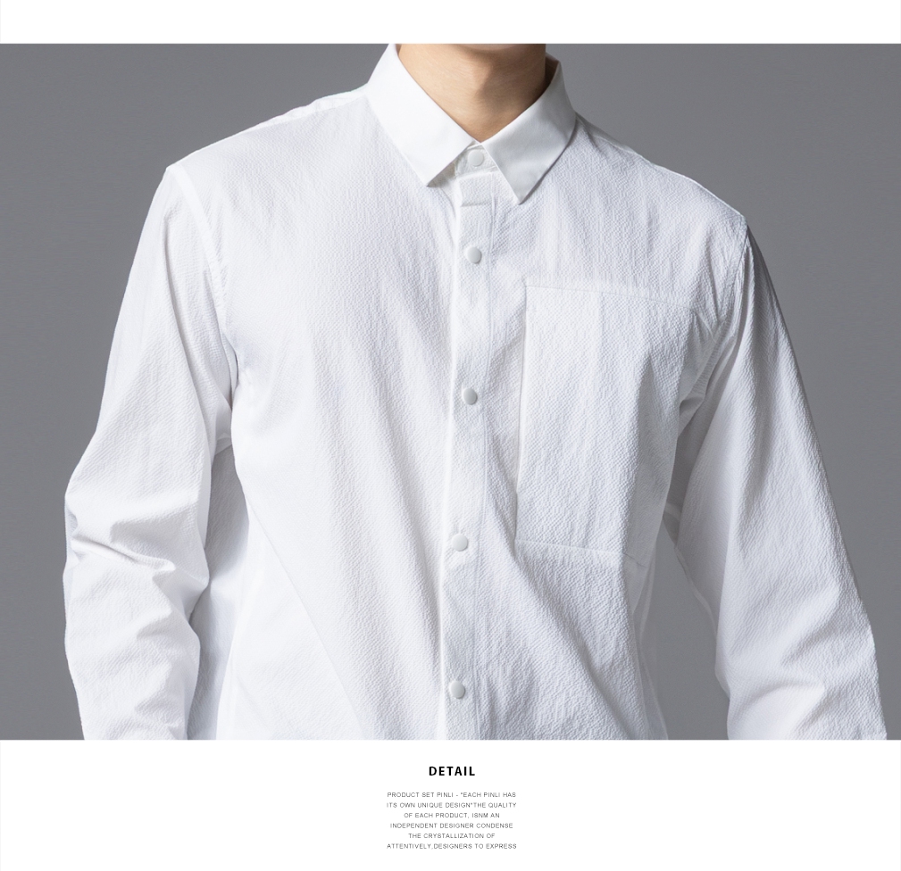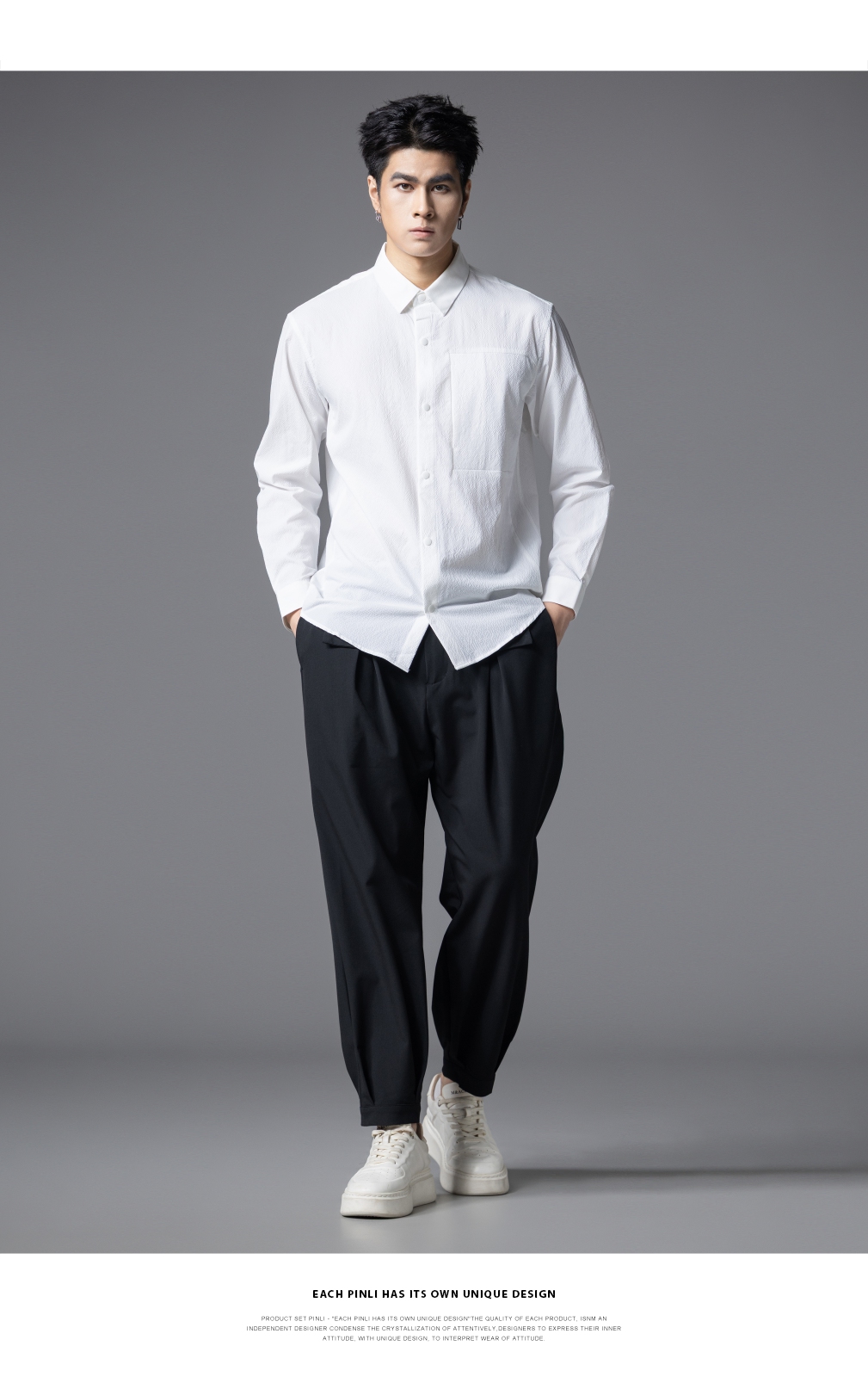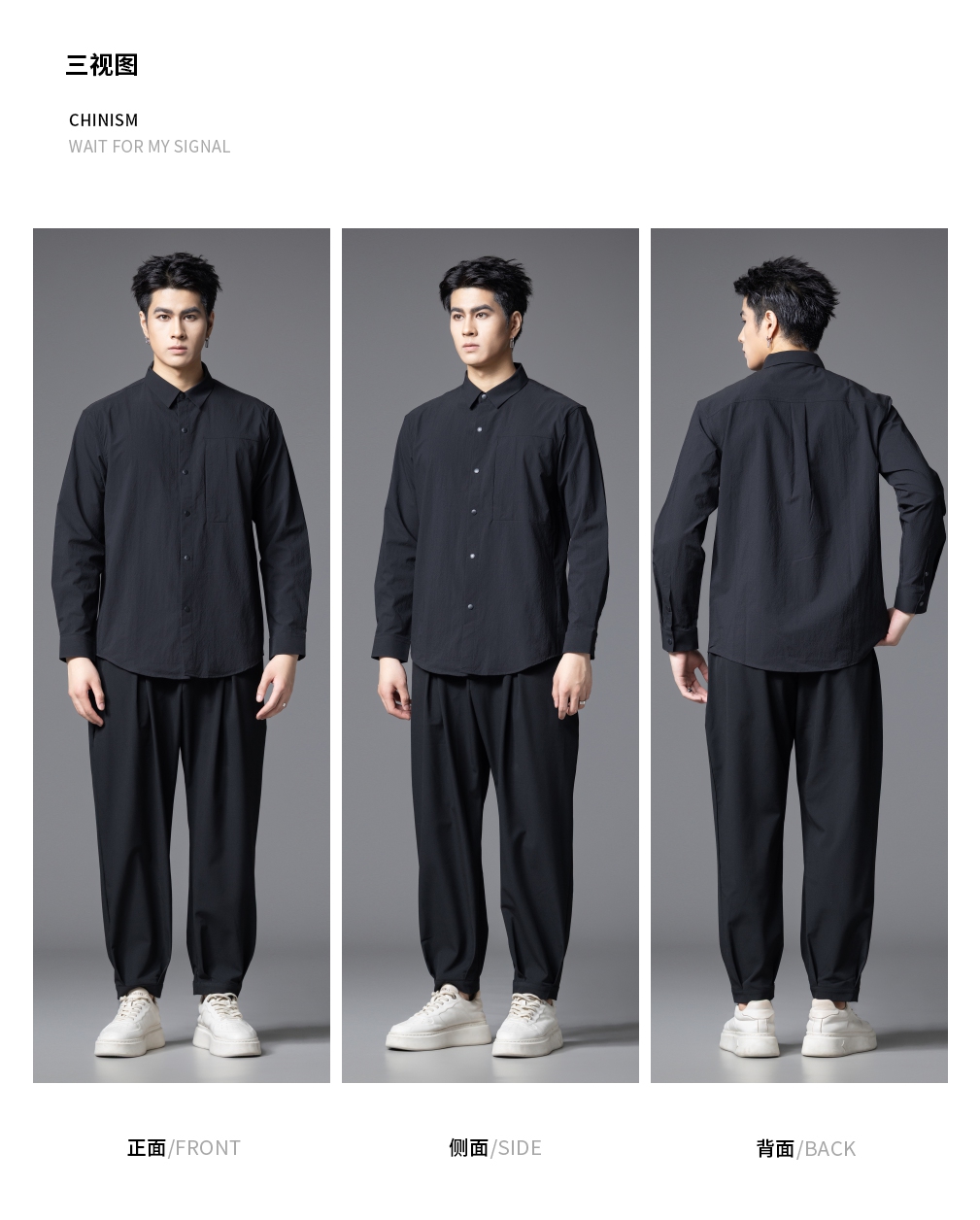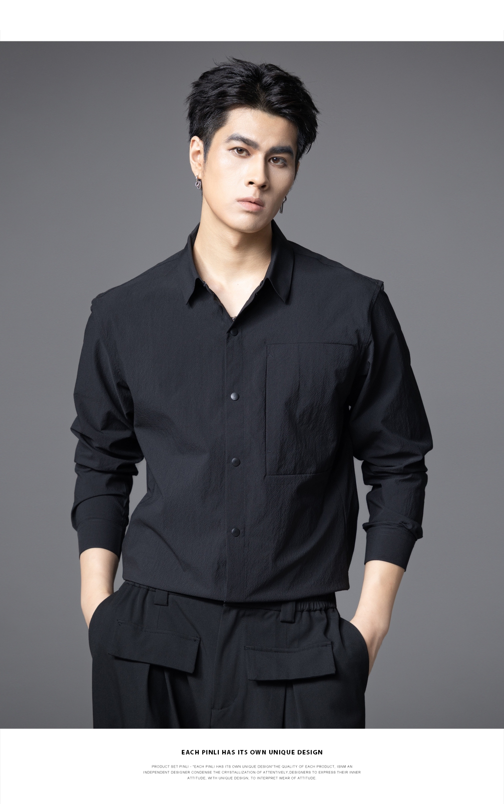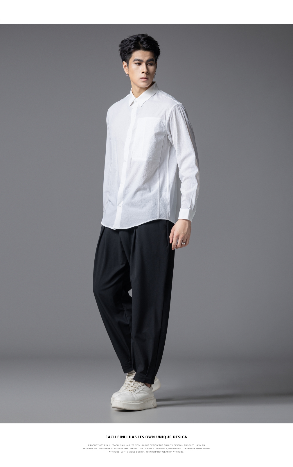 PINLI品立2025秋季新款男士宽松尖领纯色百搭打底长袖衬衫衬衣潮GD253113063