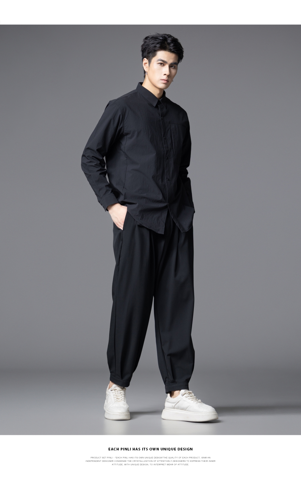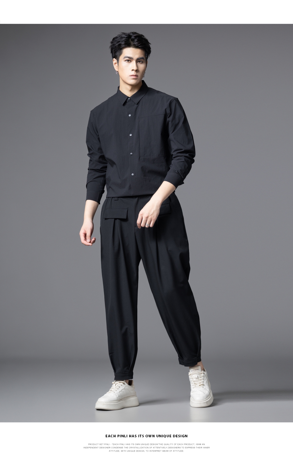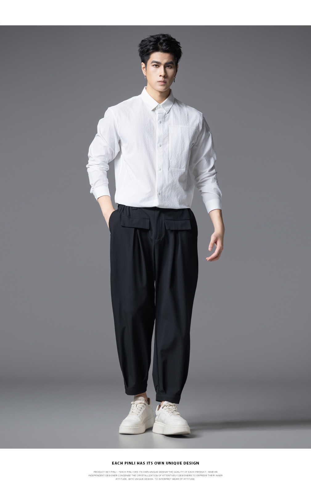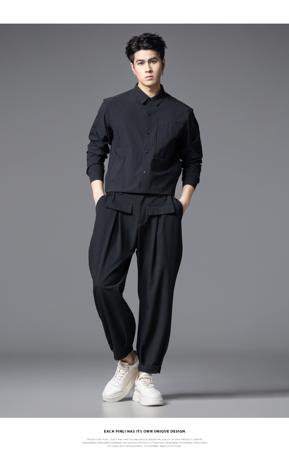 PINLI品立2025秋季新款男士宽松尖领纯色百搭打底长袖衬衫衬衣潮GD253113063