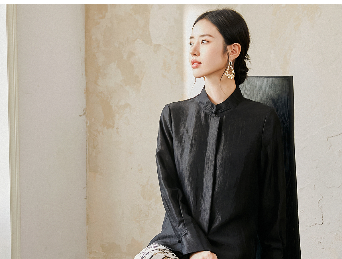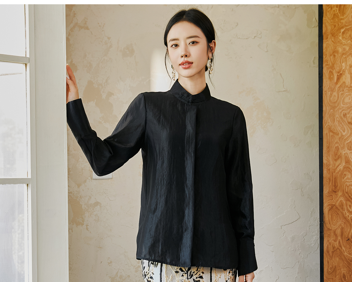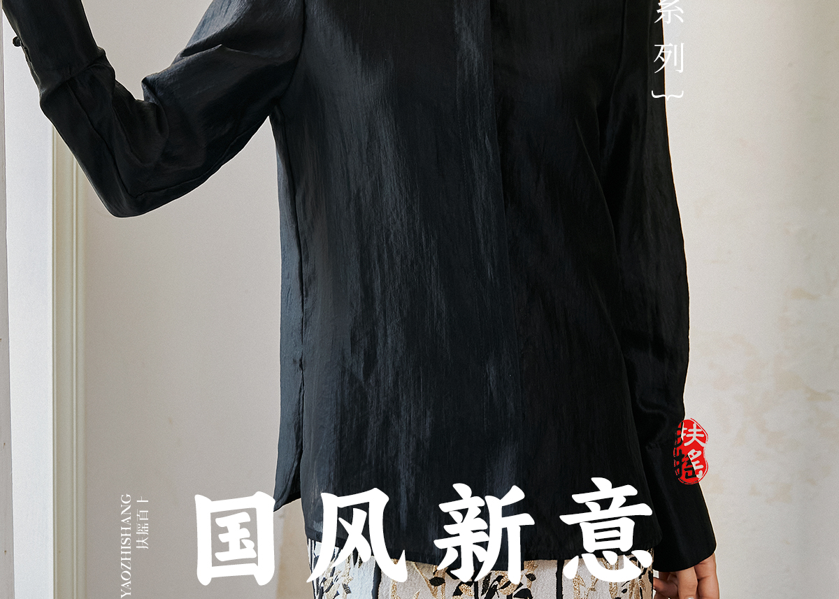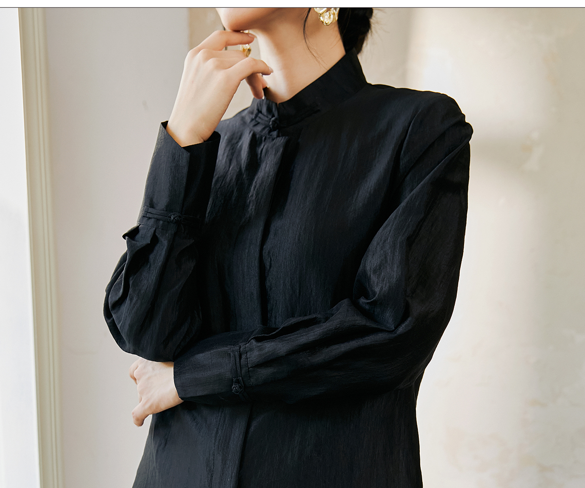 FUYAO扶摇 新中式盘扣衬衫女国风马蹄袖高级感衬衣气质黑色防晒衣