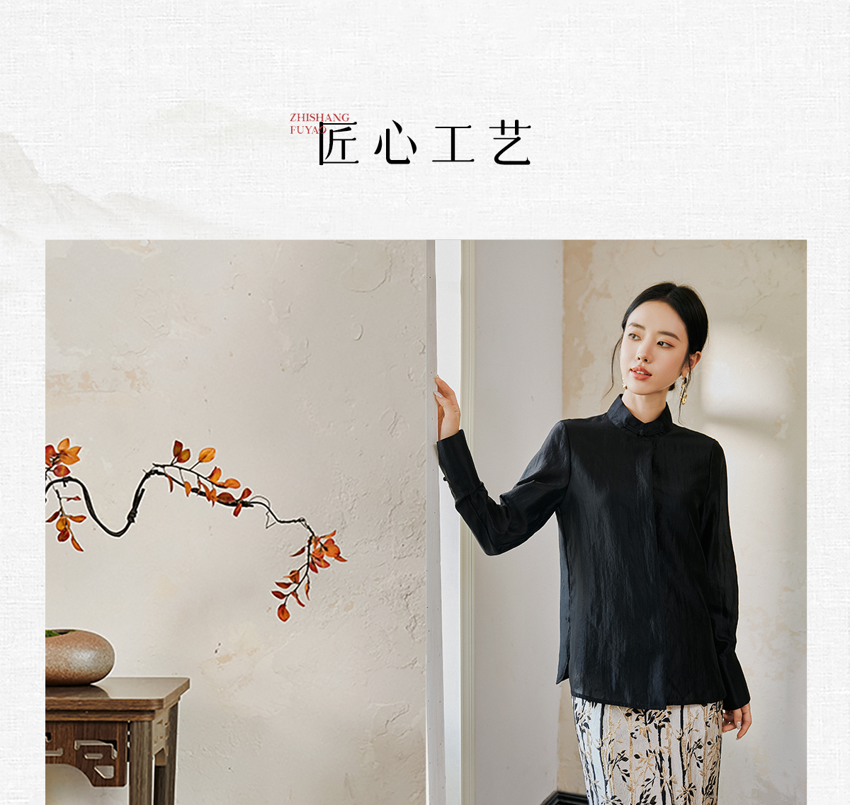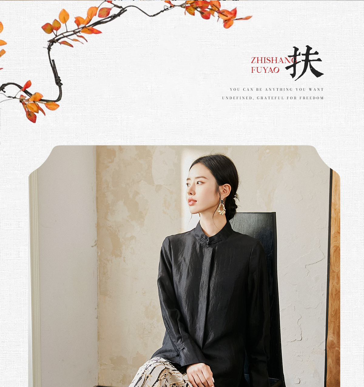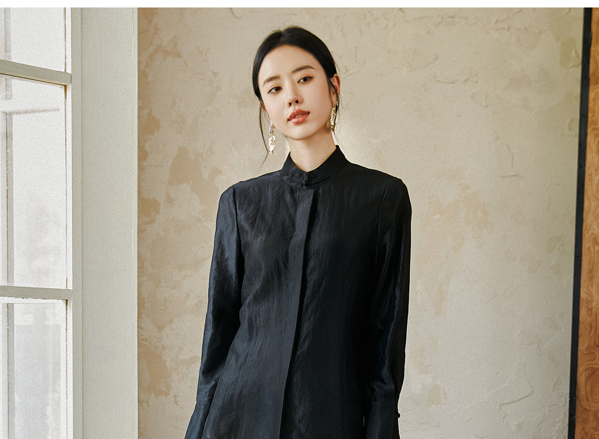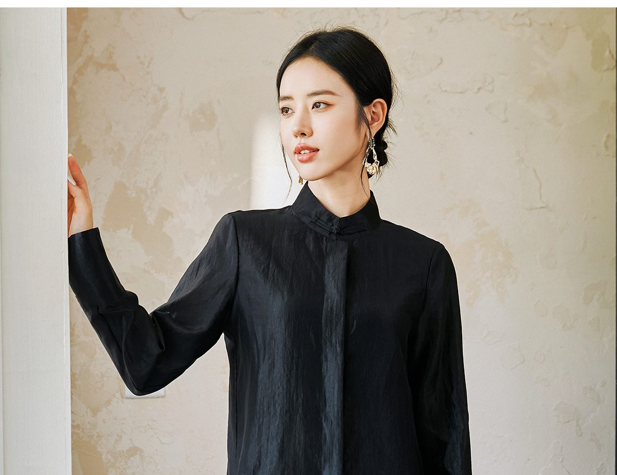 FUYAO扶摇 新中式盘扣衬衫女国风马蹄袖高级感衬衣气质黑色防晒衣