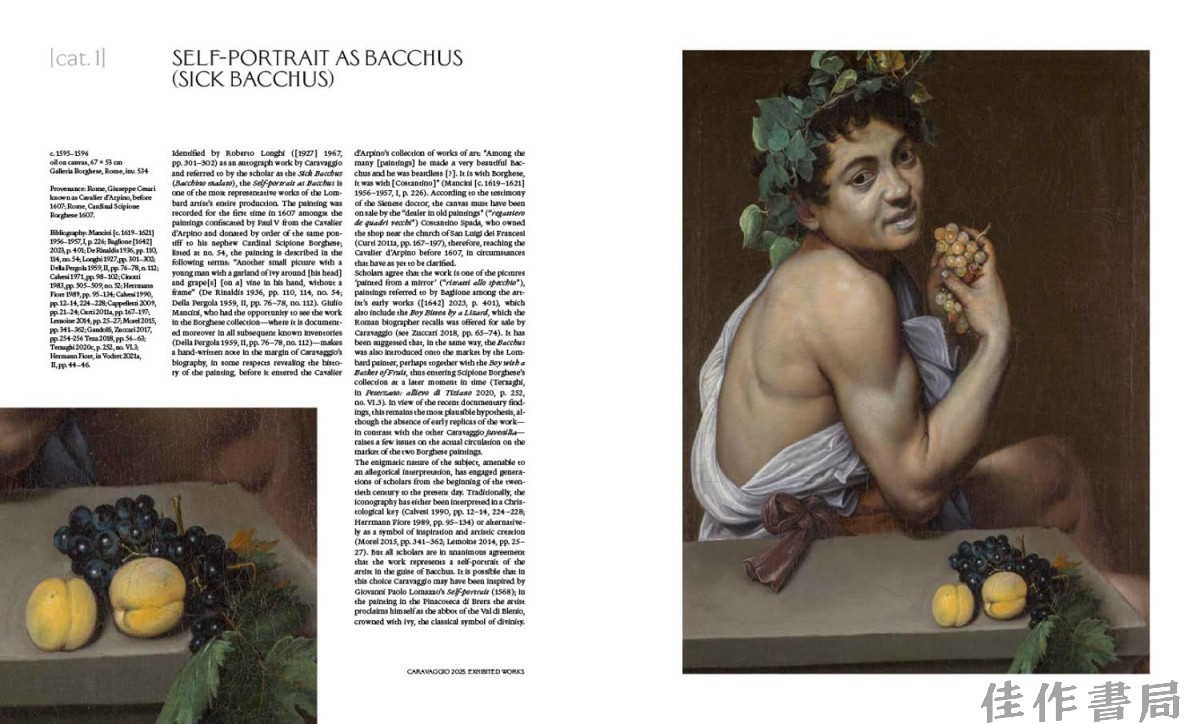 这场在罗马举办的展览及其配套图录凭借其非凡的借展藏品脱颖而出,这些藏品将卡拉瓦乔职业生涯中的标志性画作重新汇聚并置于新的语境中。来自蒂森-博尔奈米萨博物馆的《圣凯瑟琳》、底特律艺术学院的《玛莎与玛丽 Magdalene》与巴贝里尼宫的《朱迪思》一同展出,展现了卡拉瓦乔三次使用同一位模特的创作;来自沃思堡金贝尔艺术博物馆的《纸牌作弊者》回到了它长期展出过的地方;来自堪萨斯城纳尔逊-阿特金斯博物馆的《施洗者圣约翰》与来自哈特福德沃兹沃思 Atheneum 的《狂喜中的圣方济各》首次联袂亮相。这些宏伟且前所未有的精选作品不仅让人深入了解卡拉瓦乔作为艺术家的成长历程,也让人得以一窥他所处的直接社交圈和环境。
